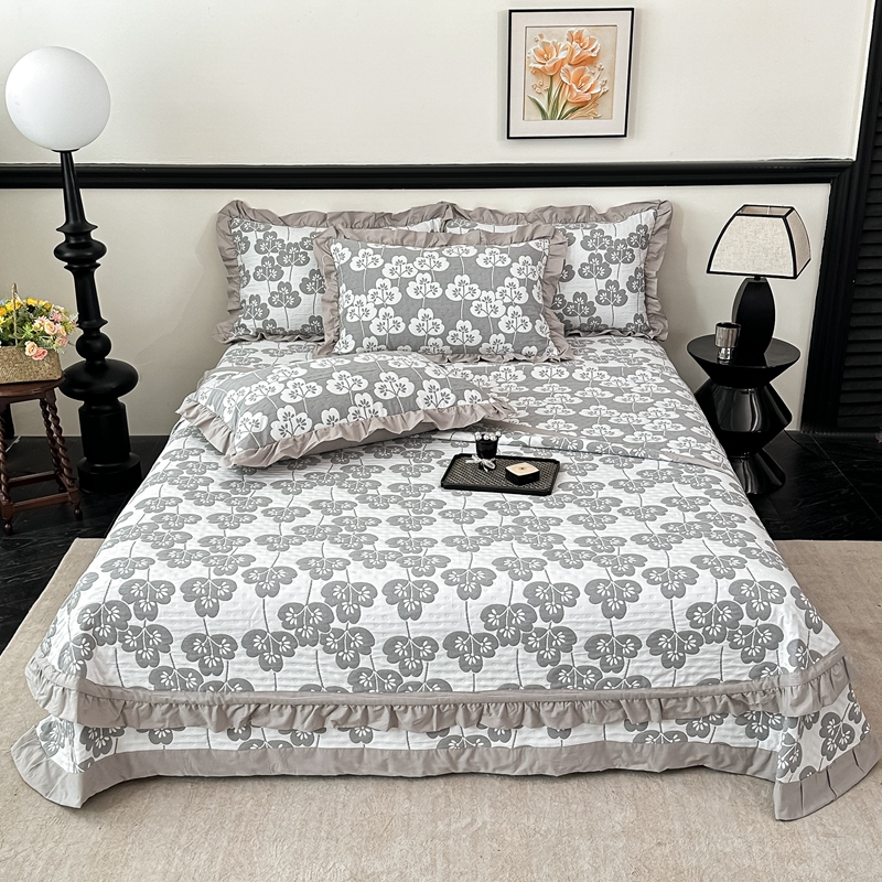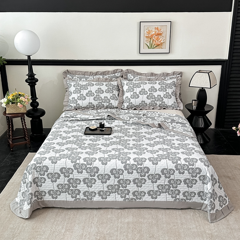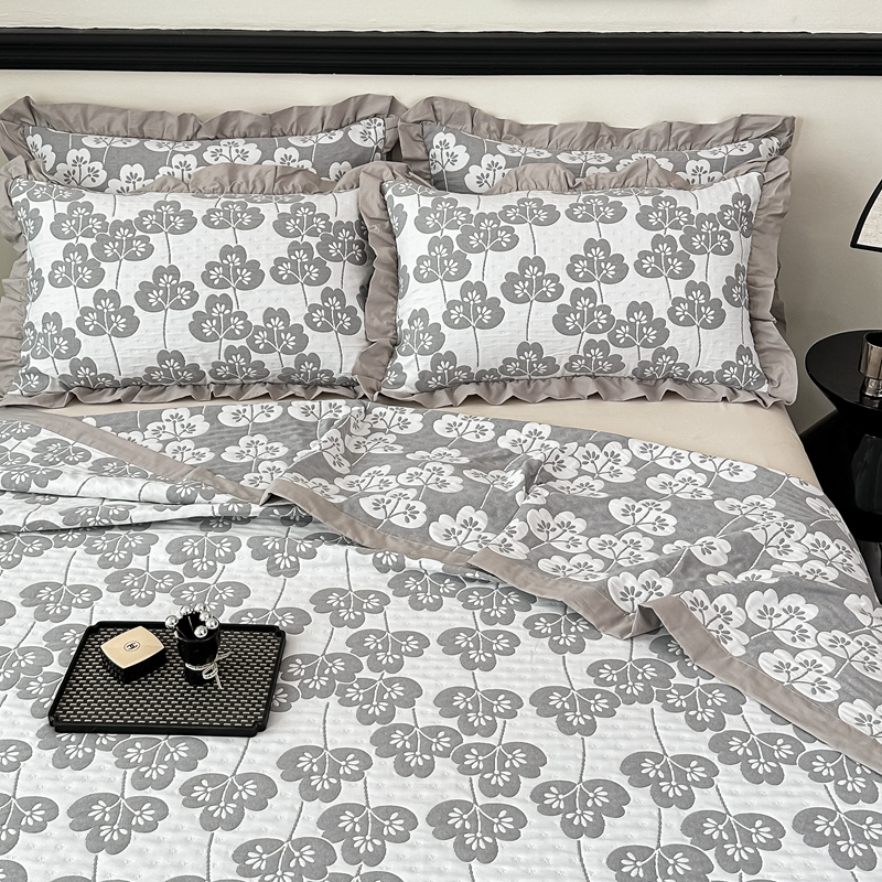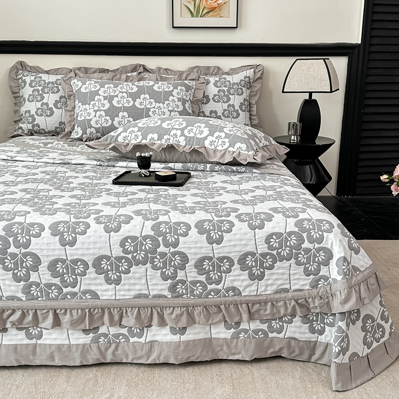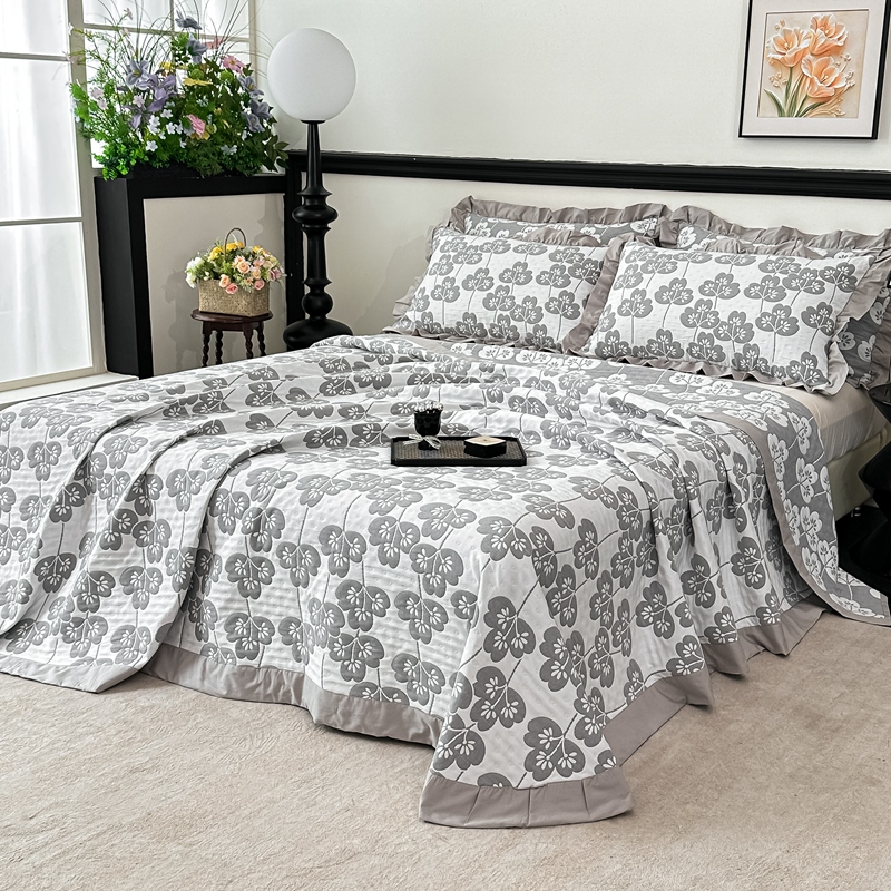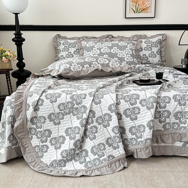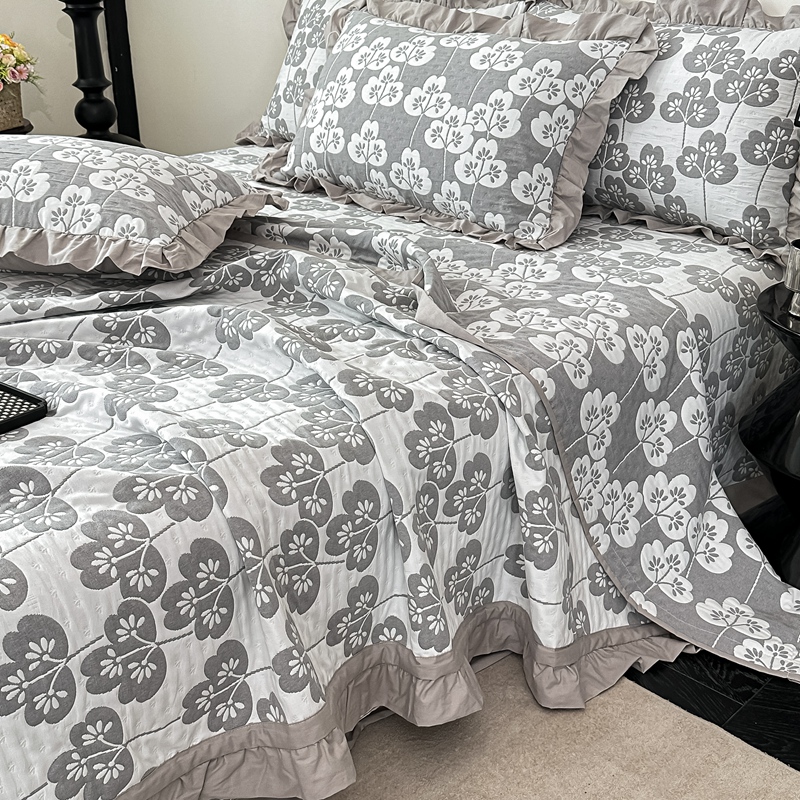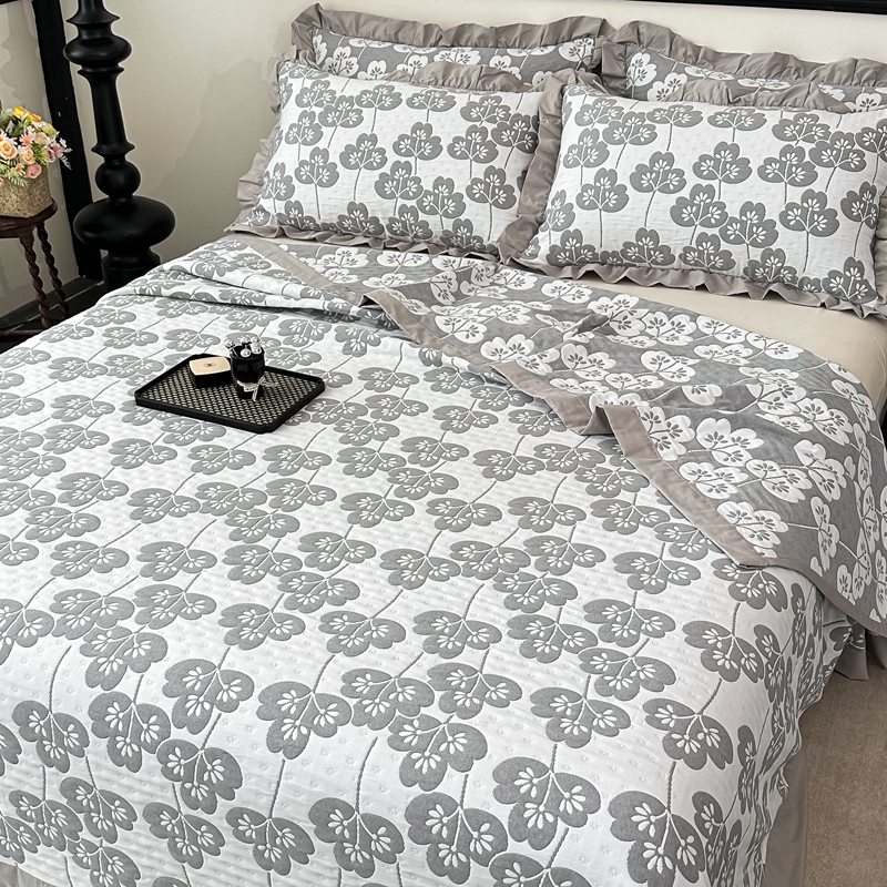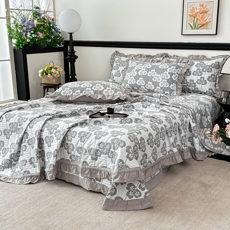 商品名称:紫碧螺2025新款多层纱夏被床盖四件套 浅灰