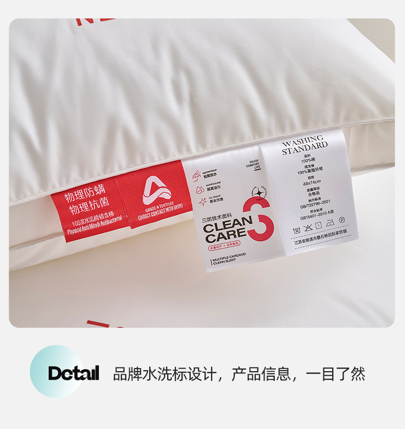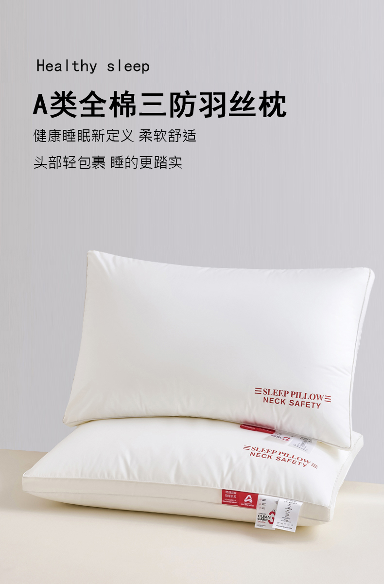 商品名称:全棉羽丝枕 羽丝绒枕芯 三防枕芯 全棉枕芯 中高枕