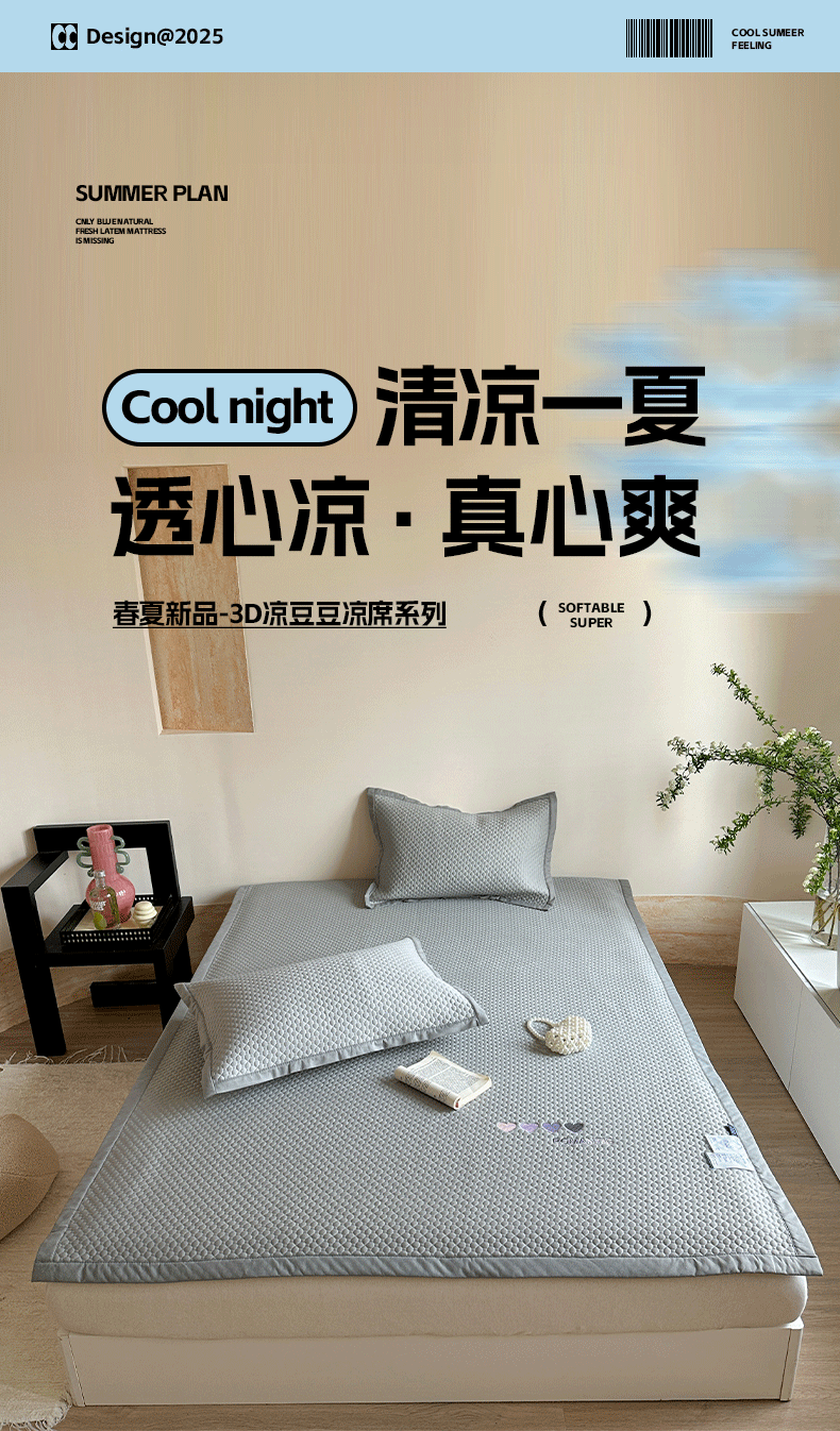 商品名称:莱家富 2025新款3D凉豆豆凉席系列-秘豆 粉