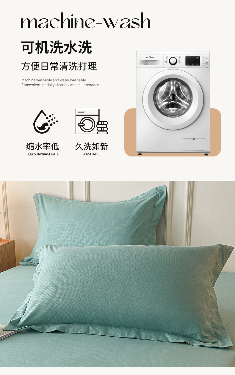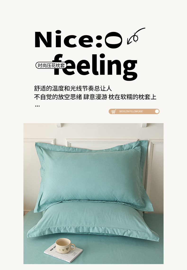 商品名称:露梦家纺 2025新款纯色磨毛压花简约枕套 松石绿