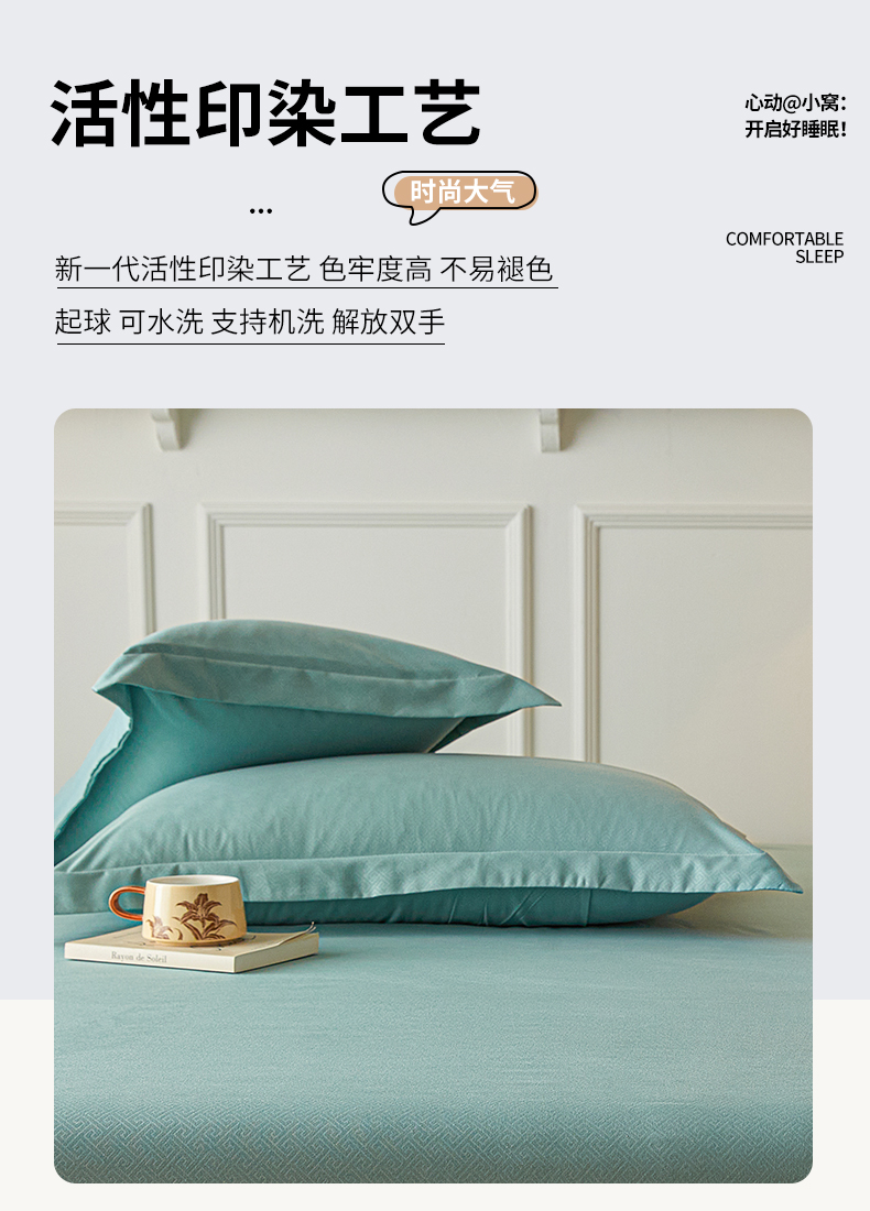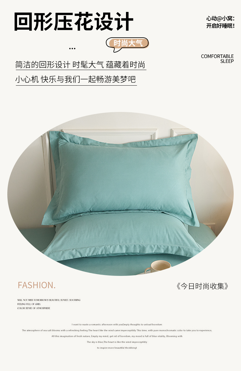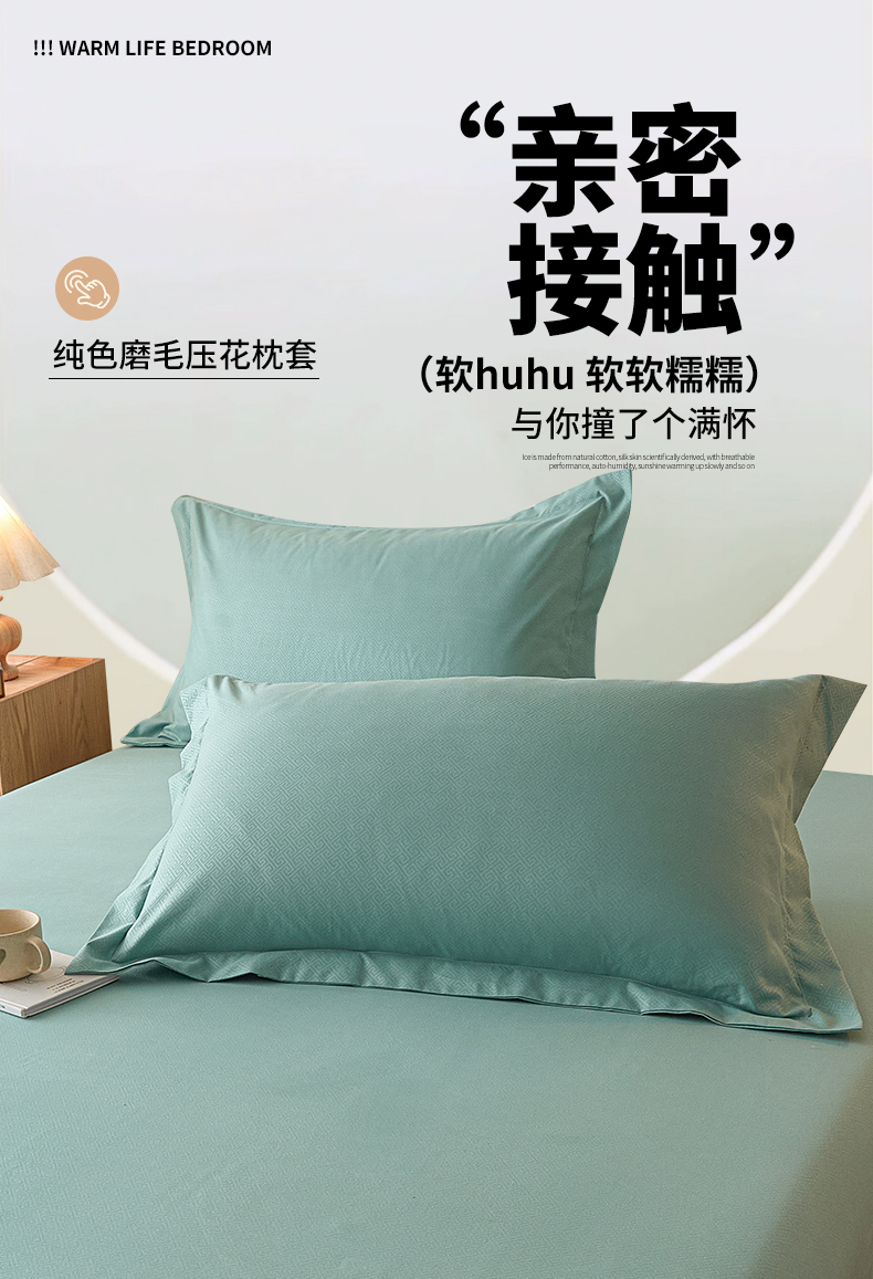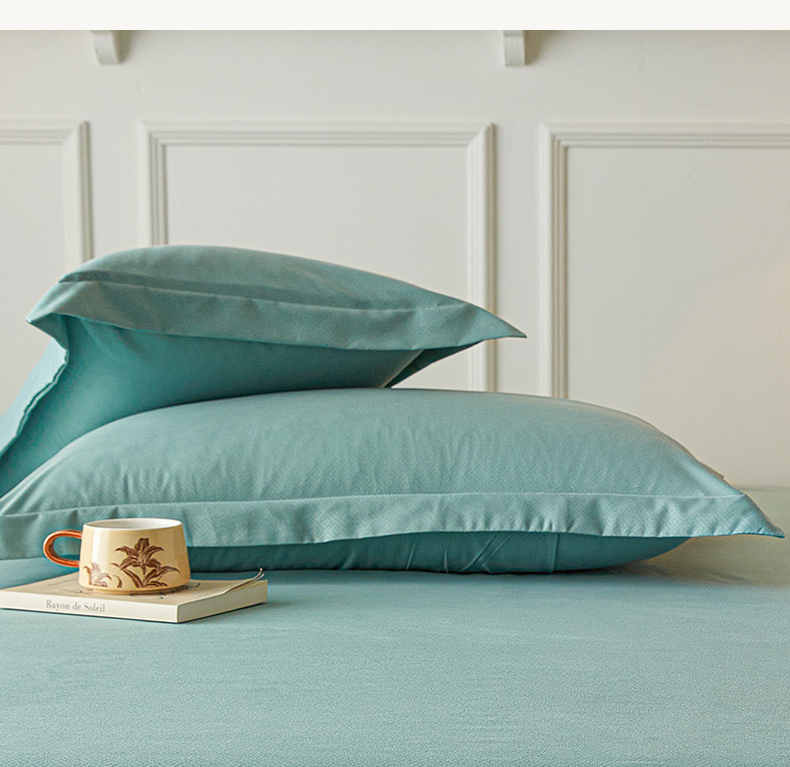 露梦家纺 2025新款纯色磨毛压花简约枕套 松石绿