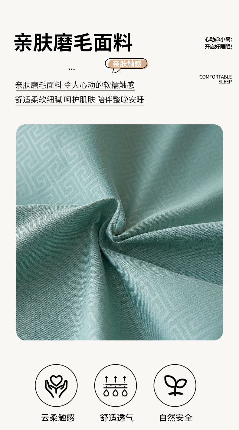 露梦家纺 2025新款加厚保暖牛奶绒刺绣款四件套-轻羽(风格二) 轻羽-青霜绿,轻羽-青霜绿