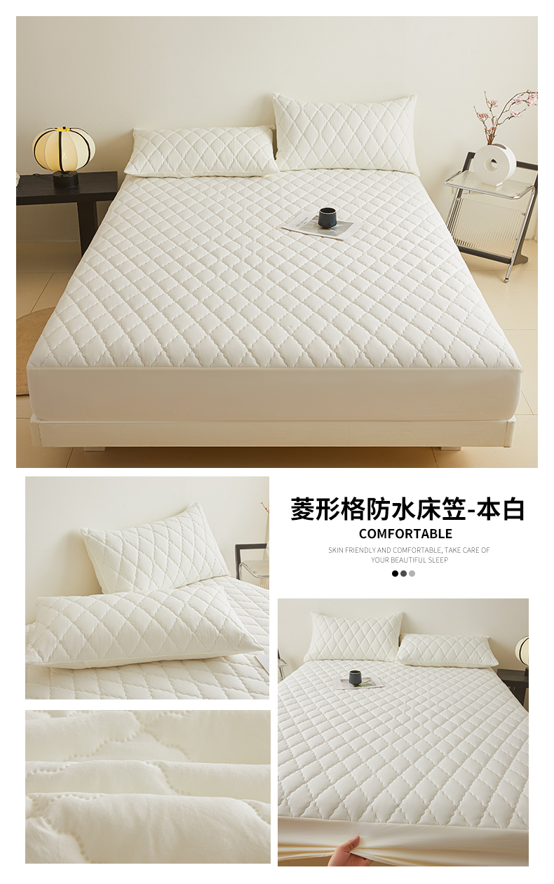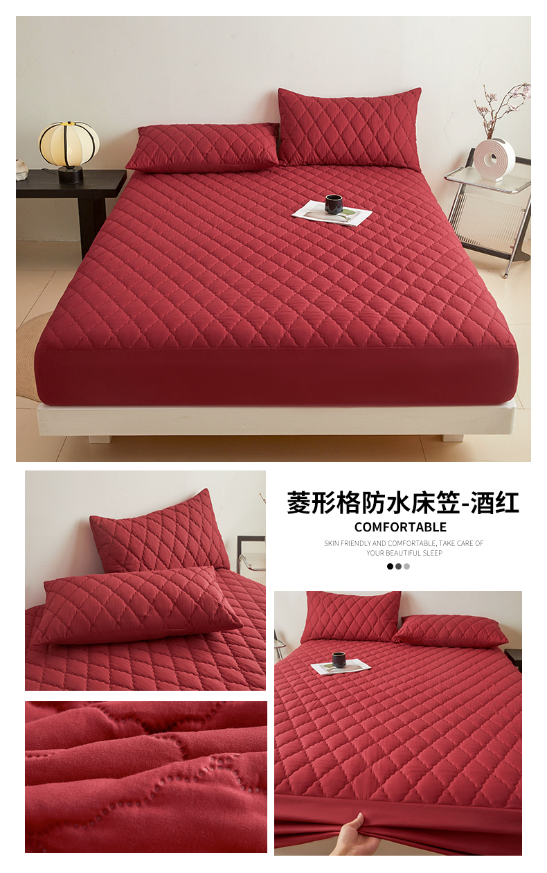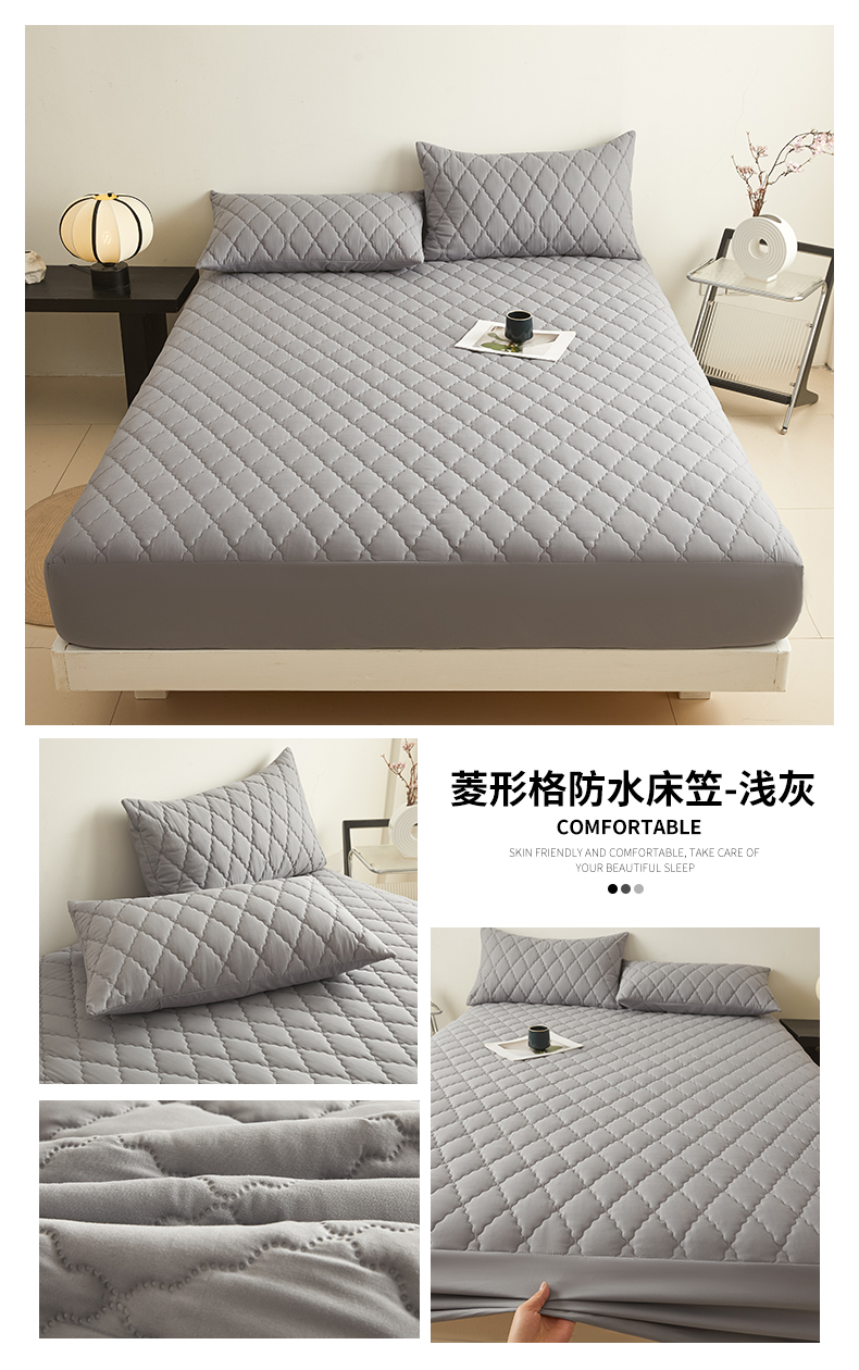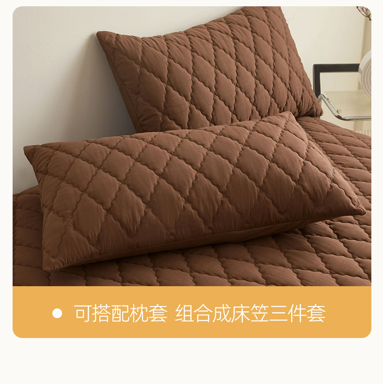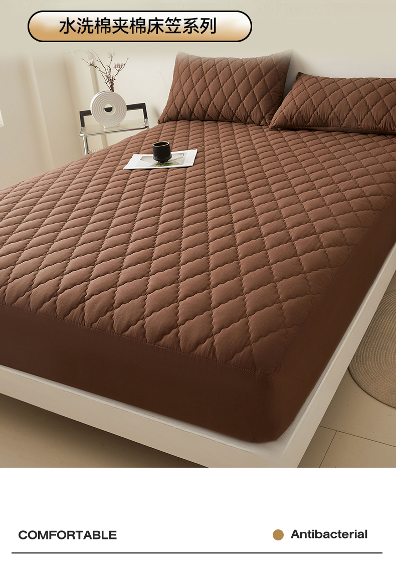 • 91家纺网 家纺一手货源 找家纺 雯豆家纺 2025新品外贸亚马逊纯色防水夹棉床笠跨境电商速卖通床罩可定制尺寸 菱形格防水床笠-深棕