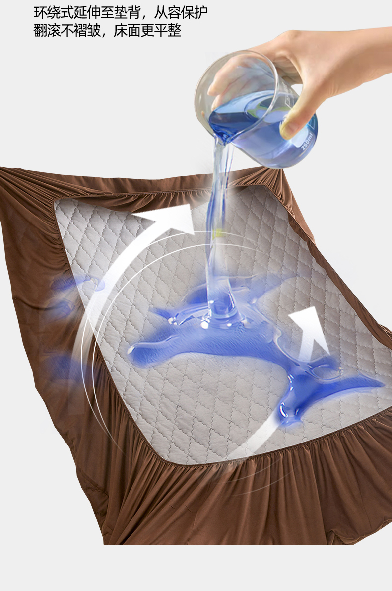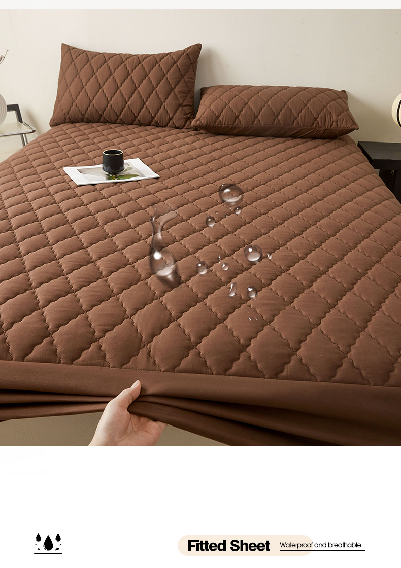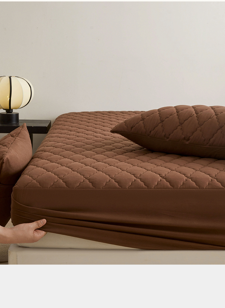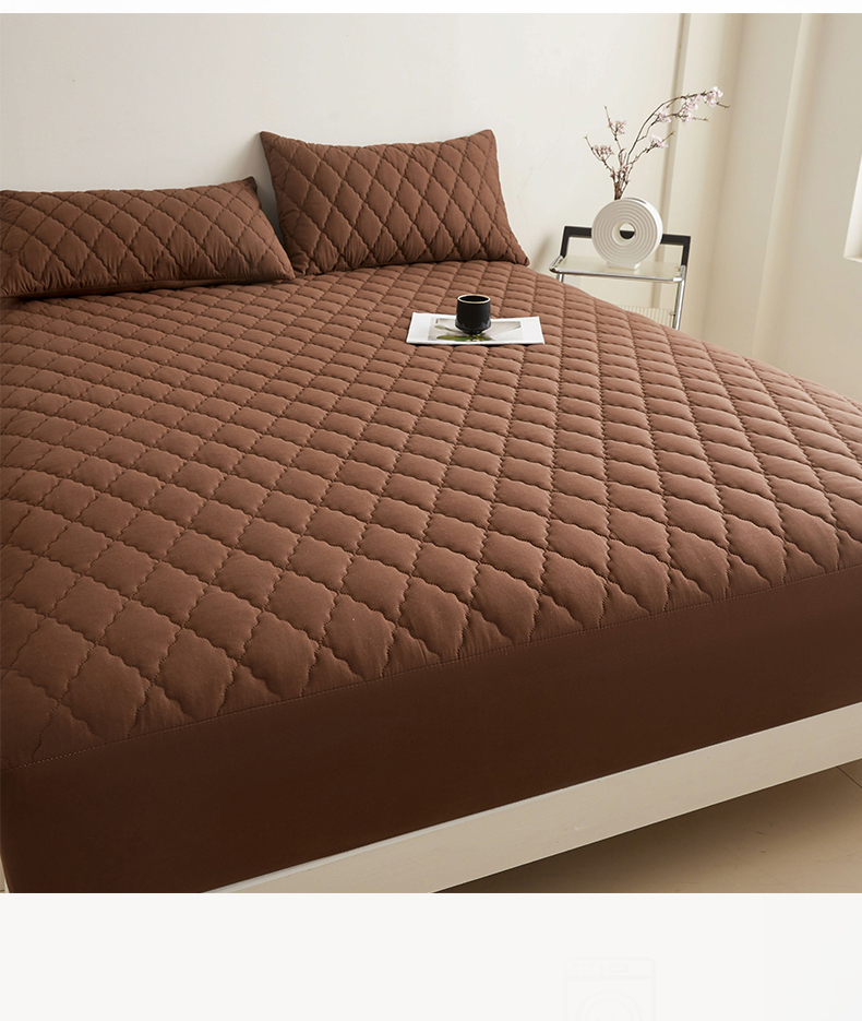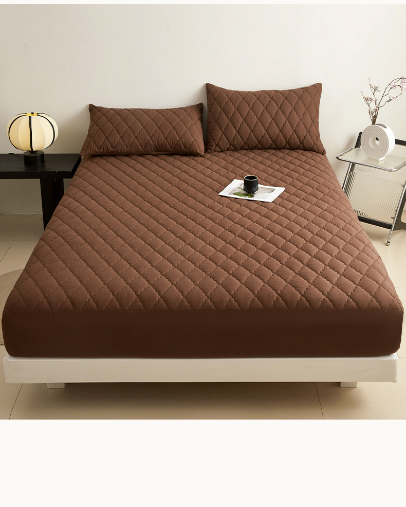 雯豆家纺 2025新品外贸亚马逊纯色防水夹棉床笠跨境电商速卖通床罩可定制尺寸 菱形格防水床笠-深棕