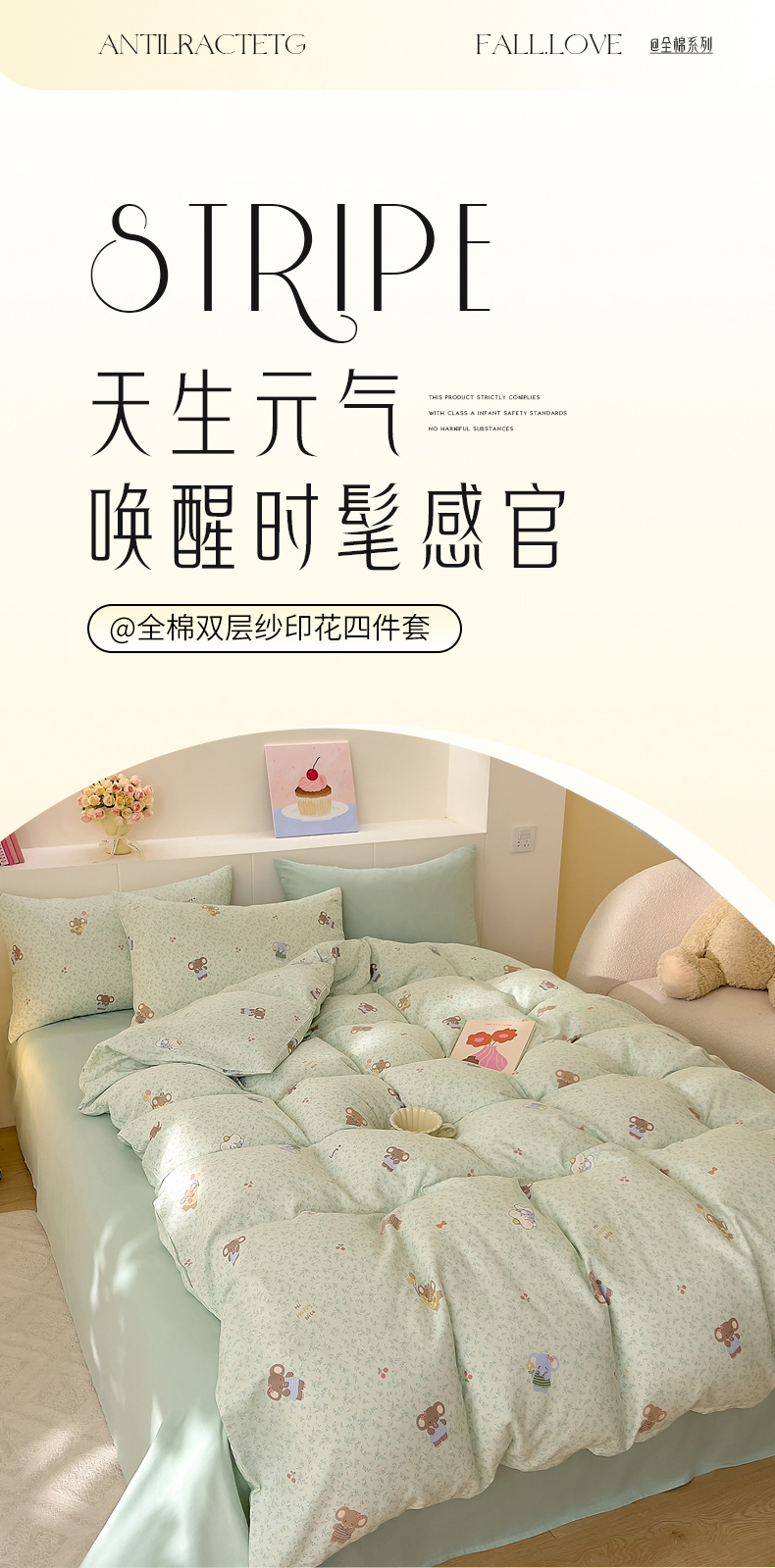 当前位置: 91家纺网 > 商品网购 > 床品套件 > 四件套 > 双层纱四件套 > DoDo 兜兜 2025新款全棉纯棉小温暖双层纱四件套【可定做尺寸】 幸福小象-绿