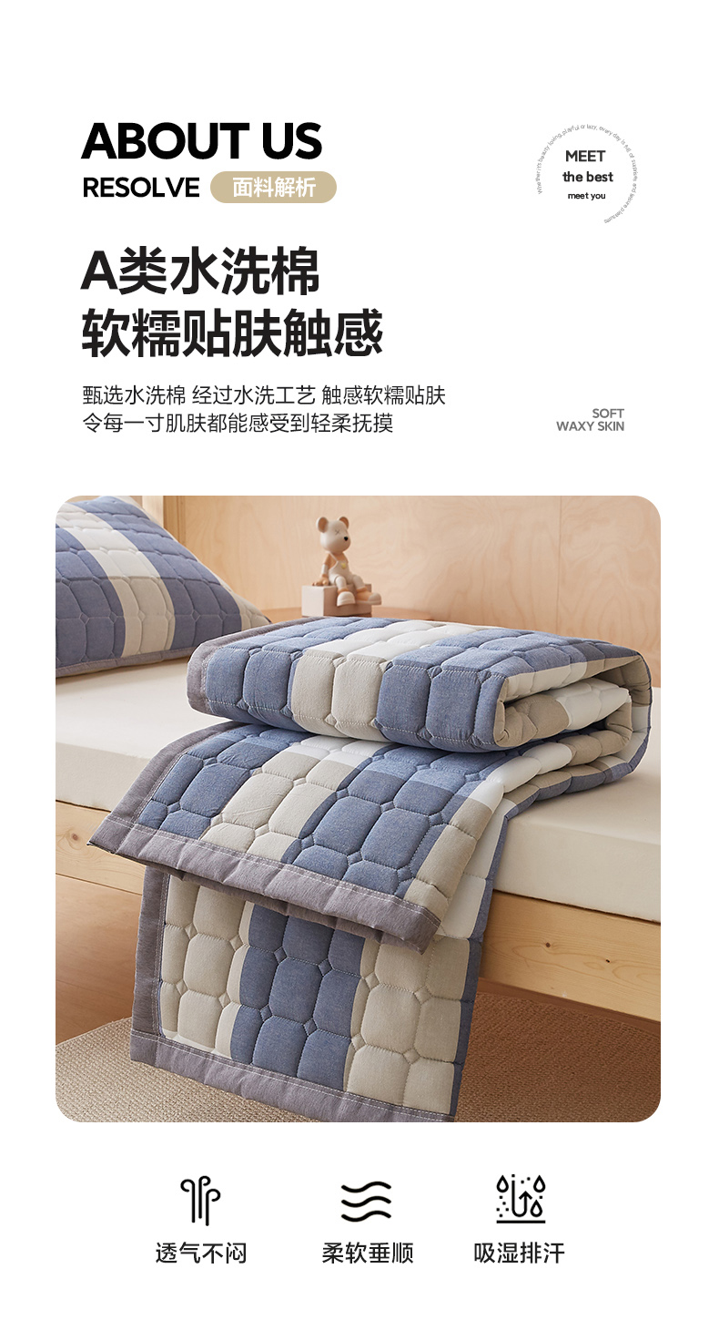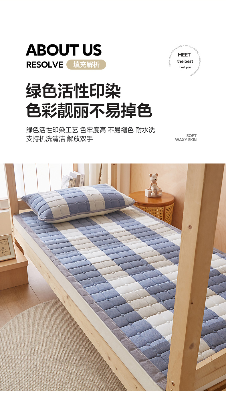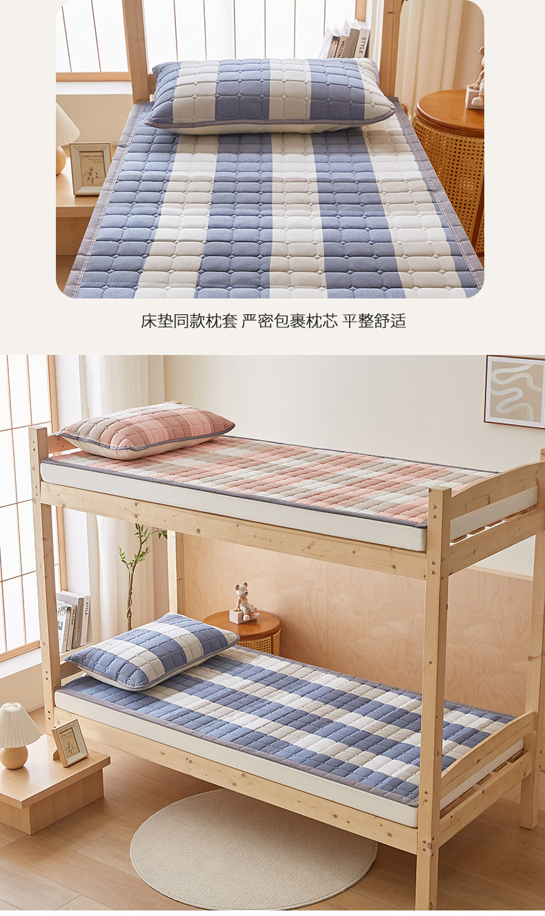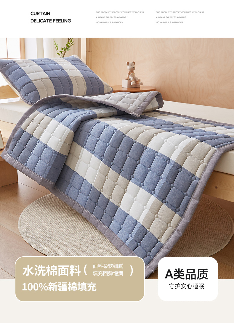• 91家纺网 家纺一手货源 找家纺 暖季家纺 2025新款A类水洗棉学生絮叠床护垫 絮叠床护垫-蓝大格