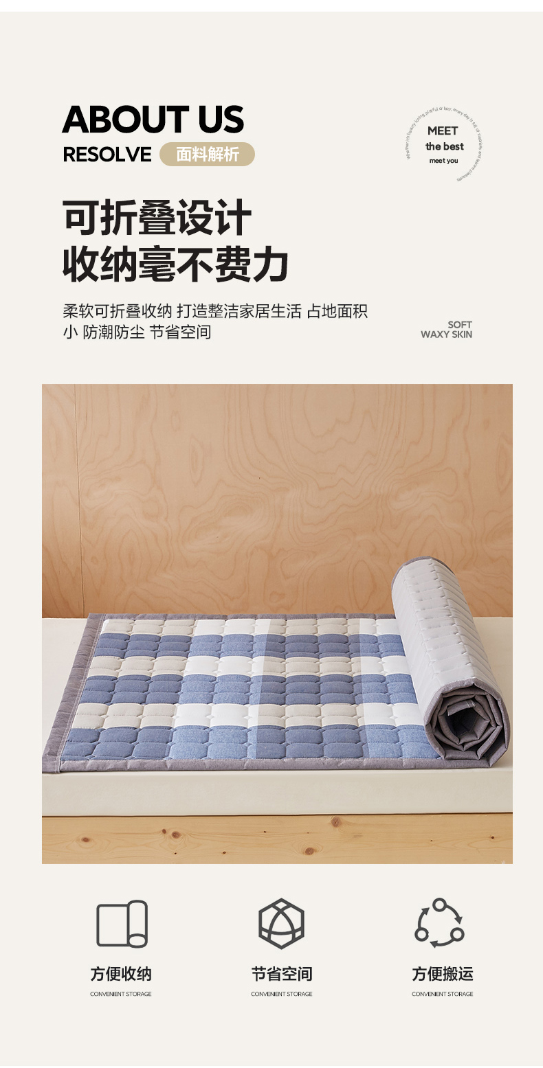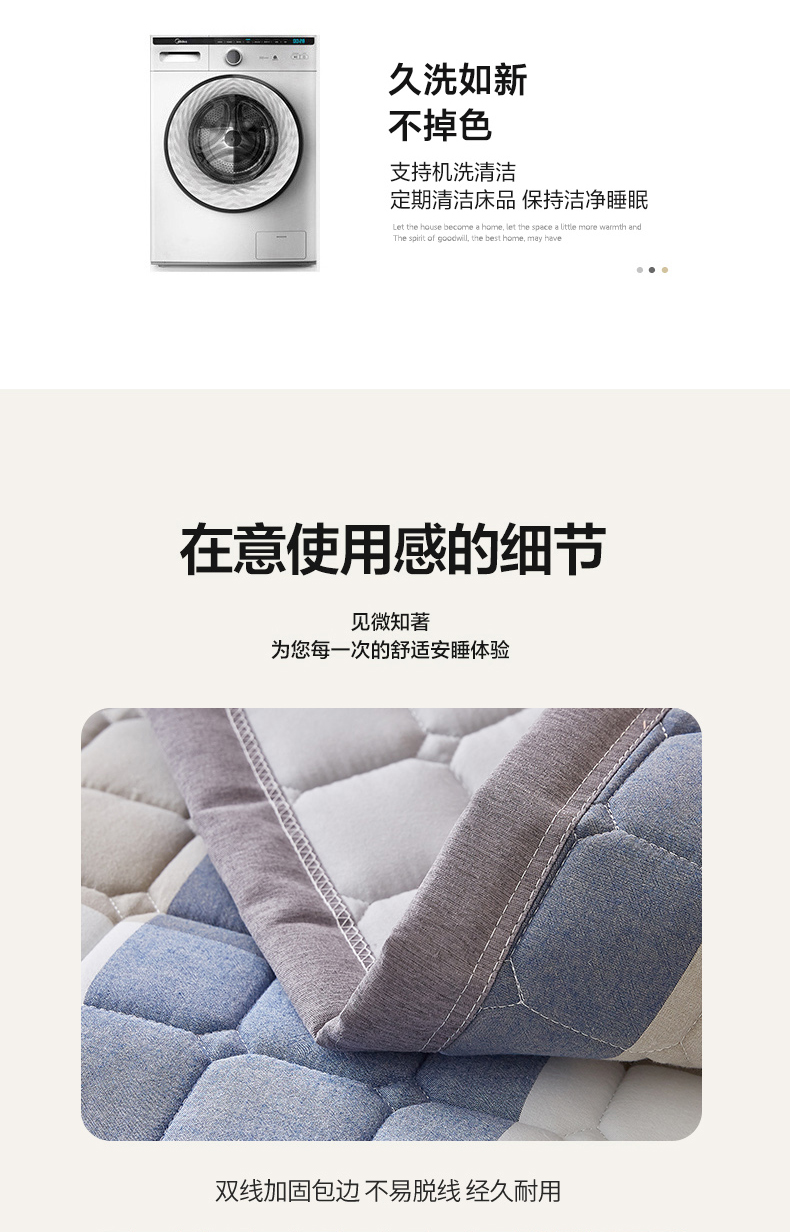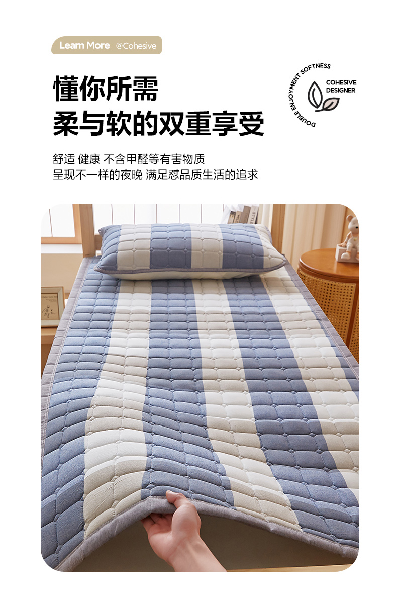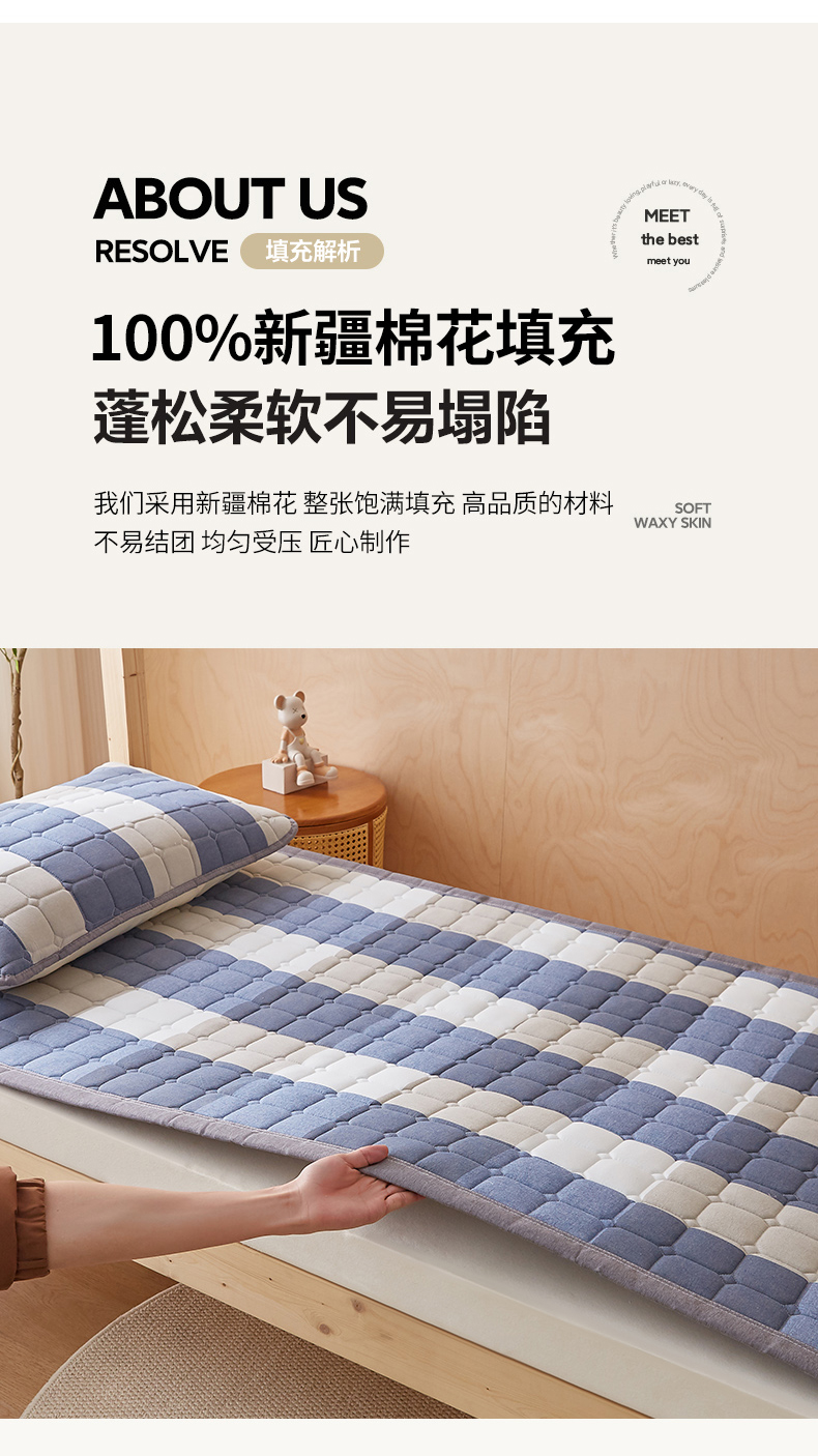 • 91家纺网 家纺一手货源 找家纺 暖季家纺 2025新款A类水洗棉学生絮叠床护垫 絮叠床护垫-蓝大格