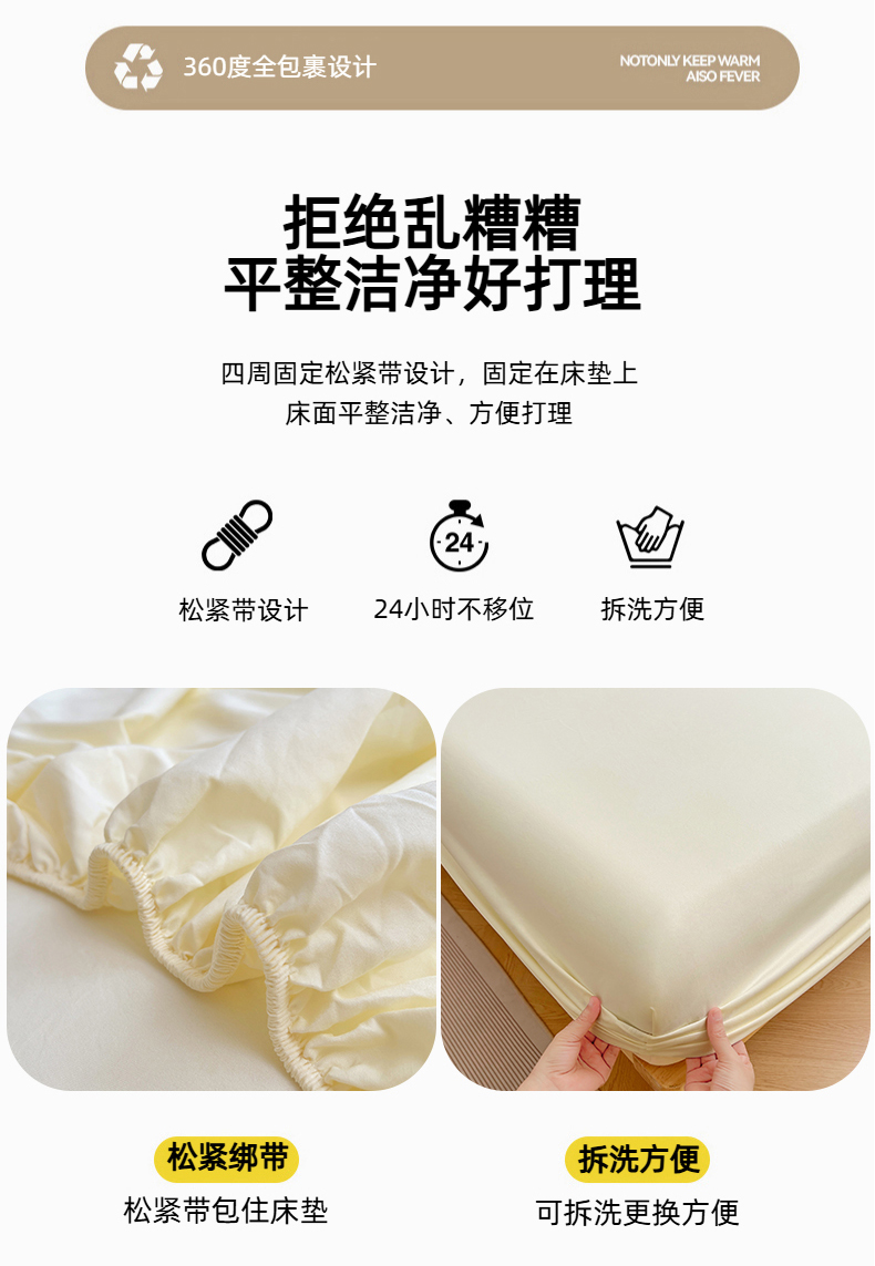 卡迪熊家纺 2025新款亲肤舒适水洗m单床笠 奶黄