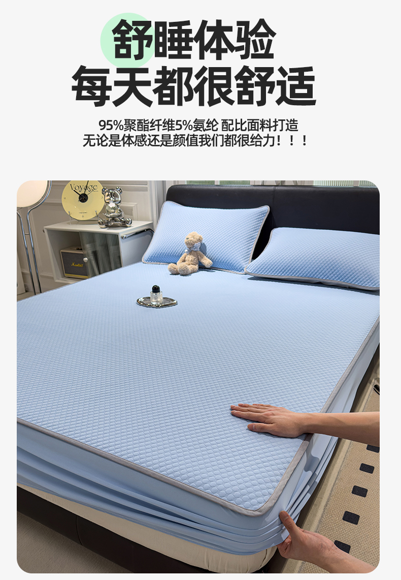 • 91家纺网 家纺一手货源 找家纺 乐家欣 2025新款A类5A抗菌级针织豆豆床笠系列 豆豆床笠-宾利蓝