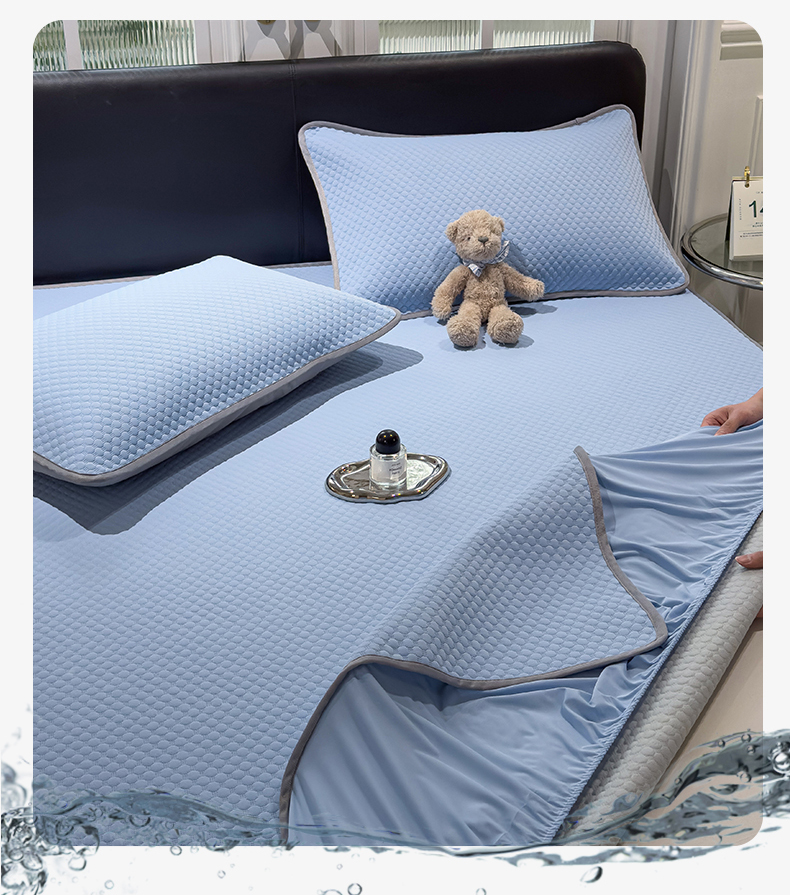 乐家欣 2025新款A类5A抗菌级针织豆豆床笠系列 豆豆床笠-宾利蓝
