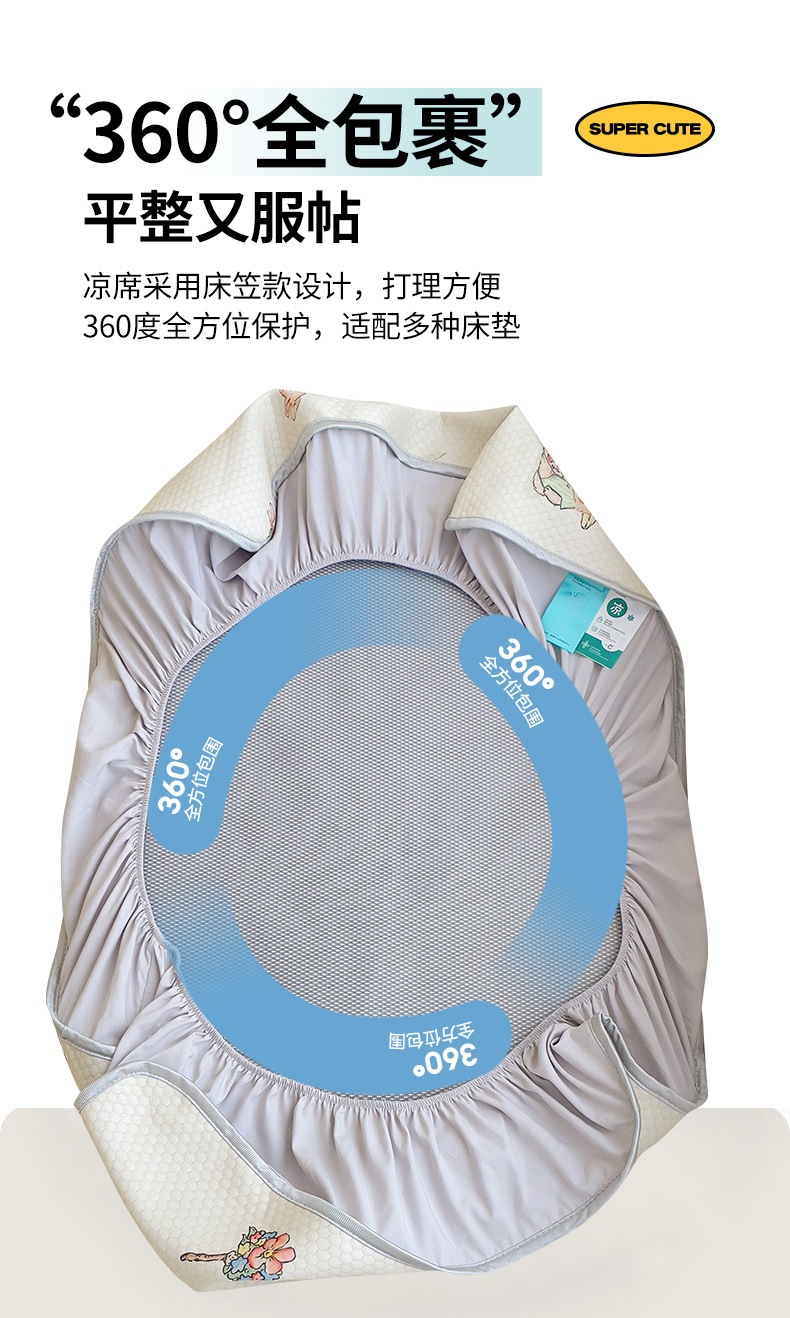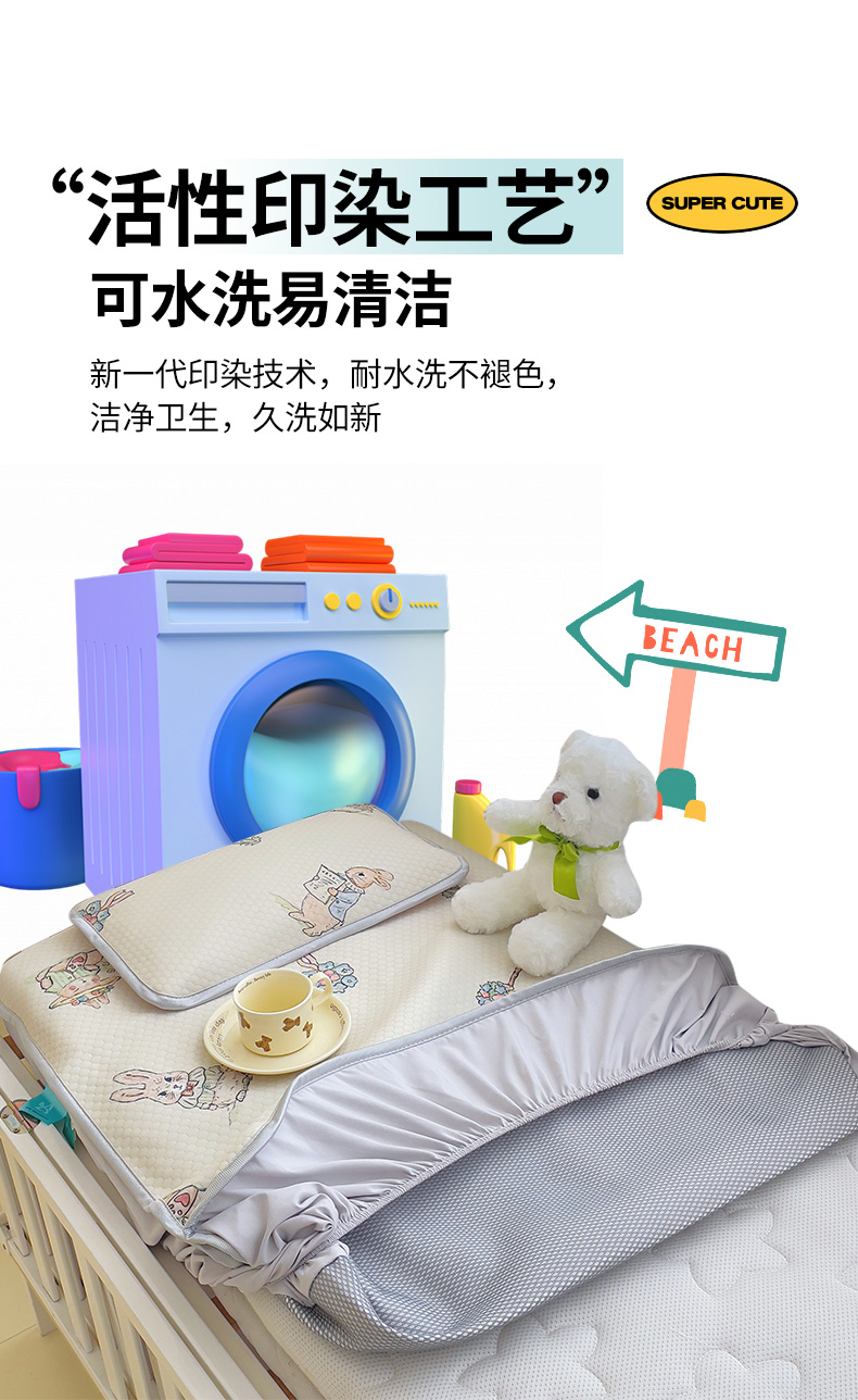 当前位置: 91家纺网 > 商品网购 > 床上用品 > 凉席 > 小叮当家纺仓储工厂店 (提供买家秀 爆款花型 不断货)2025新款冰豆豆儿童卡通凉席床笠 小兔