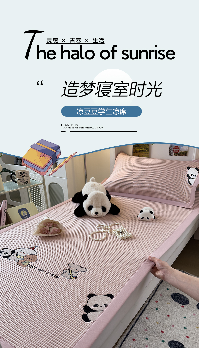 眠多宝 2025新款凉豆豆学生宿舍用床席床笠可水洗凉席 床席床笠--床席款(绣花款) 呆萌玩伴