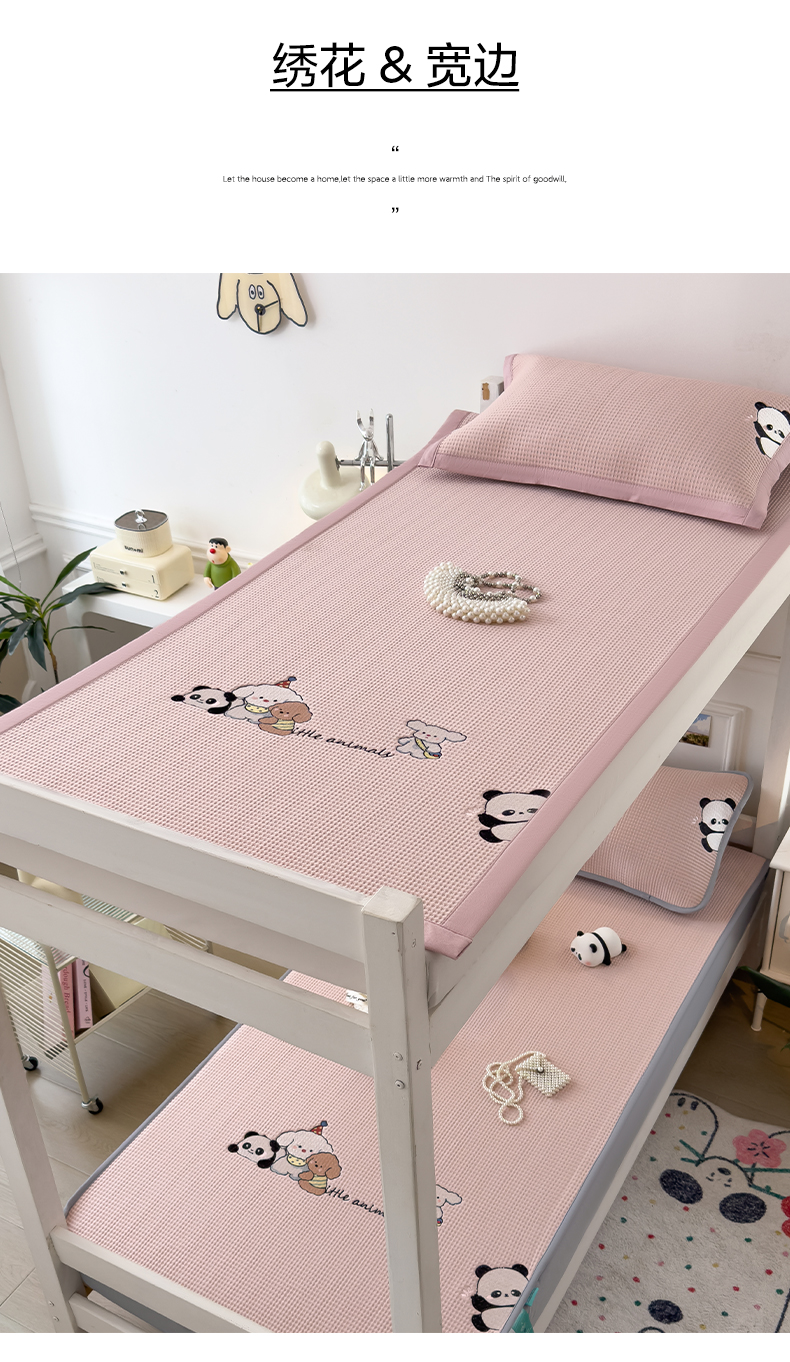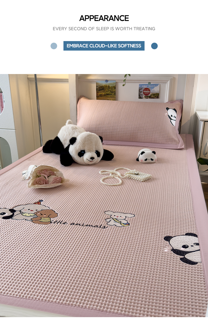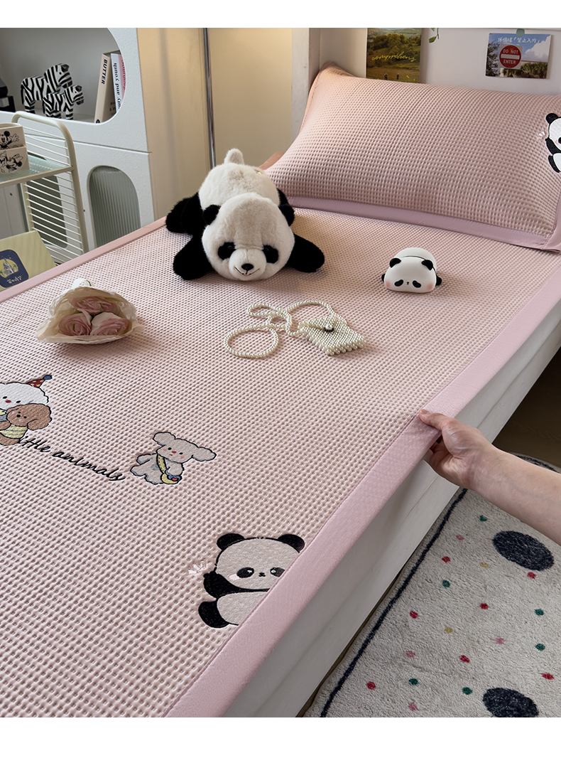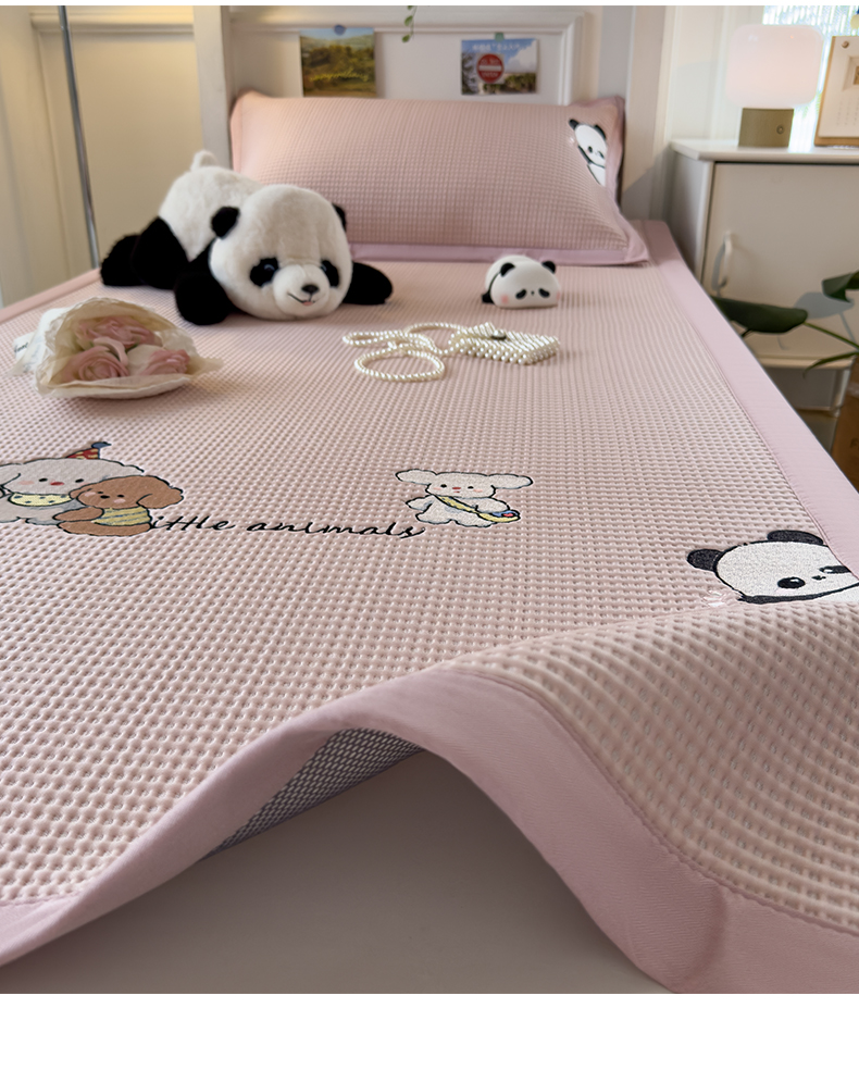 商品名称:眠多宝 2025新款凉豆豆学生宿舍用床席床笠可水洗凉席 床席床笠--床席款(绣花款) 呆萌玩伴