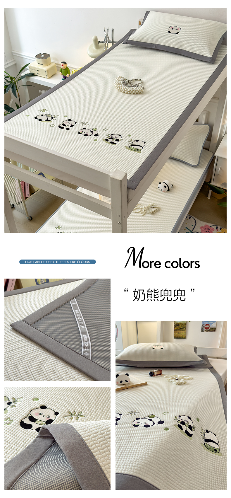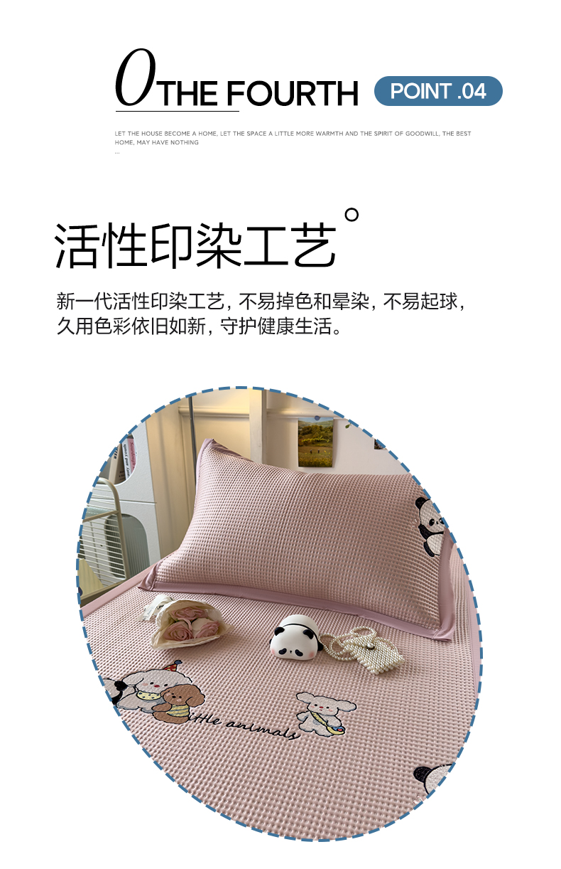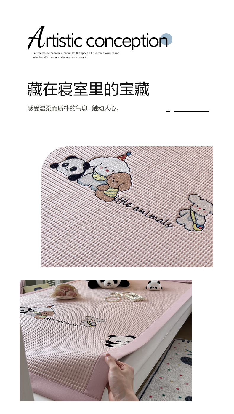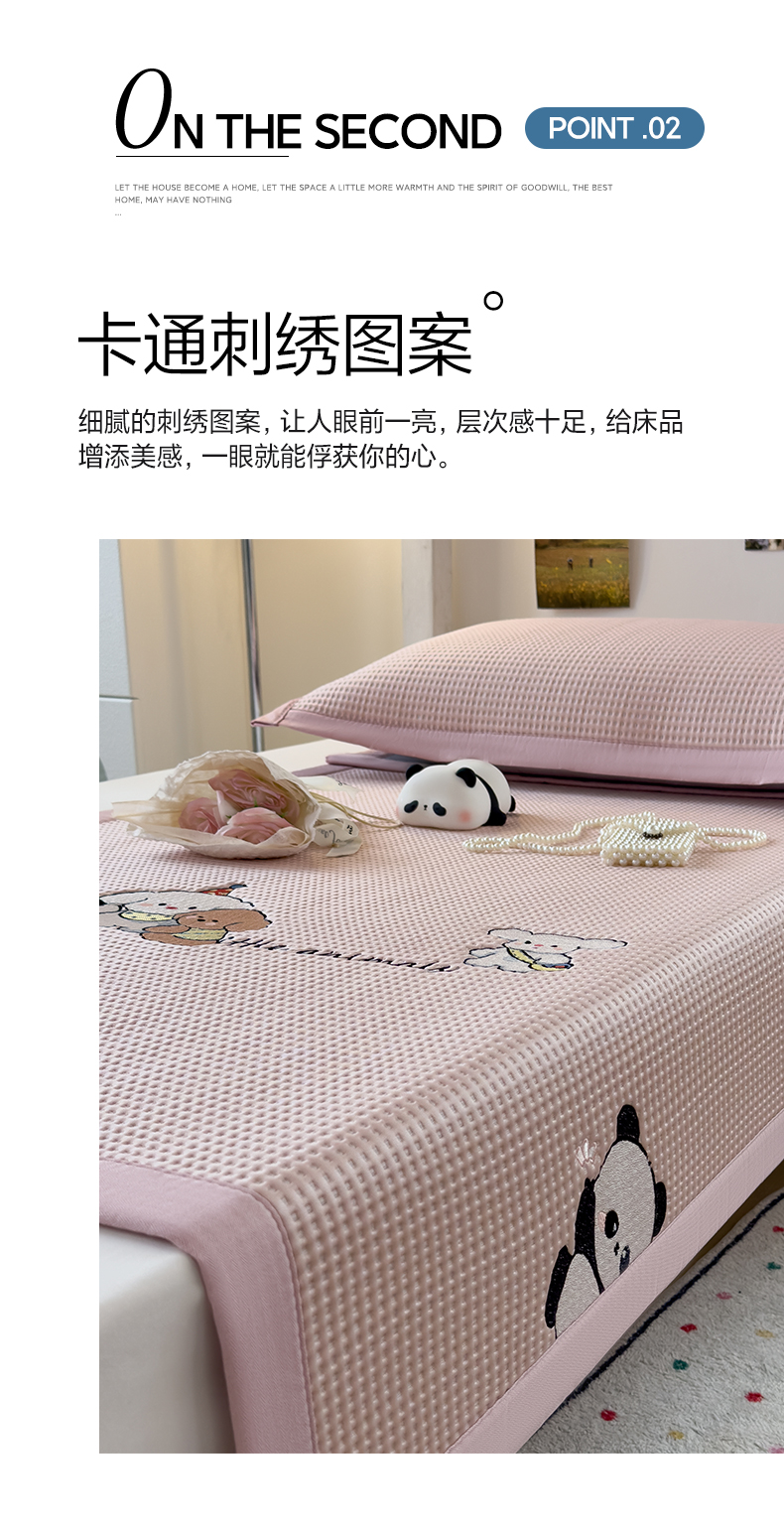 商品名称:眠多宝 2025新款凉豆豆学生宿舍用床席床笠可水洗凉席 床席床笠--床席款(绣花款) 呆萌玩伴