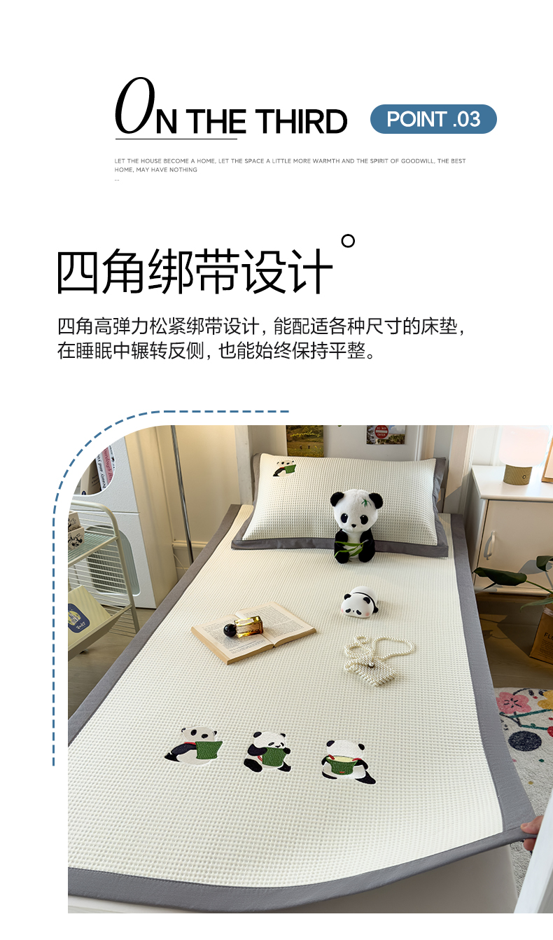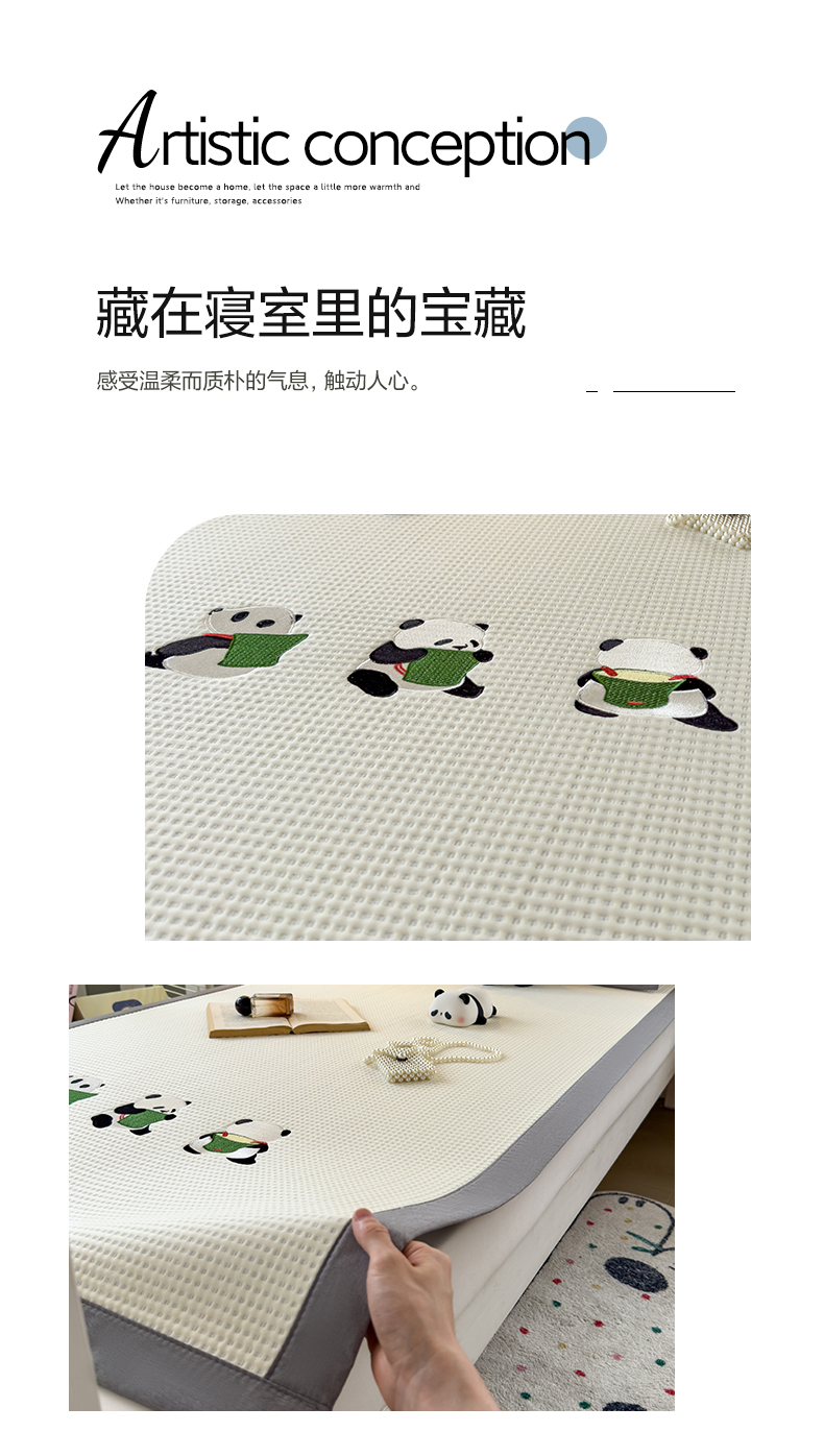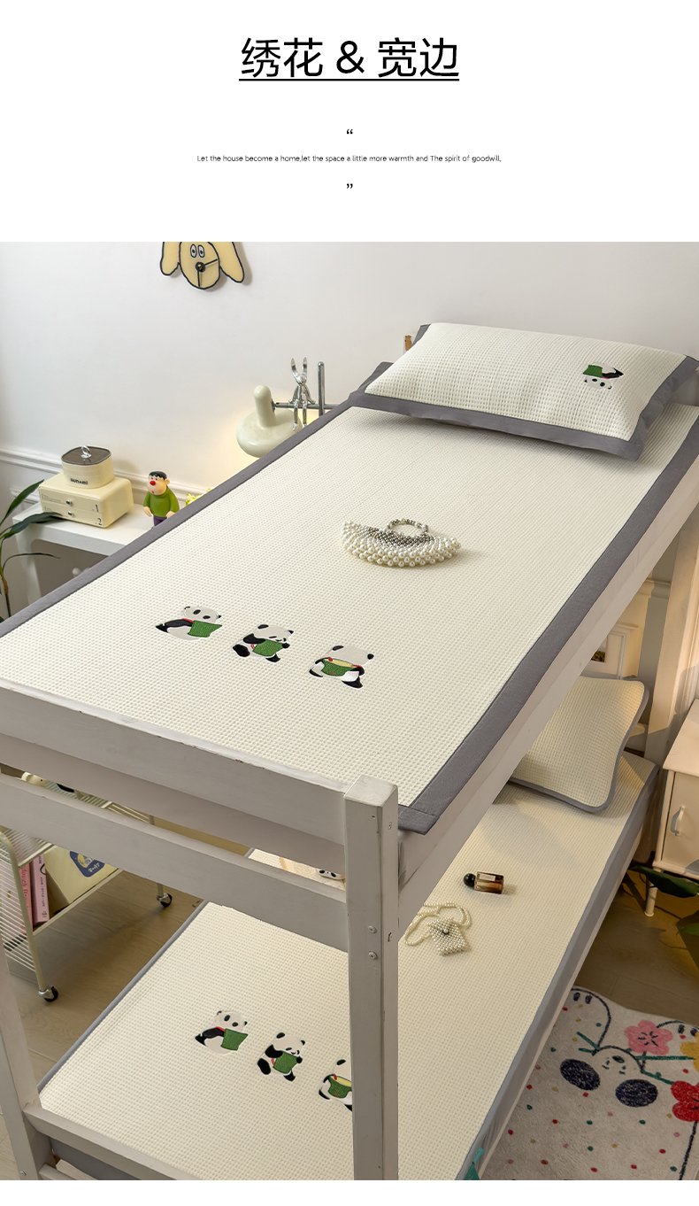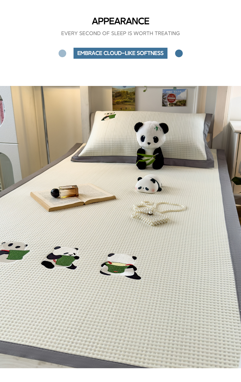 商品名称:眠多宝 2025新款凉豆豆学生宿舍用床席床笠可水洗凉席 床席床笠--床席款(绣花款) 熊猫噗噗-奶白