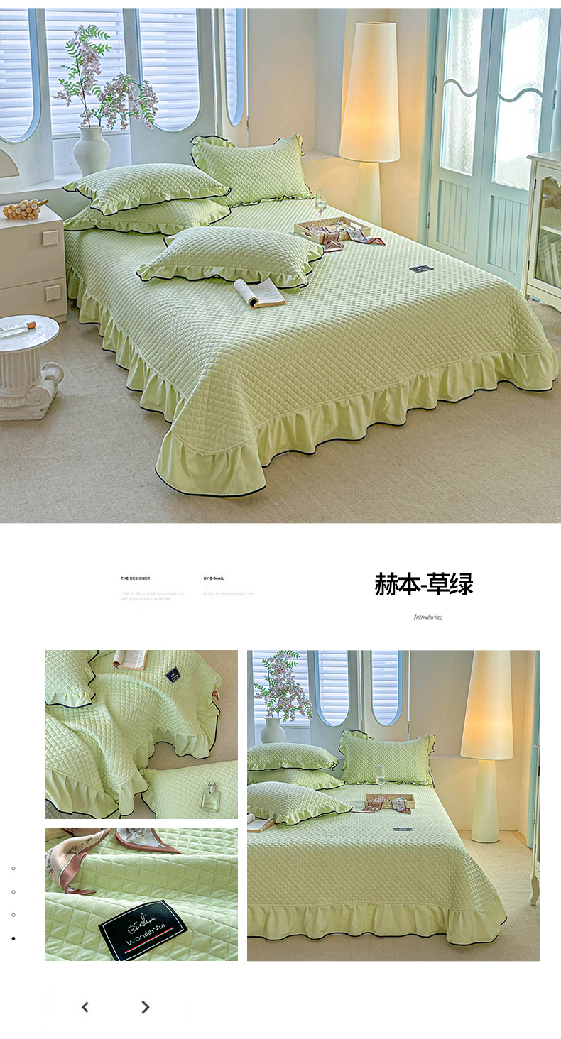 当前位置: 91家纺网 > 商品网购 > 床上用品 > 床盖 > 源舜家纺 2025新款针织赫本风仿棉黑丝花边床盖三件套 赫本-草绿
