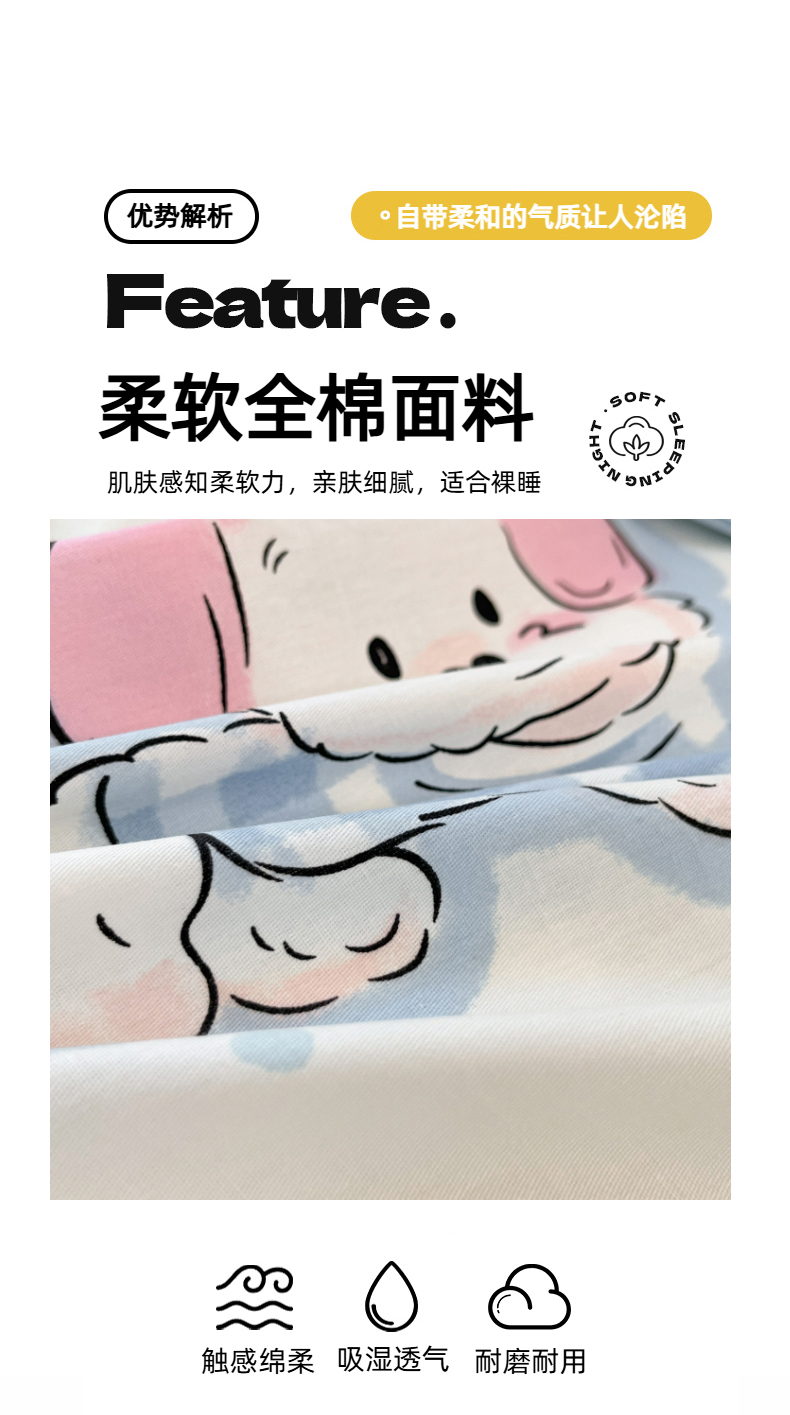 • 91家纺网 家纺一手货源 找家纺 莱通家纺 2025春夏新款12868纯棉印花单被套 被套单件-系列二(商家提供买家秀) 花田小狗