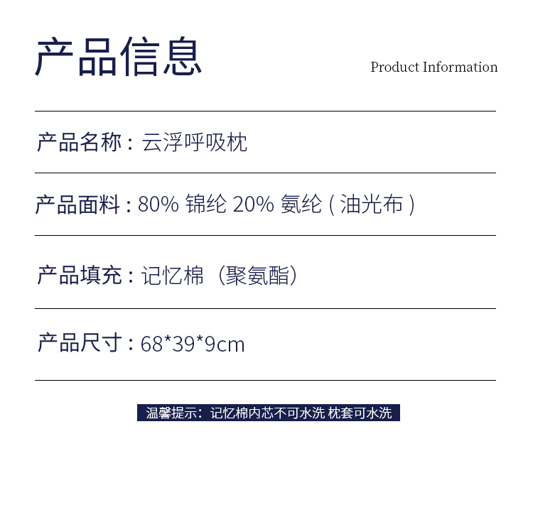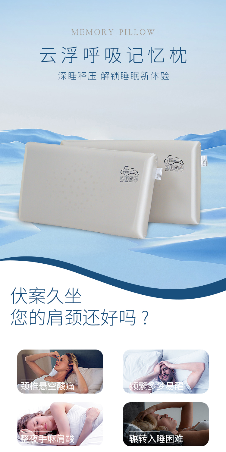 商品名称:圣之寐 2025新款云浮呼吸记忆棉枕头枕芯 云浮呼吸记忆棉枕70*40*10
