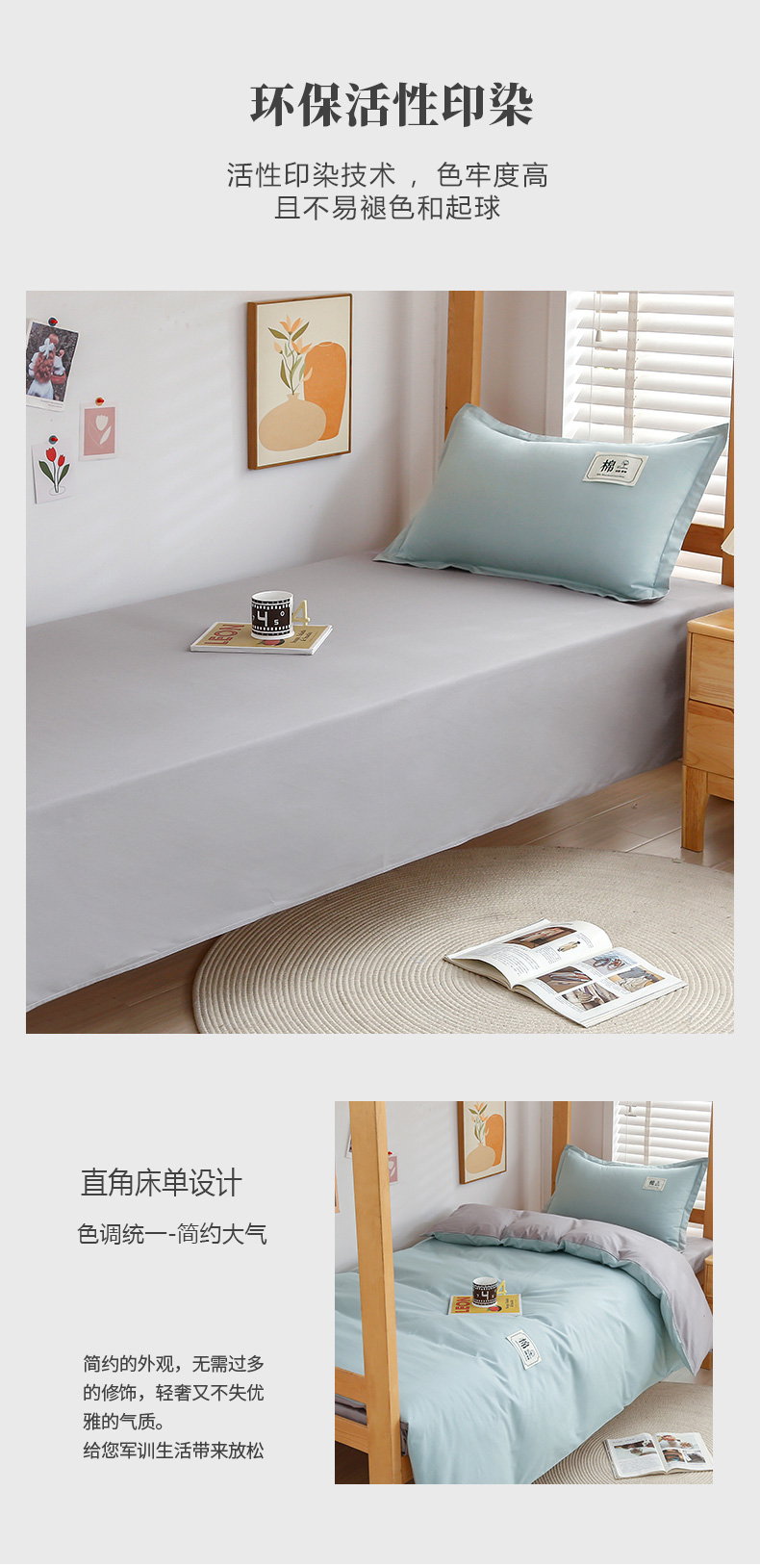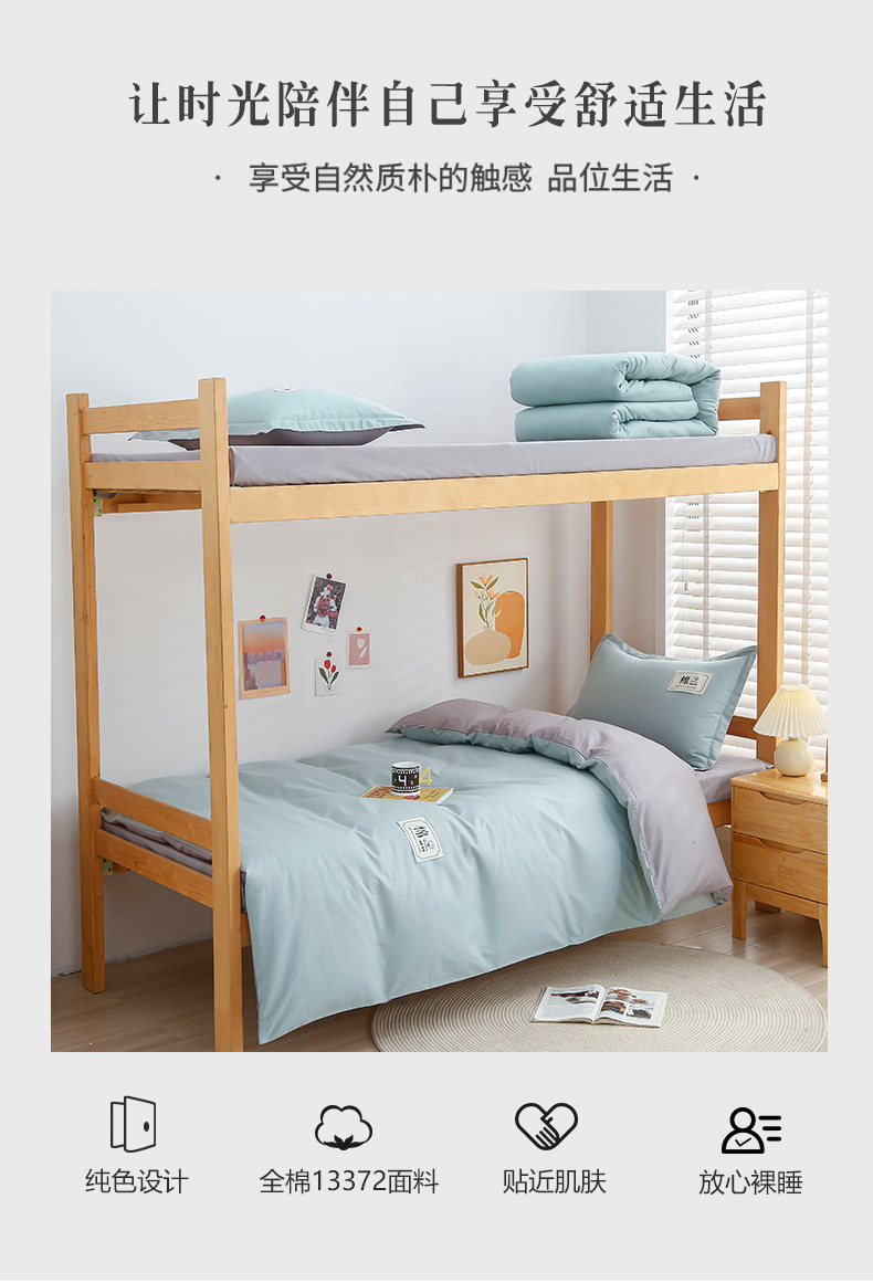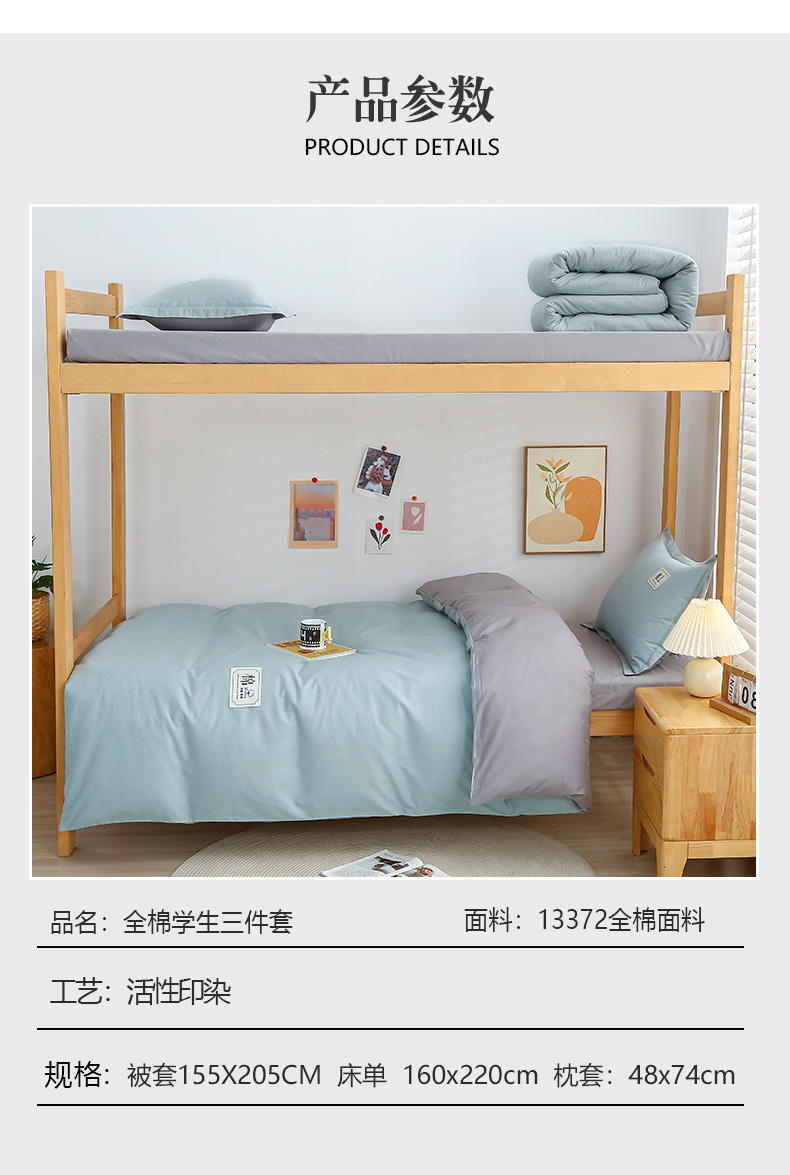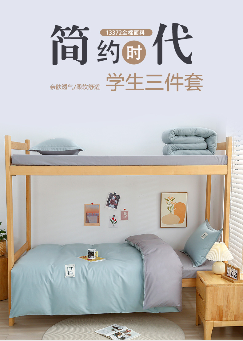 当前位置: 91家纺网 > 商品网购 > 床品套件 > 四件套 > 全棉普通四件套 > 乐旗家纺 2025新款全棉13372印花学生上下铺套件宿舍三件套 素雅绿+灰