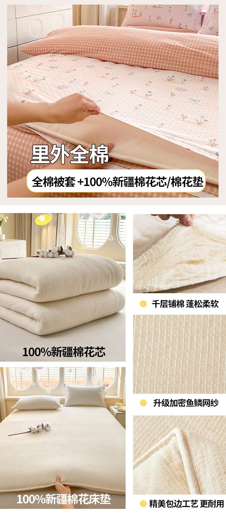 当前位置: 91家纺网 > 商品网购 > 床品套件 > 四件套 > 全棉普通四件套 > 西域种棉人·千百笠 2025新款全棉纯棉大学生宿舍100%新疆棉花被子被褥一整套枕头床垫三件套六件套 默认六件套赠送手提袋 其他组合不送