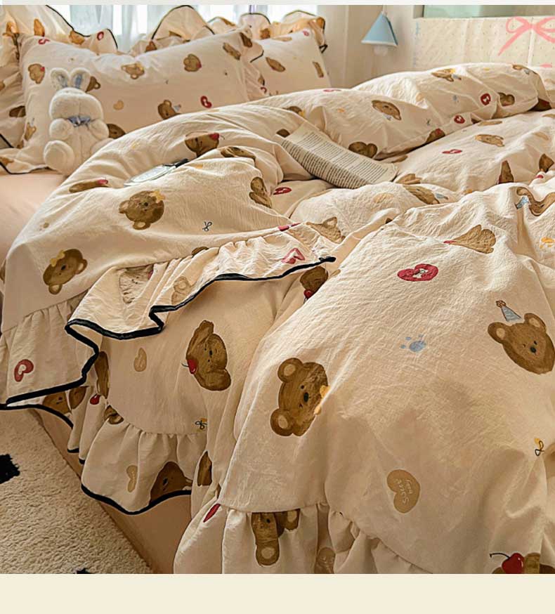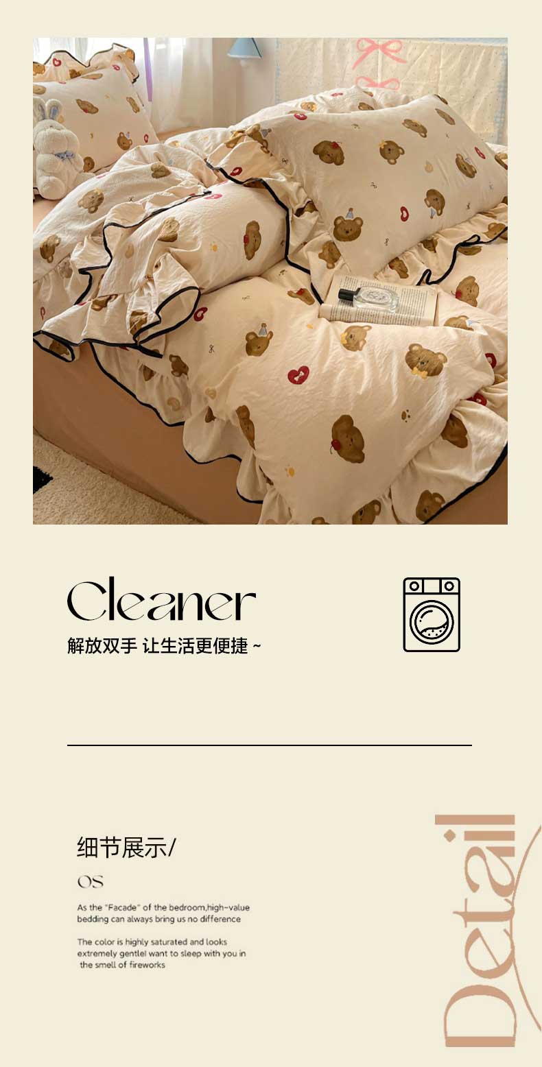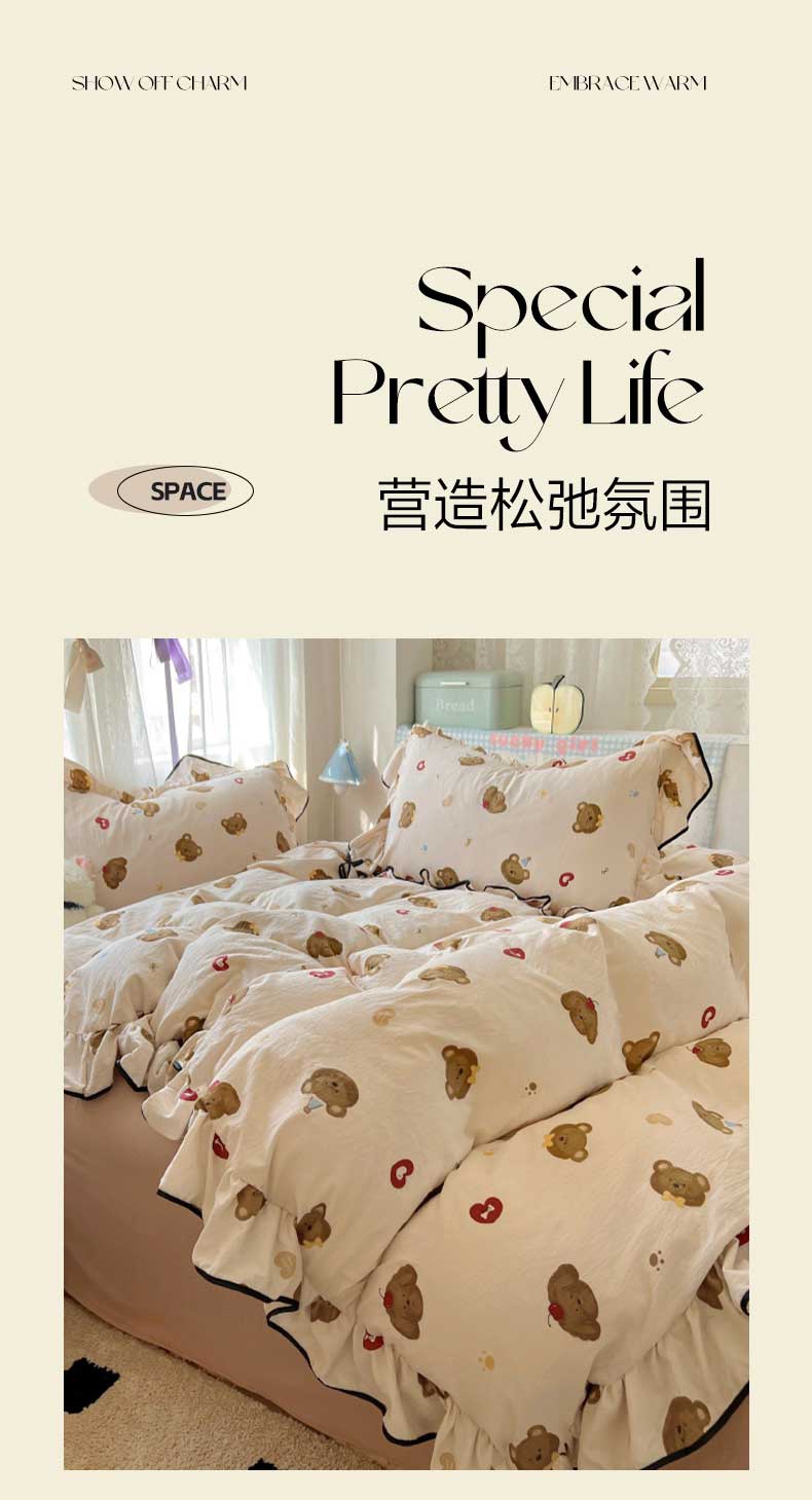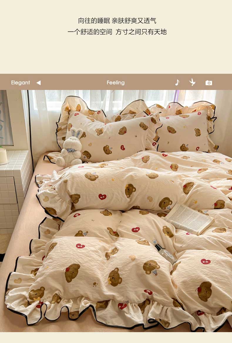 当前位置: 91家纺网 > 商品网购 > 床品套件 > 四件套 > 其它四件套 > 繁花家居 2025新款学生季韩式云感针织棉大花边木耳边四件套 小熊多多