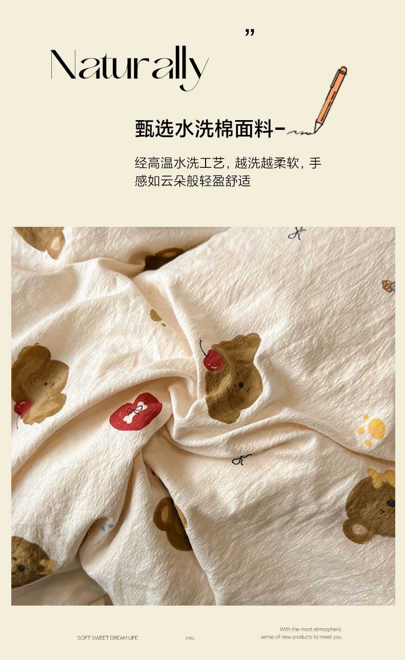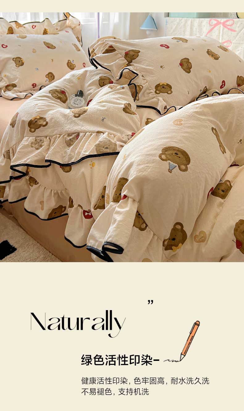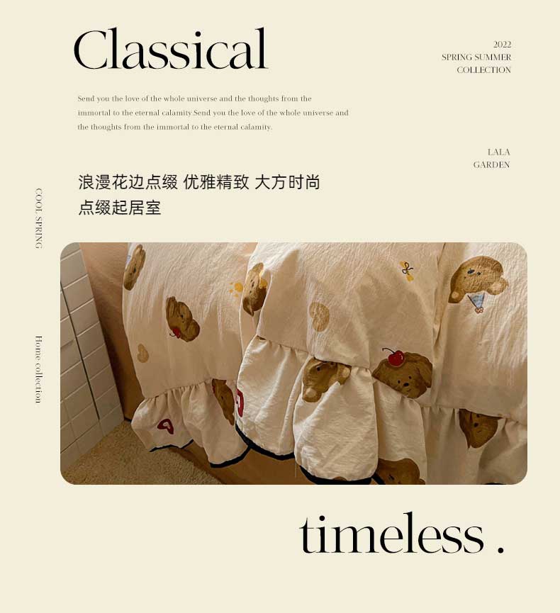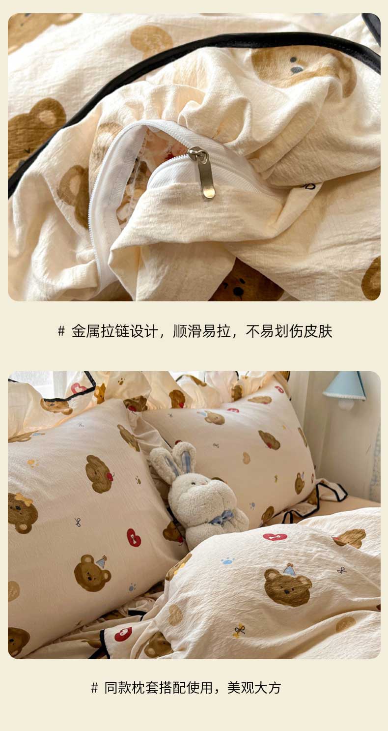 当前位置: 91家纺网 > 商品网购 > 床品套件 > 四件套 > 其它四件套 > 繁花家居 2025新款学生季韩式云感针织棉大花边木耳边四件套 小熊多多
