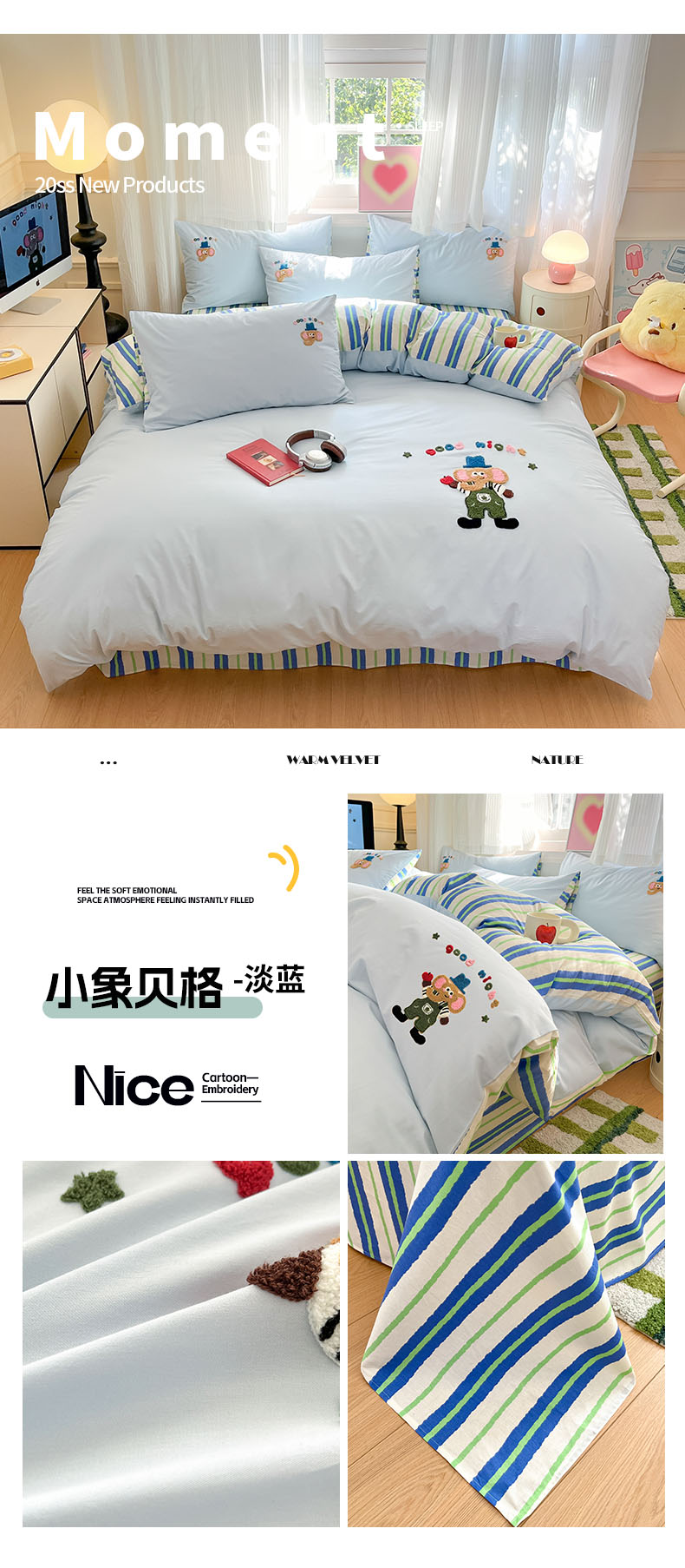 (总) 泽西2025新品A类13376加密全棉卡通床笠三件套纯棉学生宿舍单床笠,福小象-牛仔蓝,福小象-晴空蓝,开心鳄-绅士灰,快乐蝶-奶油黄,淘气虫-橄榄绿,淘气虫-奶茶,淘气虫-微微紫,天使马-高级灰,幸运猫-浅米灰