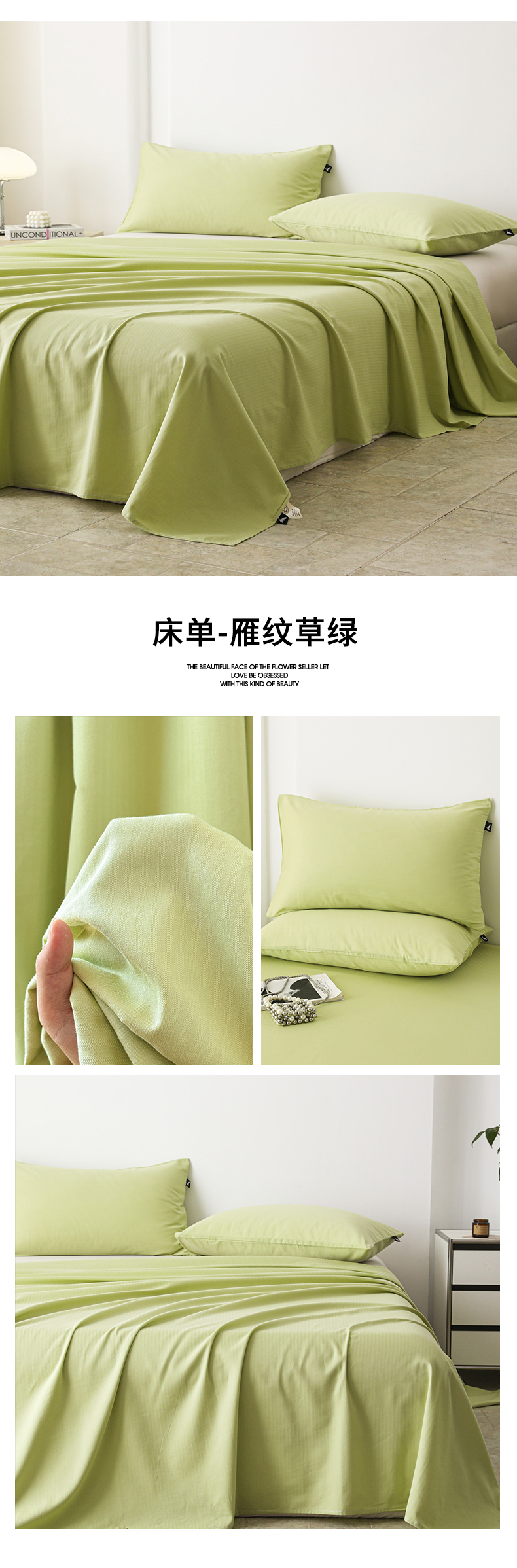 • 91家纺网 家纺一手货源 找家纺 眠博士 2025新款大雁纹小提花全棉纯棉床单单件-单床单 床单-雁纹草绿