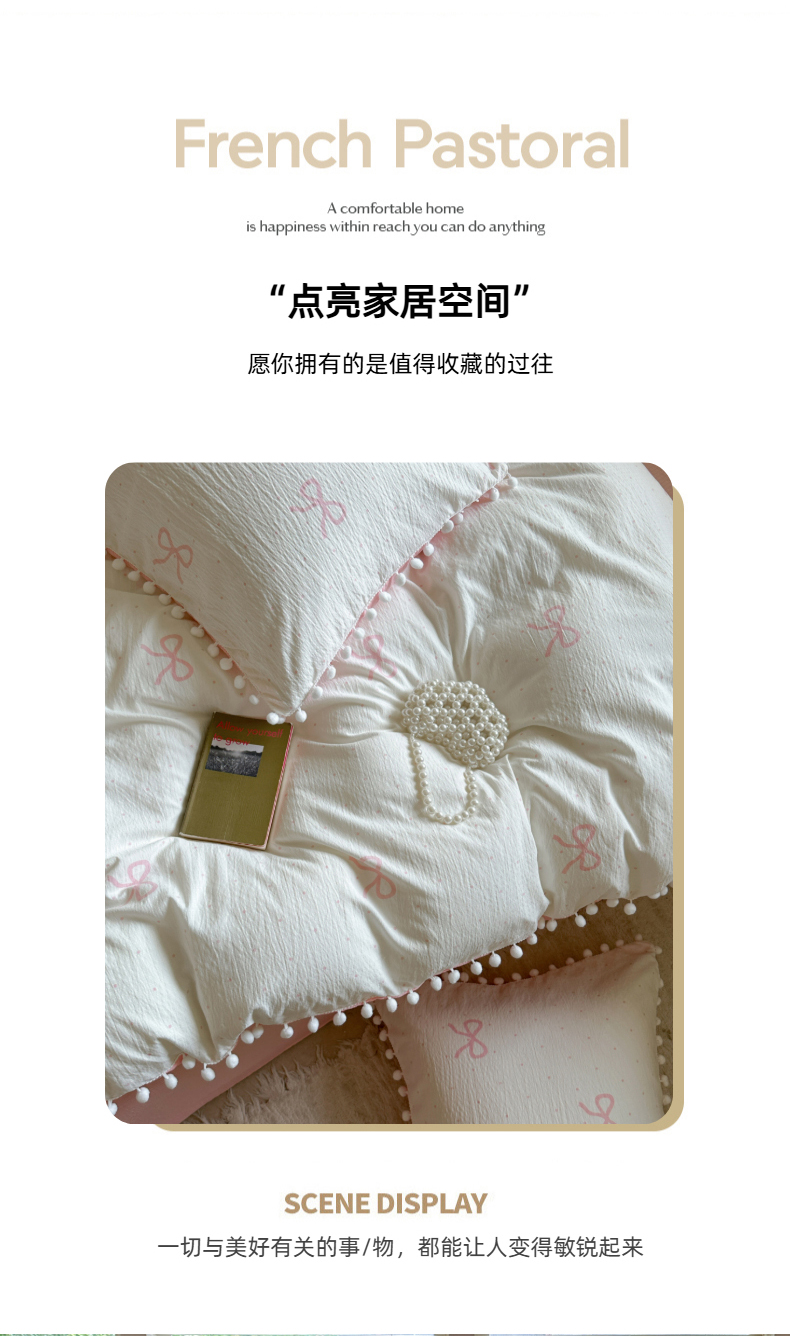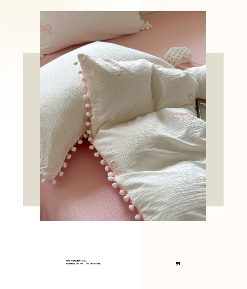 当前位置: 91家纺网 > 商品网购 > 床品套件 > 四件套 > 其它四件套 > 缘生活 2025新款皱皱纱毛球球流苏四件套 皱皱纱球球流苏-蝴蝶结粉