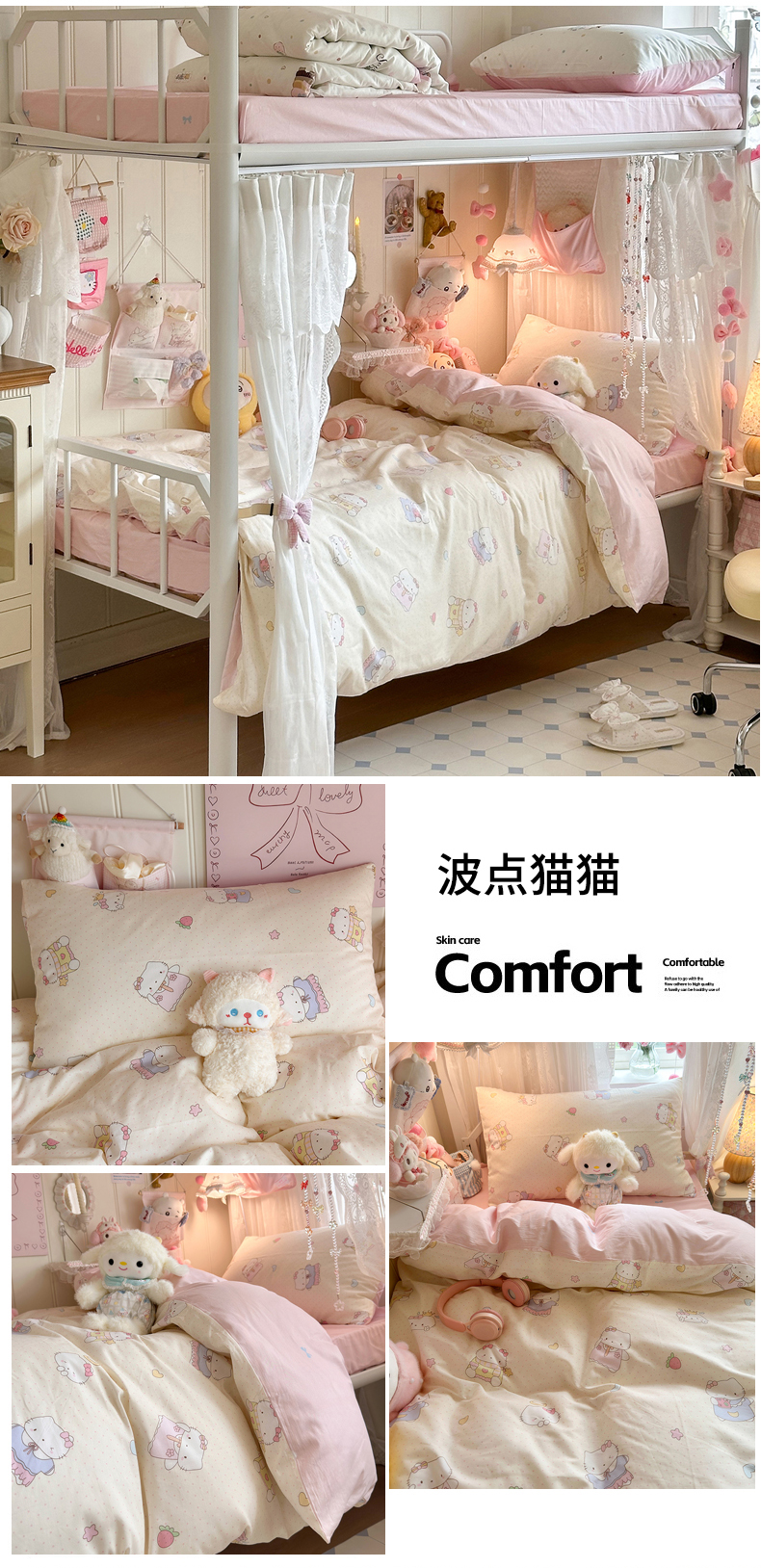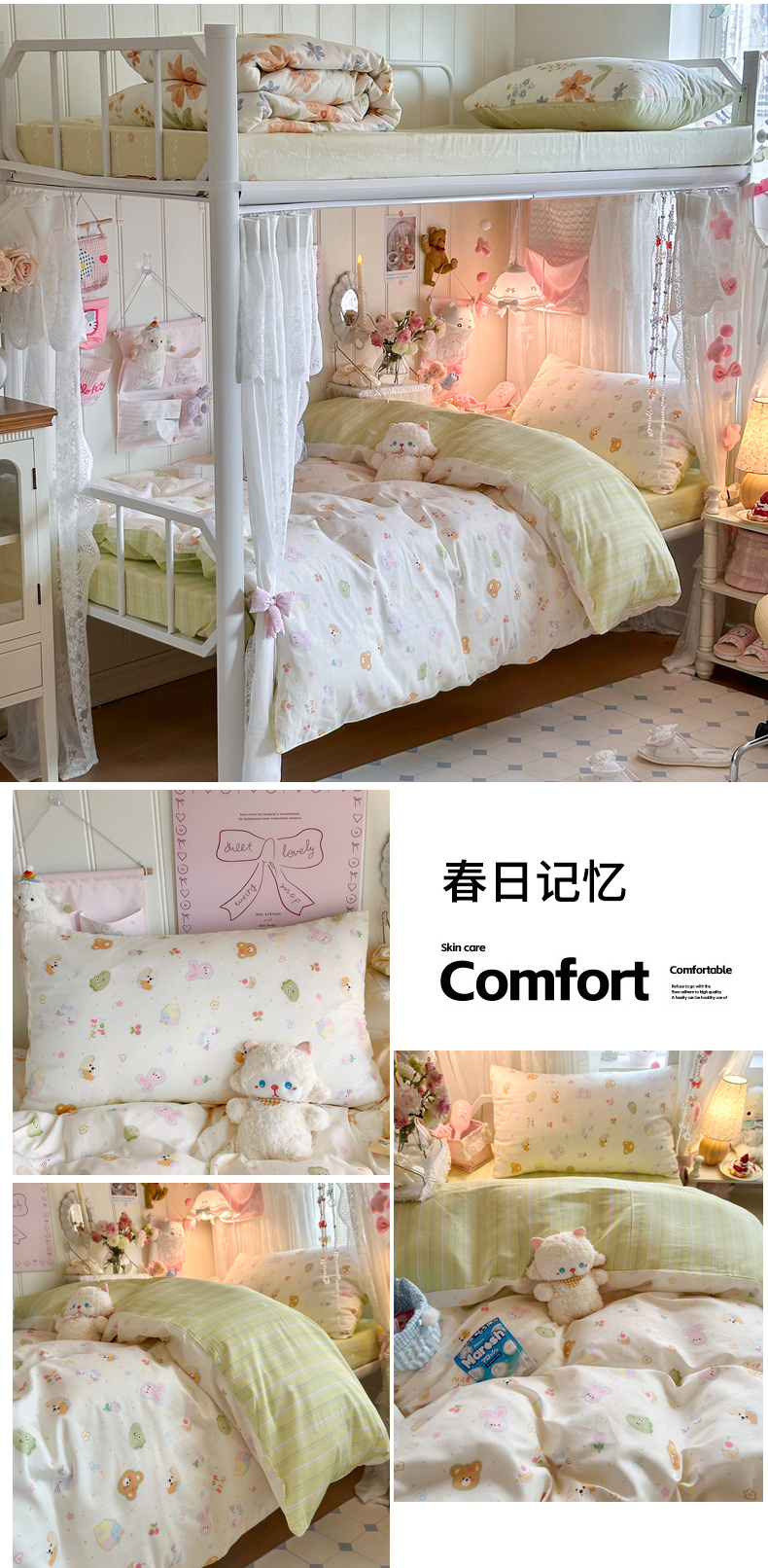 商品名称:Sweet dreams甜梦 2025新款学生床全棉纯棉三套件学生三件套宿舍三件套上下铺三件套 花花小狗