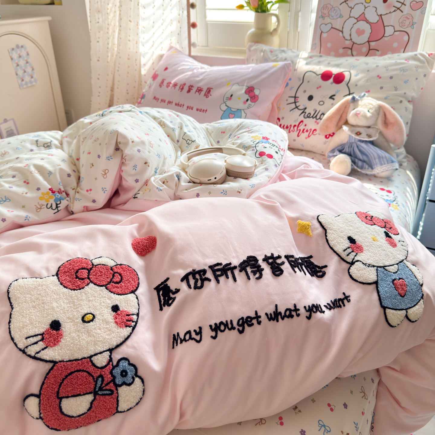 当前位置: 91家纺网 > 商品网购 > 床品套件 > 四件套 > 毛巾绣四件套 > 一霖家纺 2025新款高克重云朵棉毛巾绣印绣四件套-小清新系列-第三波心愿小猫