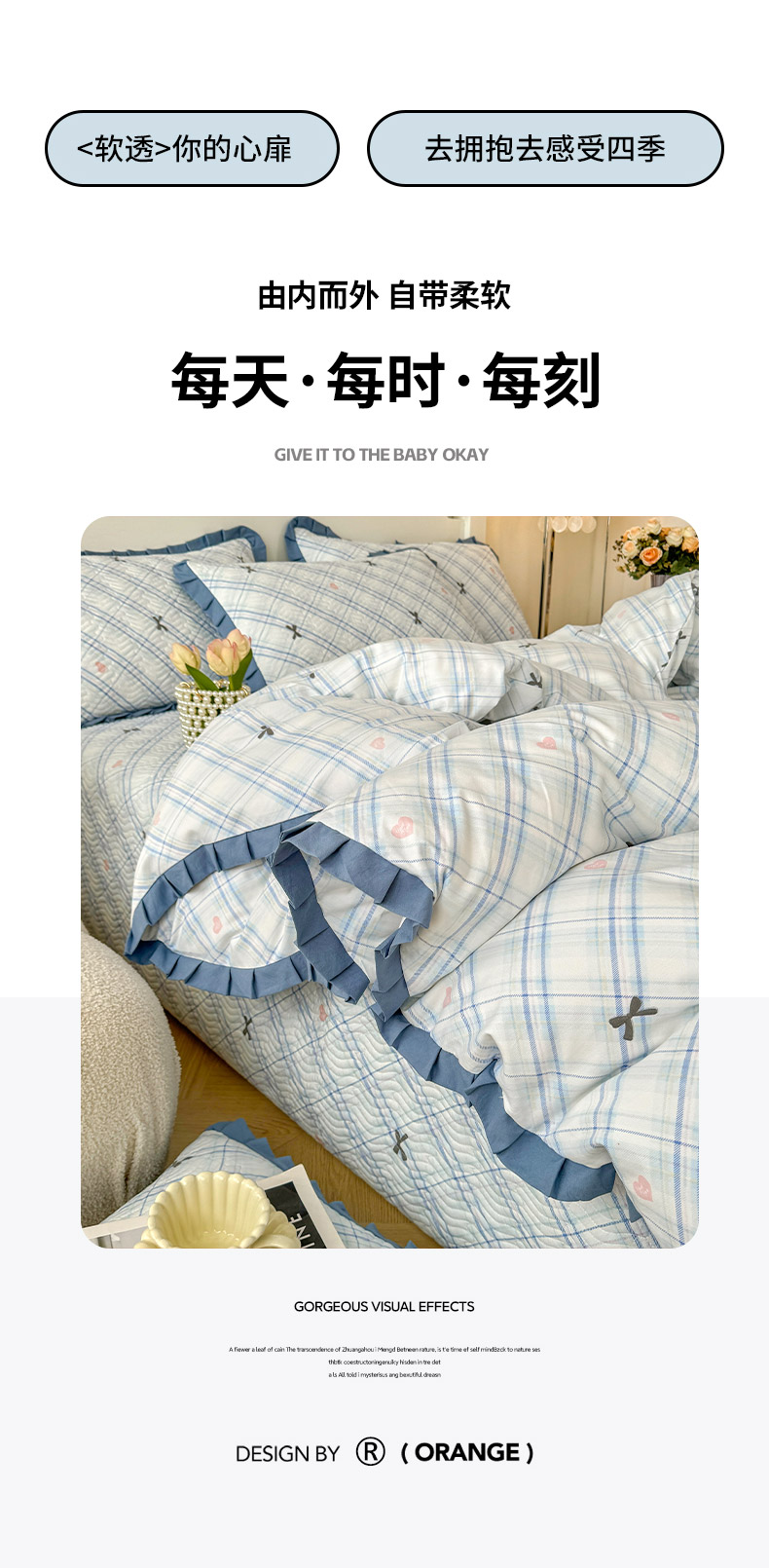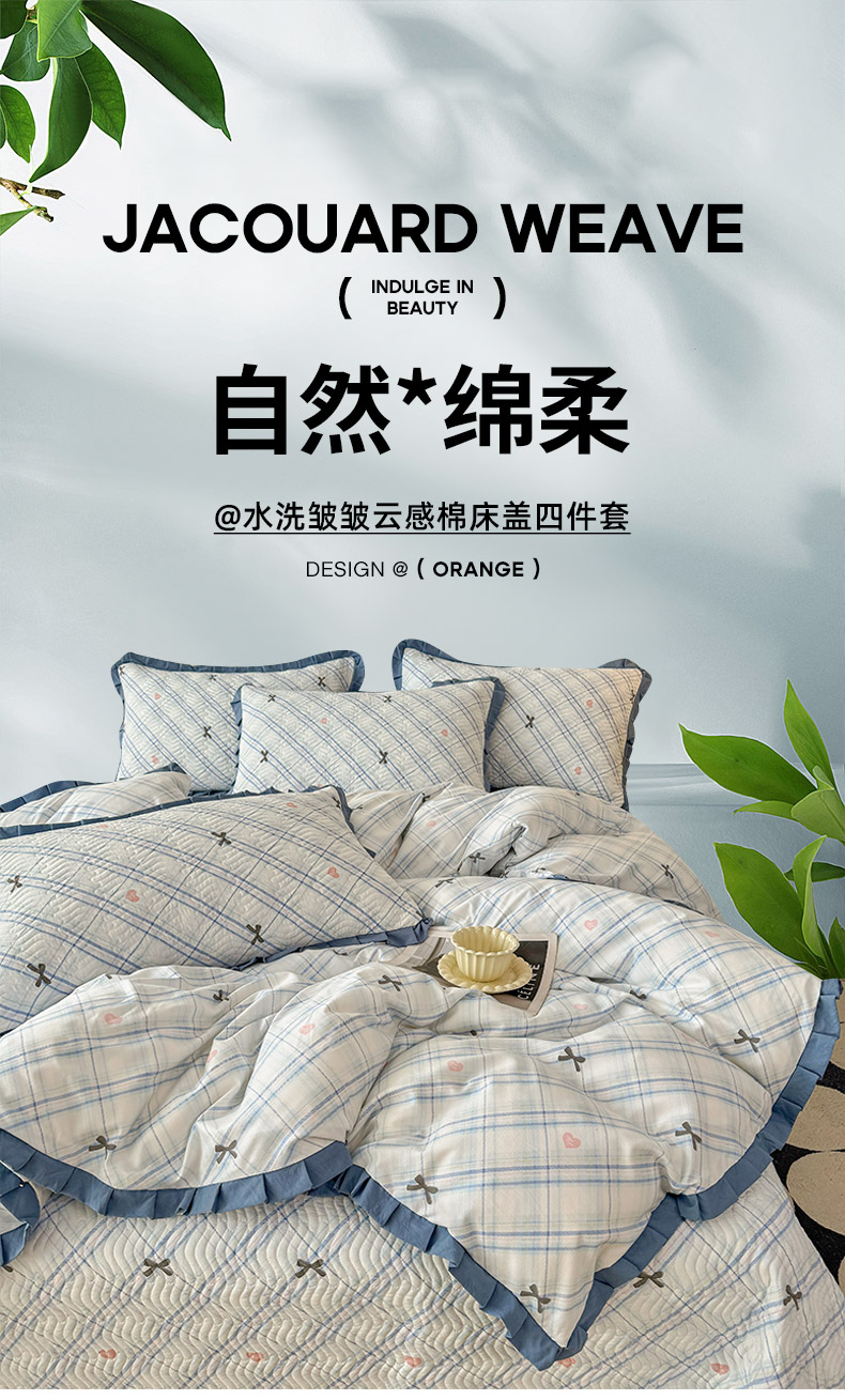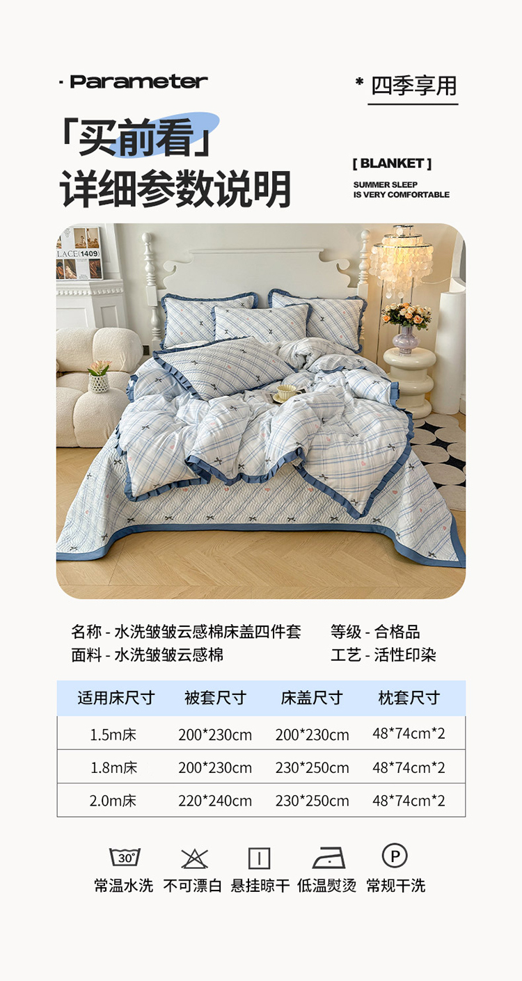 当前位置: 91家纺网 > 商品网购 > 床品套件 > 四件套 > 水洗棉四件套 > 芷凡家纺2025新款水洗棉双层纱云感棉床盖四件套 格心