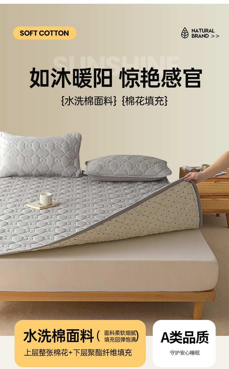 (总)老帅的工厂店 2025新款夹棉纯色防水床垫,净白,浅灰,深灰,雾蓝,虾粉,杏色,本色,灰蓝