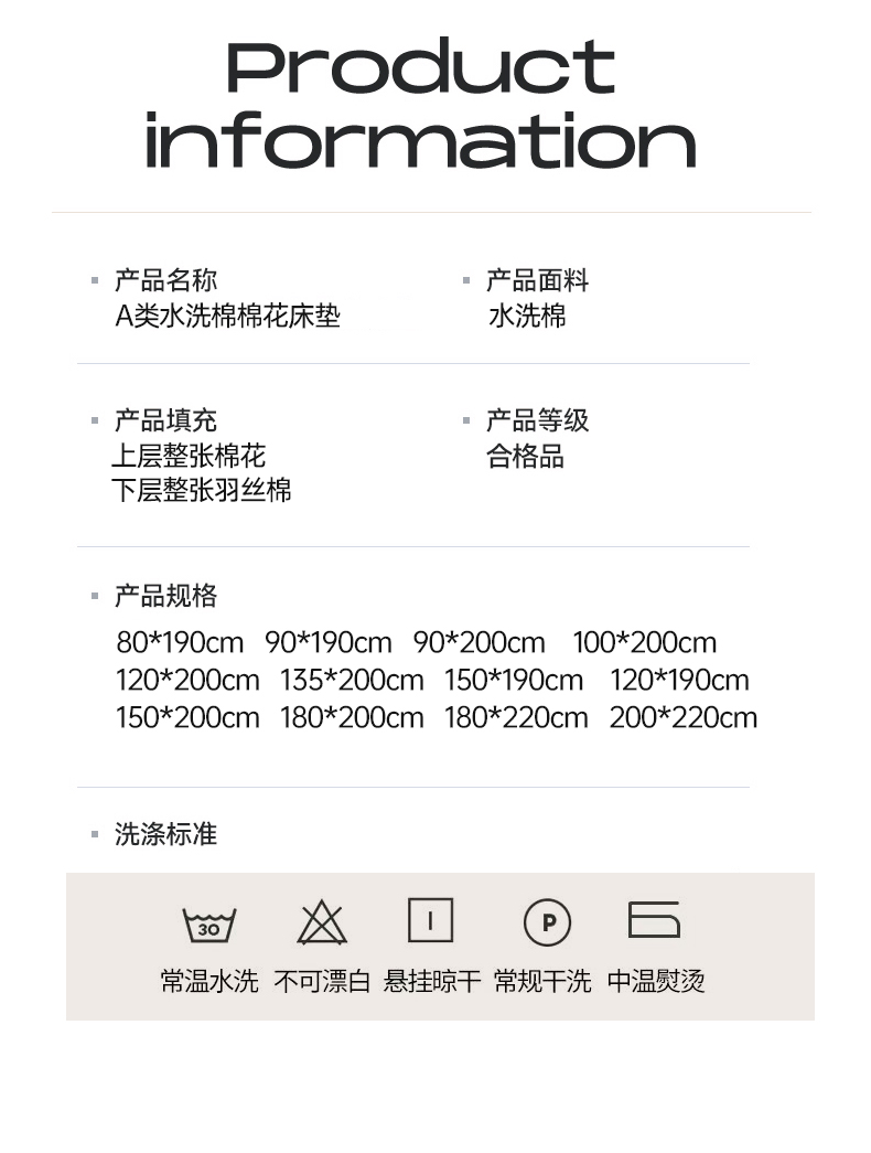 商品名称:(总)老帅的工厂店2025新款A类水洗棉珩绣棉花床褥
