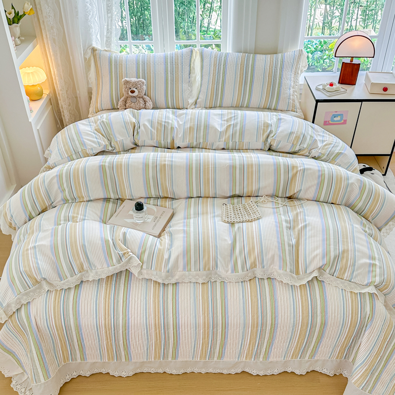 当前位置: 91家纺网 > 商品网购 > 床品套件 > 四件套 > 全棉普通四件套 > 岚吉家纺 2025新款全棉棉花床盖四件套 黄苏条