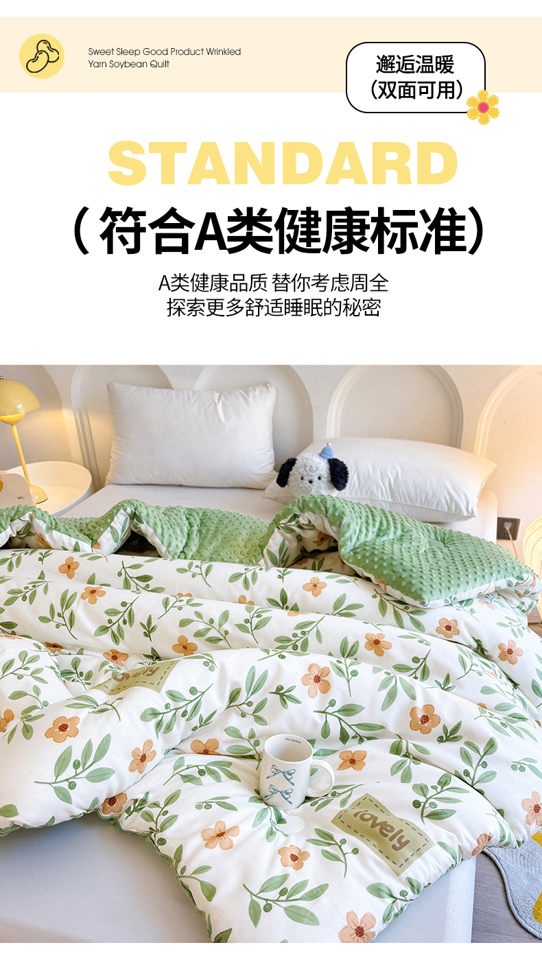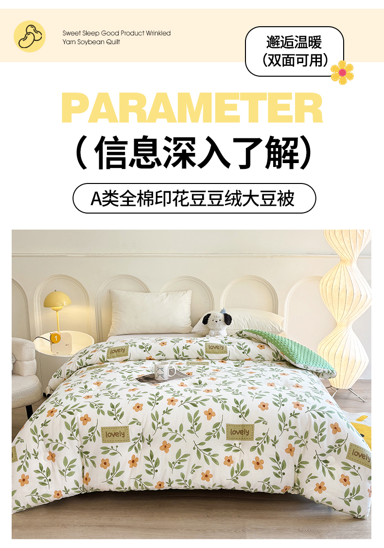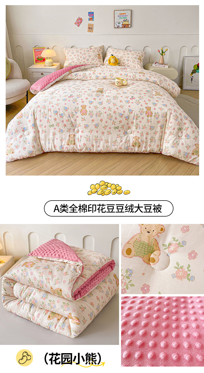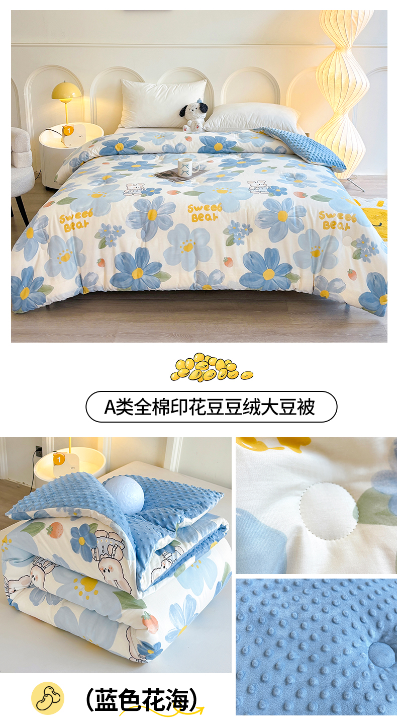 • 91家纺网 家纺一手货源 找家纺 小石头家纺 2025新款A类全棉纯棉印花豆豆绒大豆被冬被春秋被被子被芯 花颜悦色