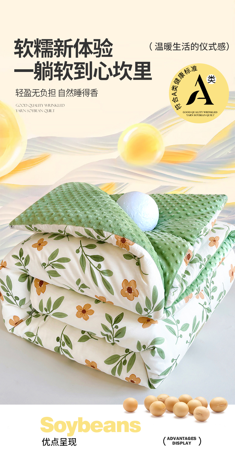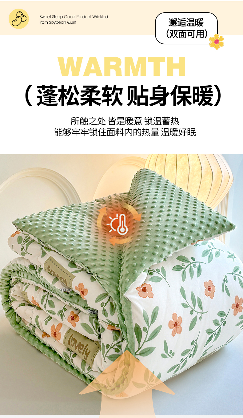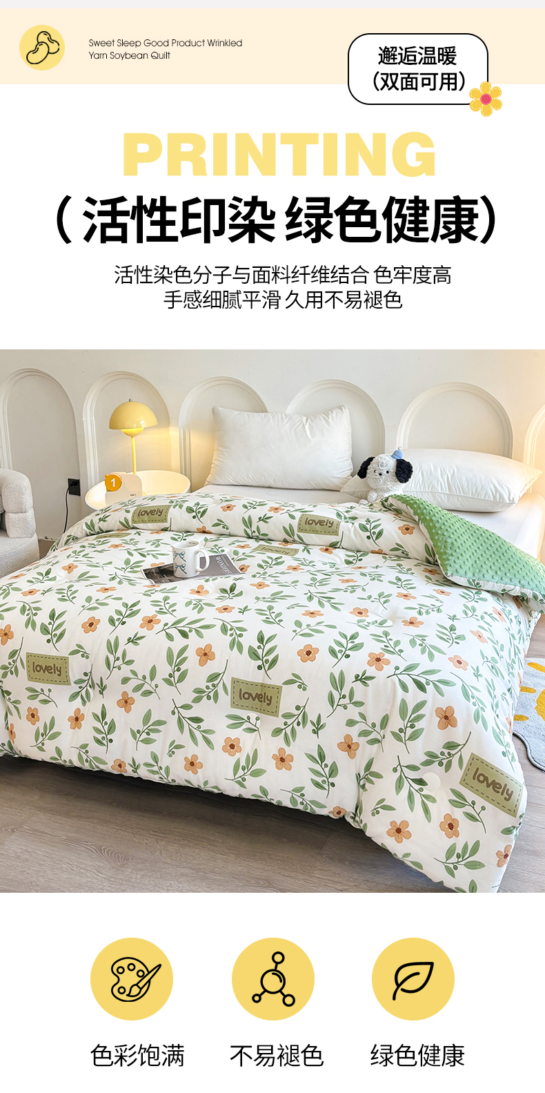 • 91家纺网 家纺一手货源 找家纺 小石头家纺 2025新款A类全棉纯棉印花豆豆绒大豆被冬被春秋被被子被芯 花颜悦色