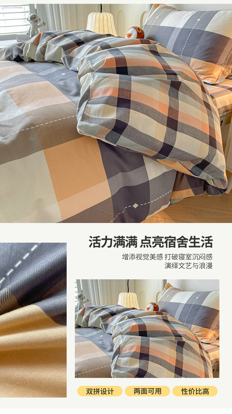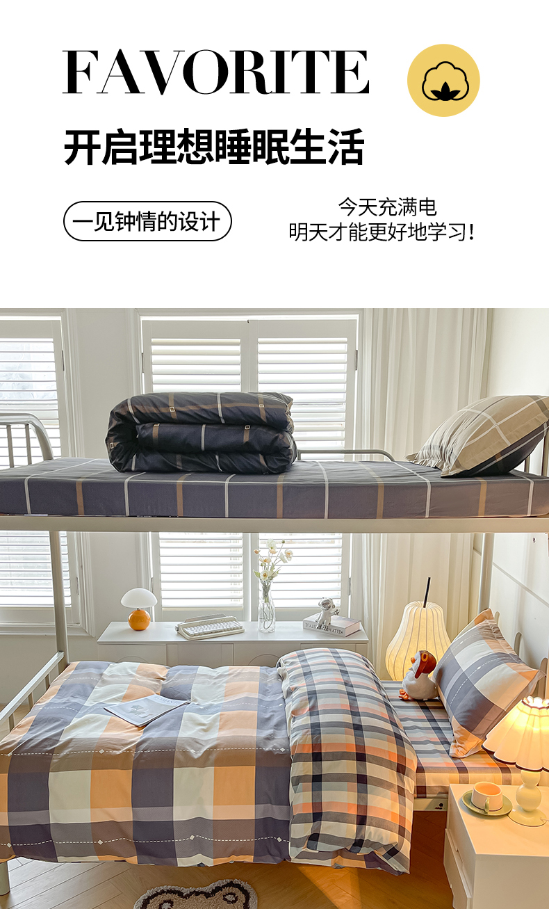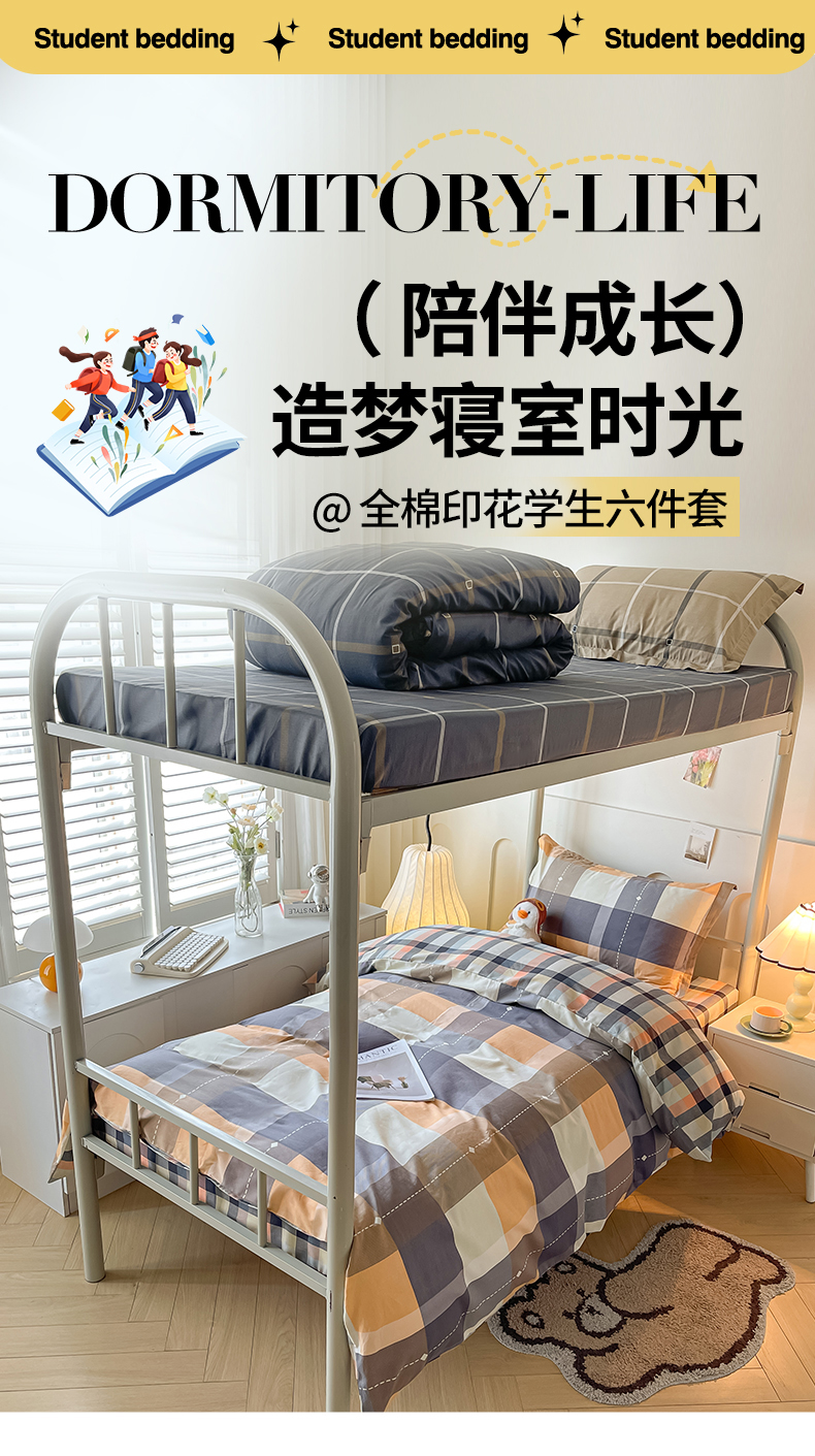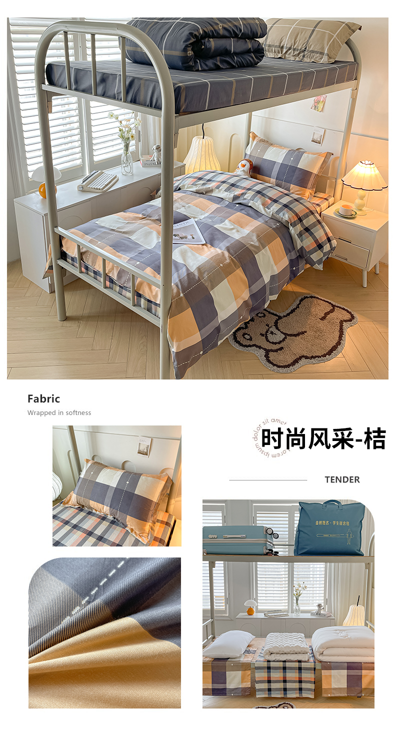 当前位置: 91家纺网 > 商品网购 > 床品套件 > 三件套 > 慕木家纺 2025新款12868全棉印花学生上下铺三件套大礼包系列 时尚风采-桔
