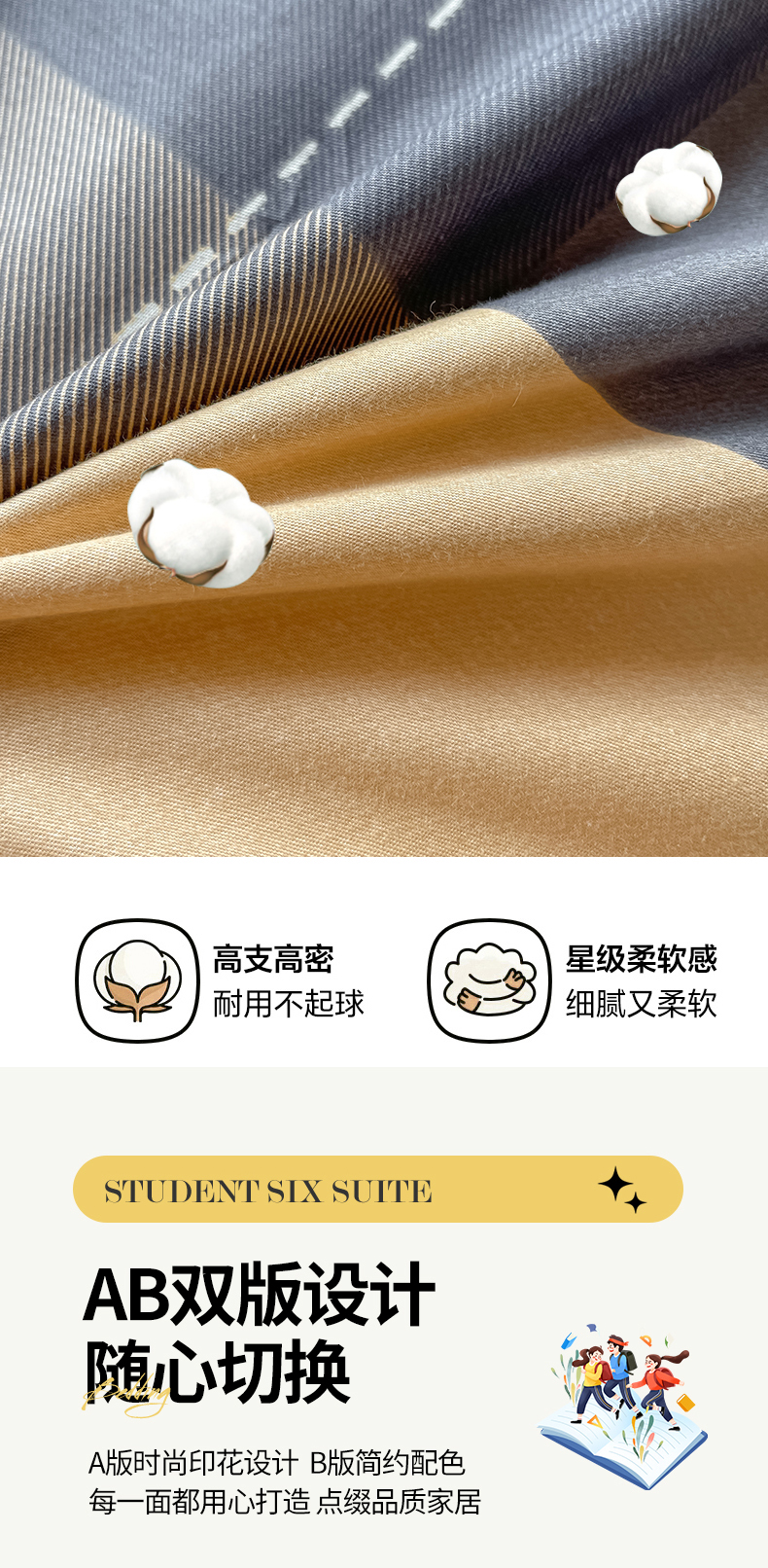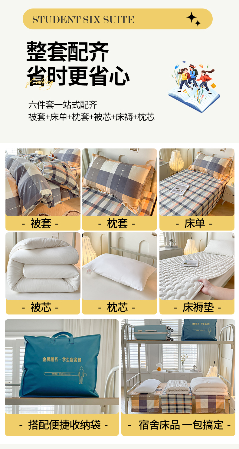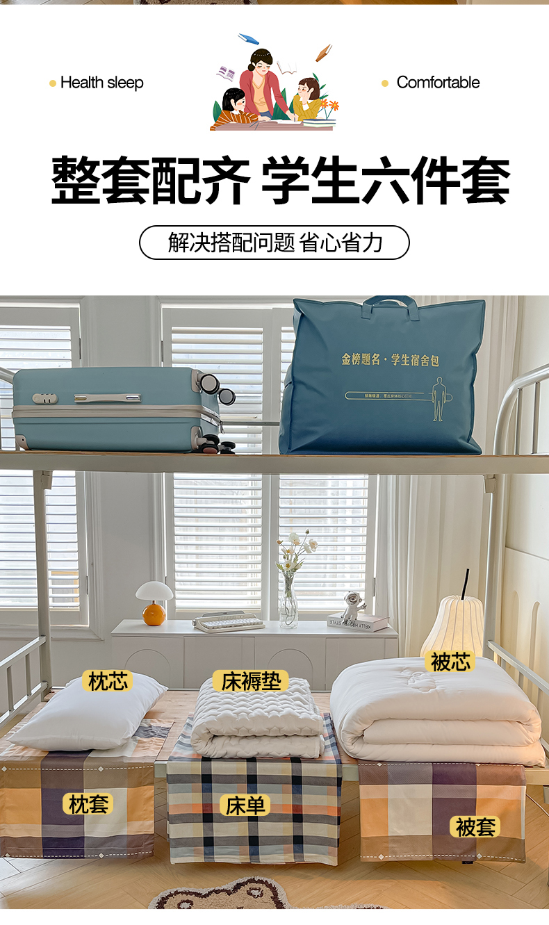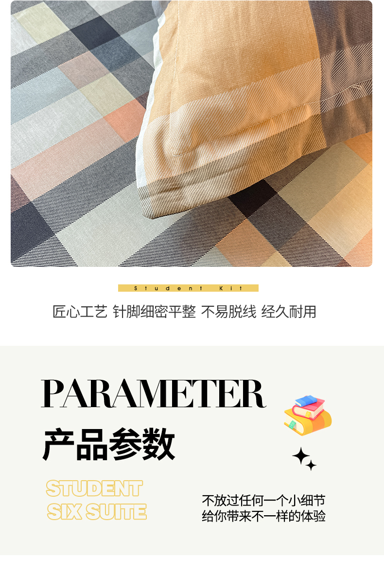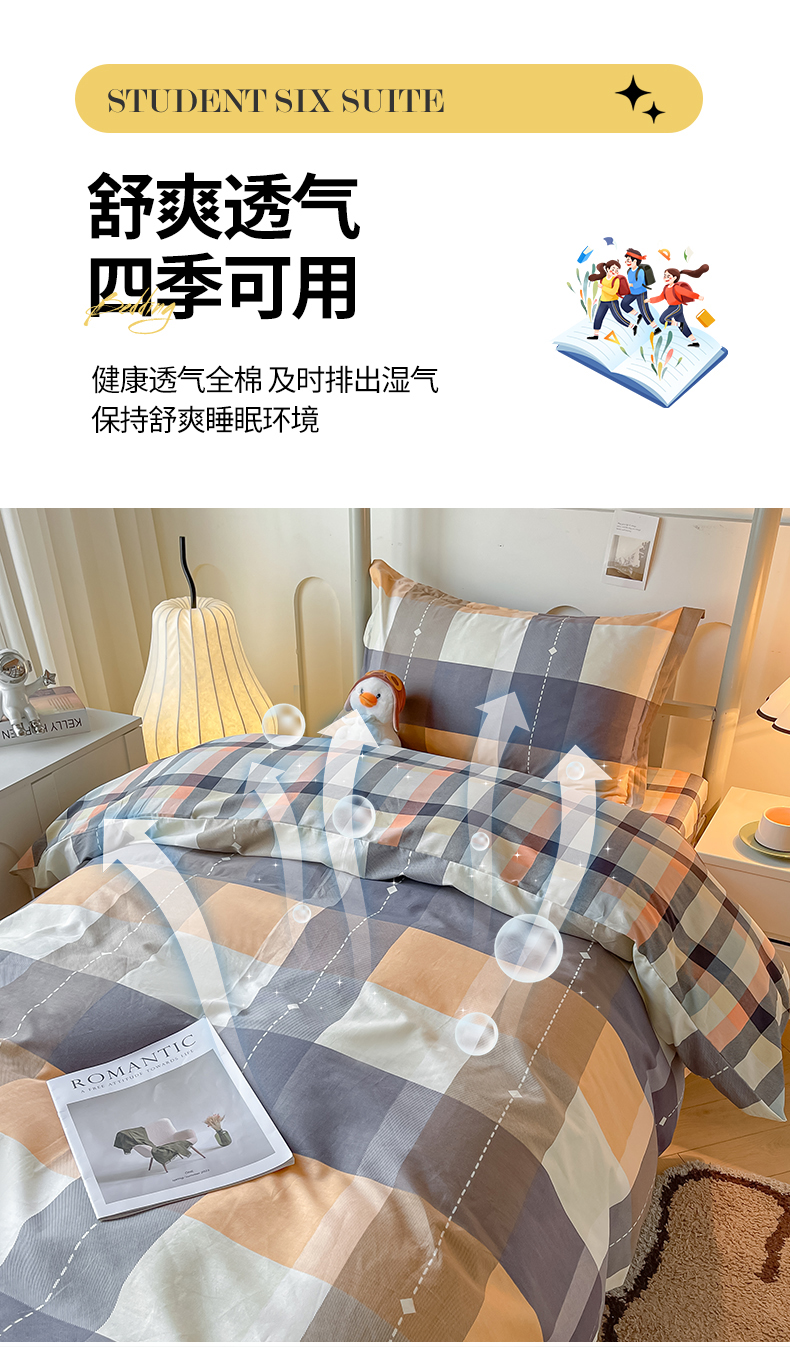 当前位置: 91家纺网 > 商品网购 > 床品套件 > 三件套 > 慕木家纺 2025新款12868全棉印花学生上下铺三件套大礼包系列 时尚风采-桔