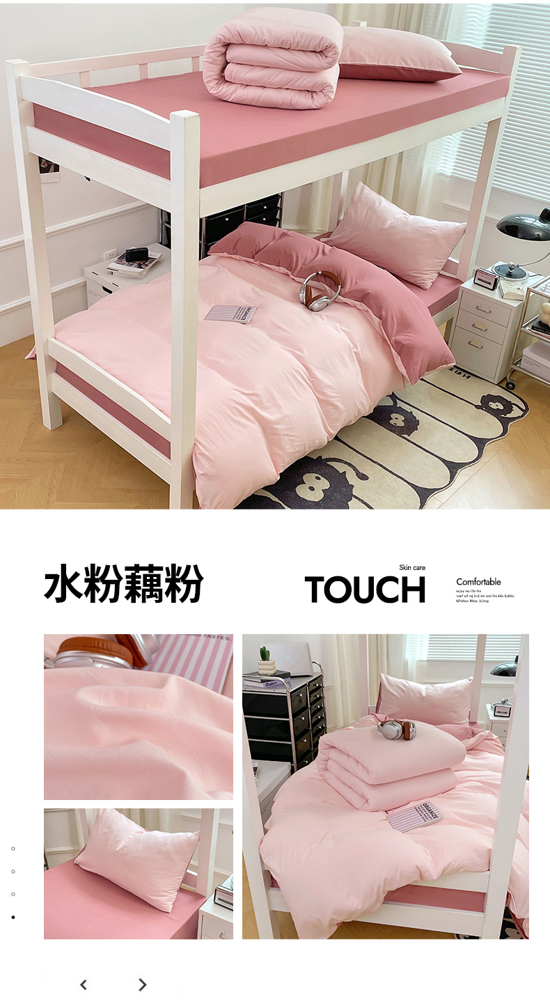当前位置: 91家纺网 > 商品网购 > 床品套件 > 四件套 > 水洗棉四件套 > 梦卓家纺 2025新款学生宿舍上下铺纯色水洗棉三件套 水粉藕粉