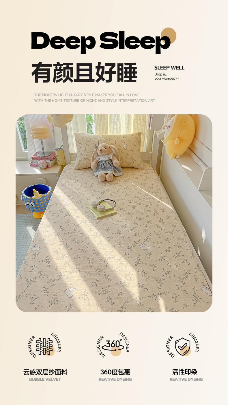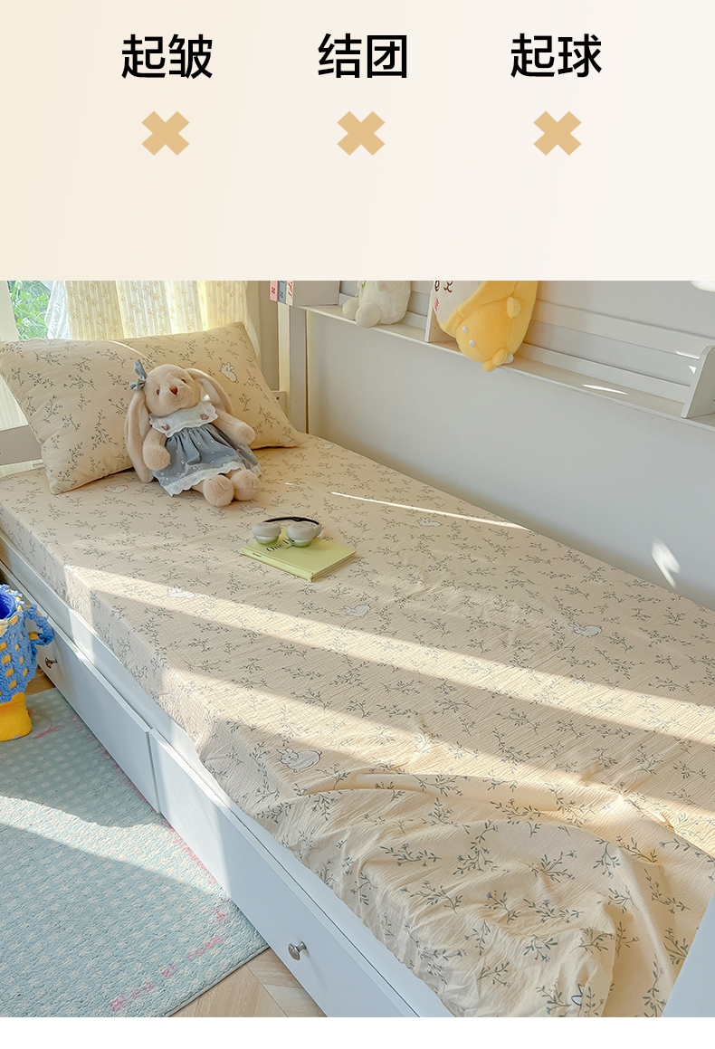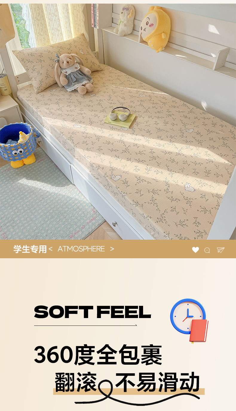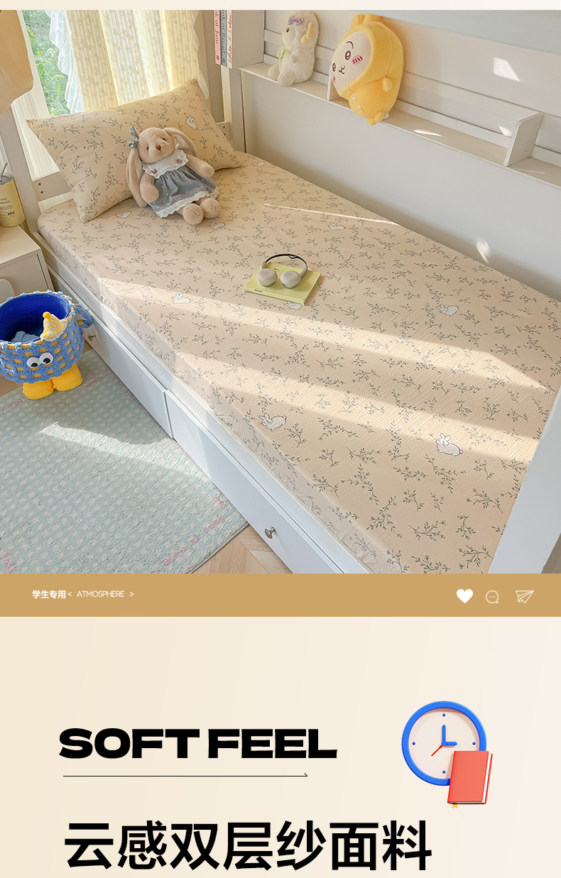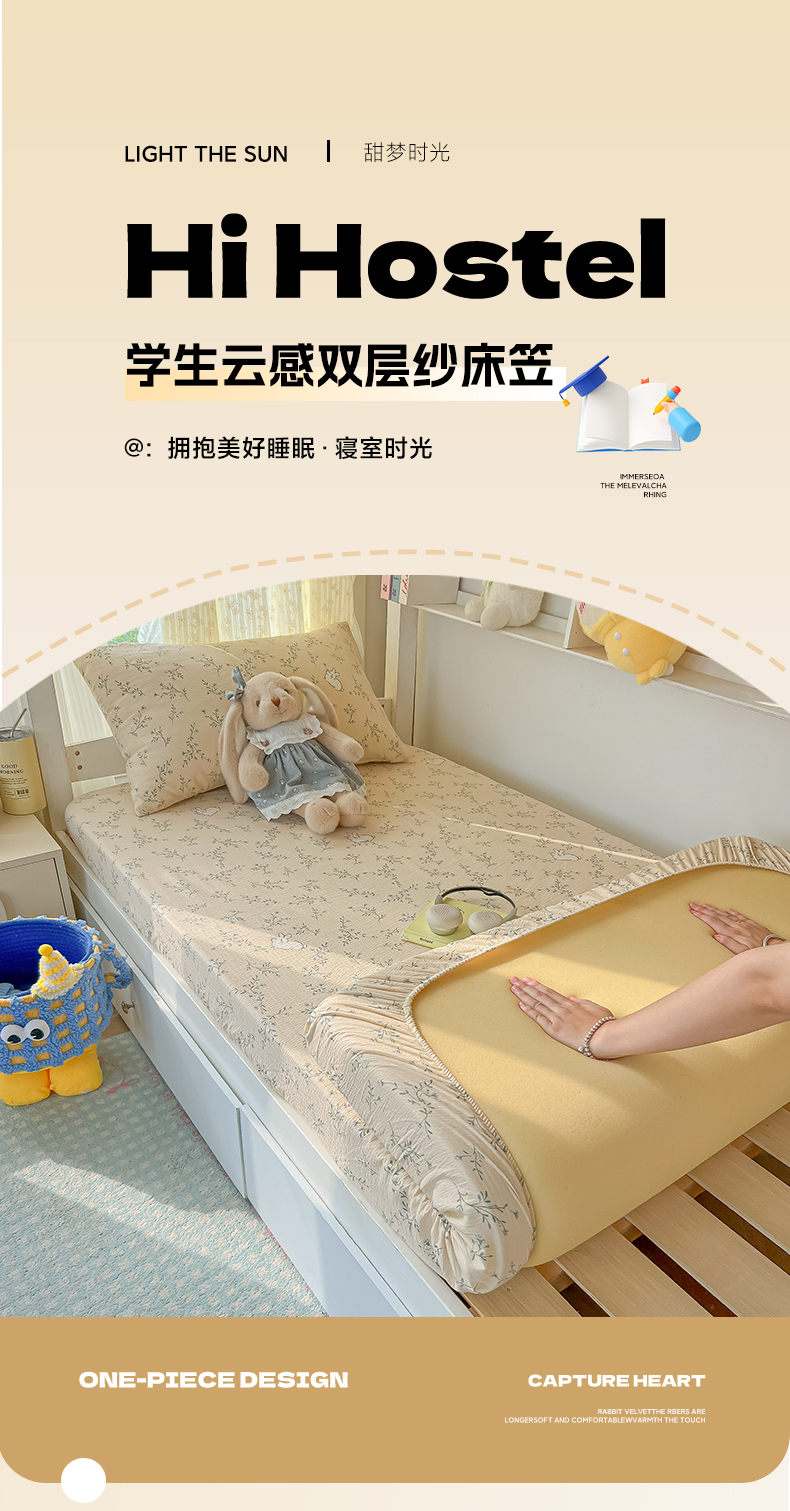 • 91家纺网 家纺一手货源 找家纺 韩巢家纺 2025新款双层纱学生宿舍寝室床笠单件单床笠上下铺防滑床单床垫套 森田野园