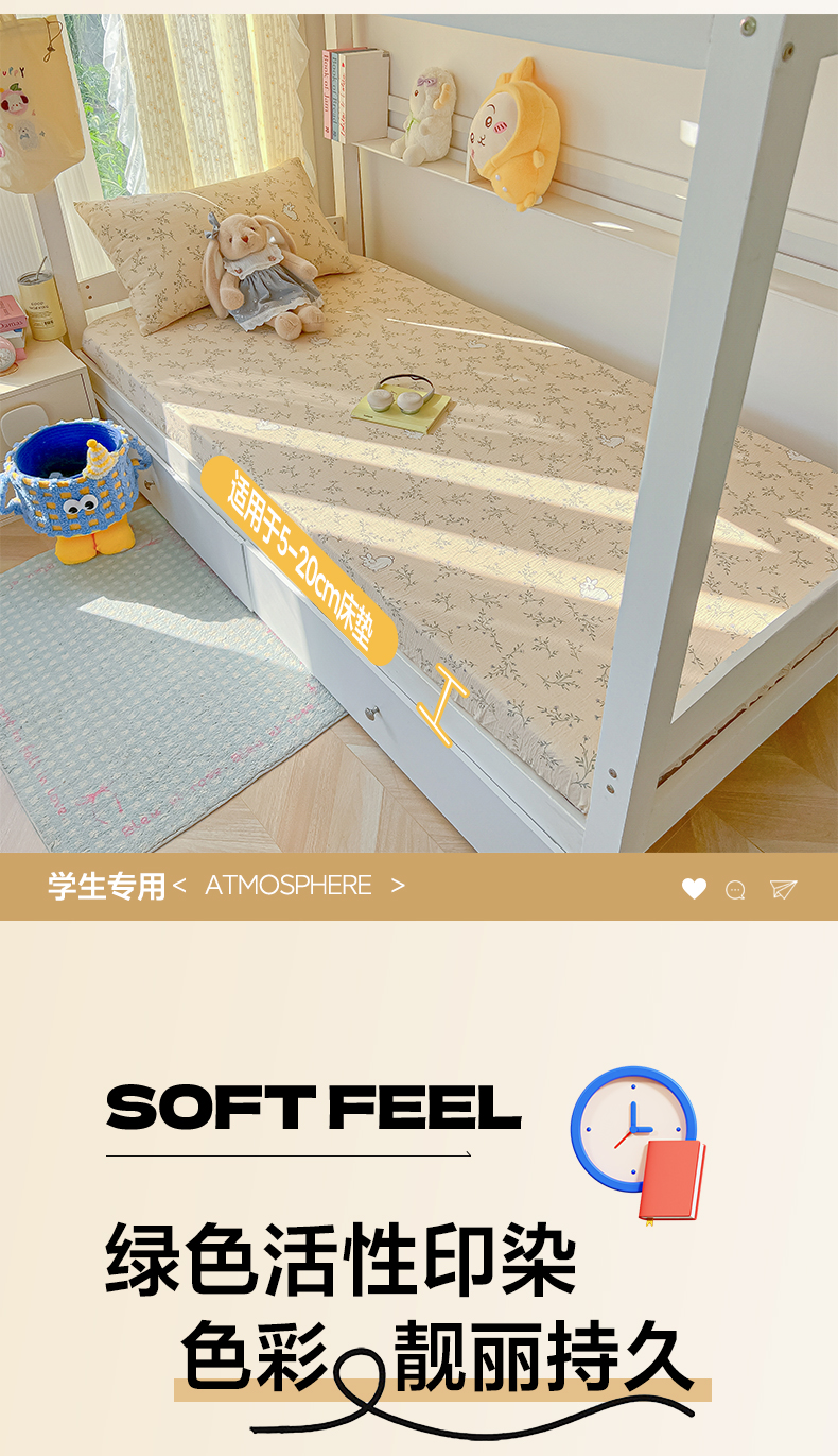韩巢家纺 2025新款双层纱学生宿舍寝室床笠单件单床笠上下铺防滑床单床垫套 森田野园