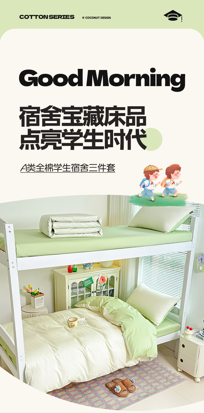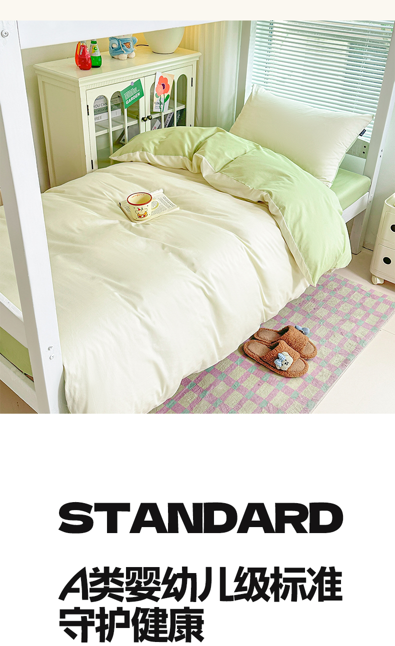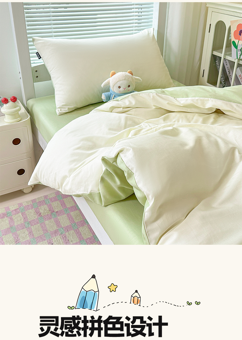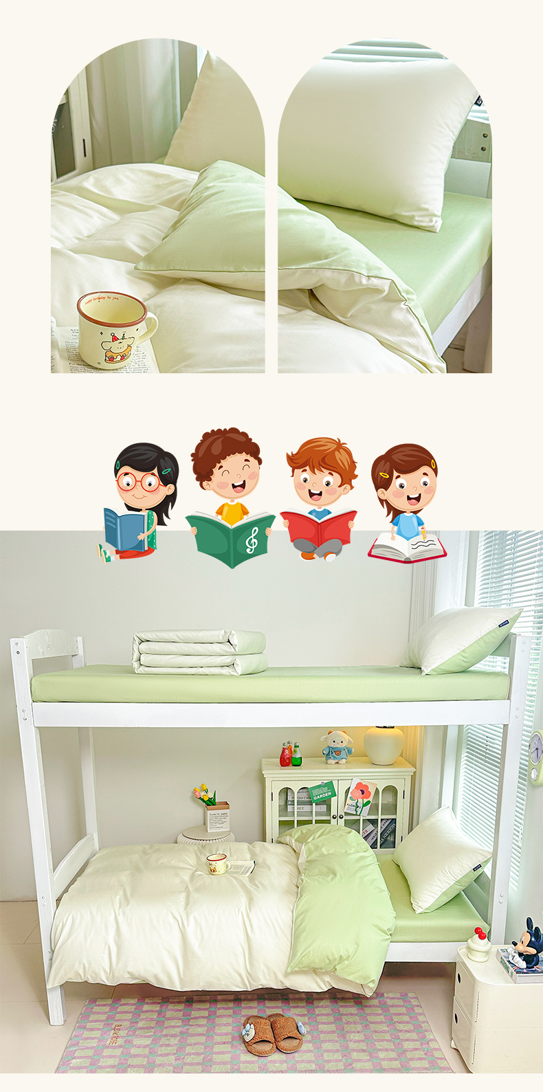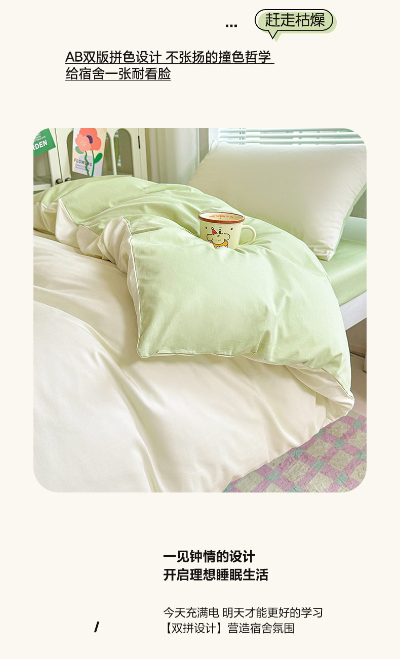 麦田家纺 2025新款A类全棉学生宿舍四件套 奶昔白浅绿