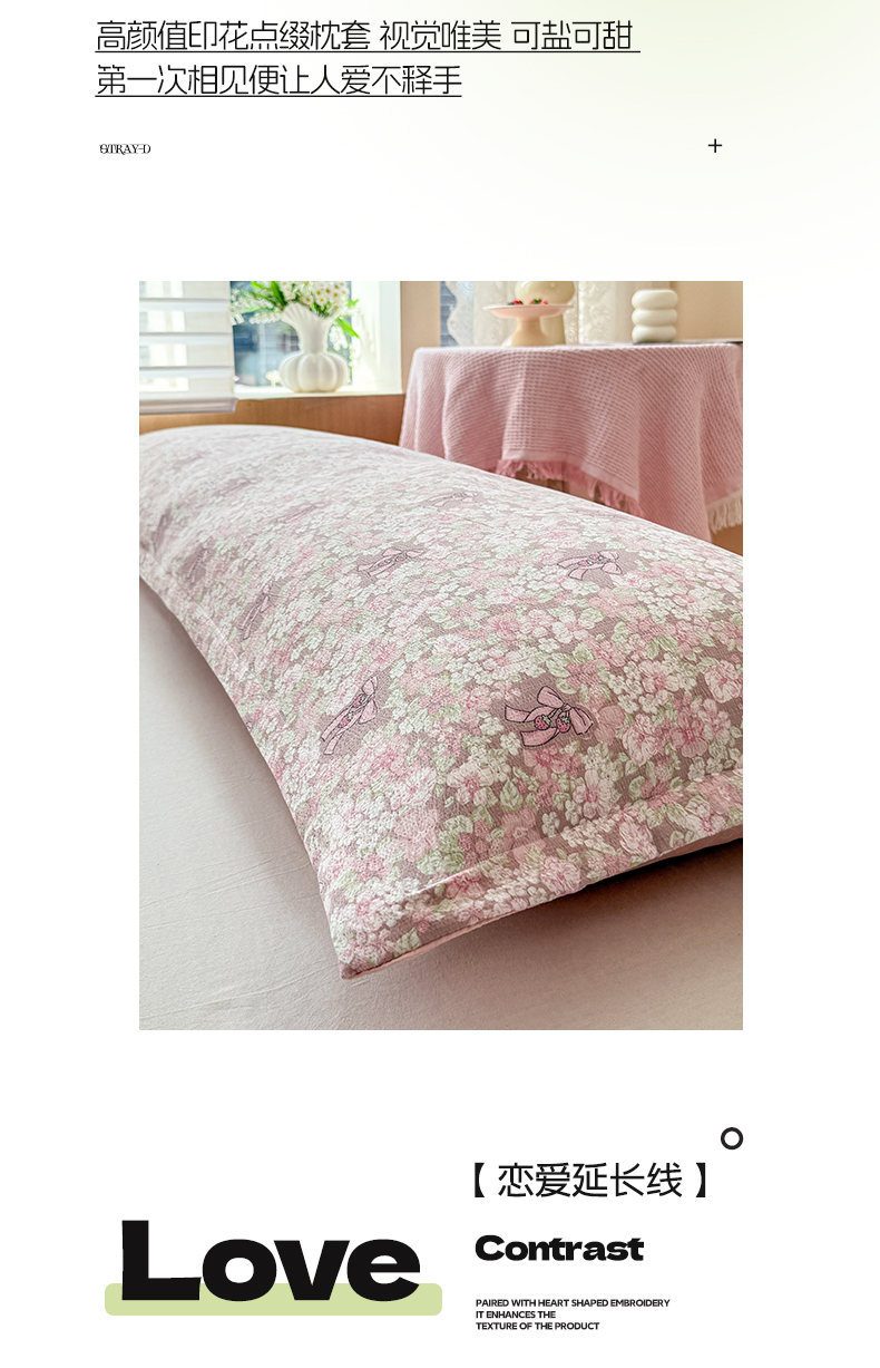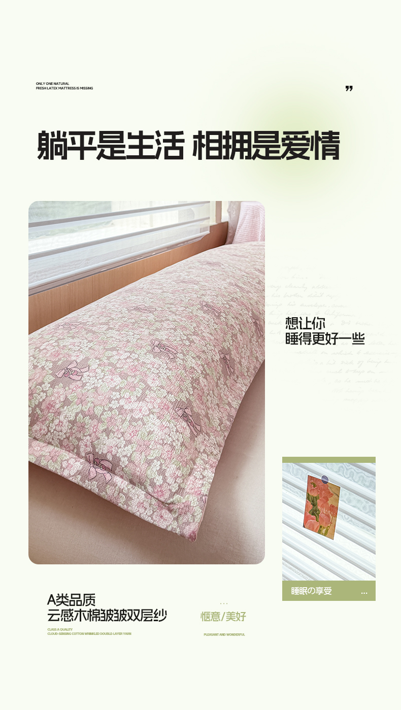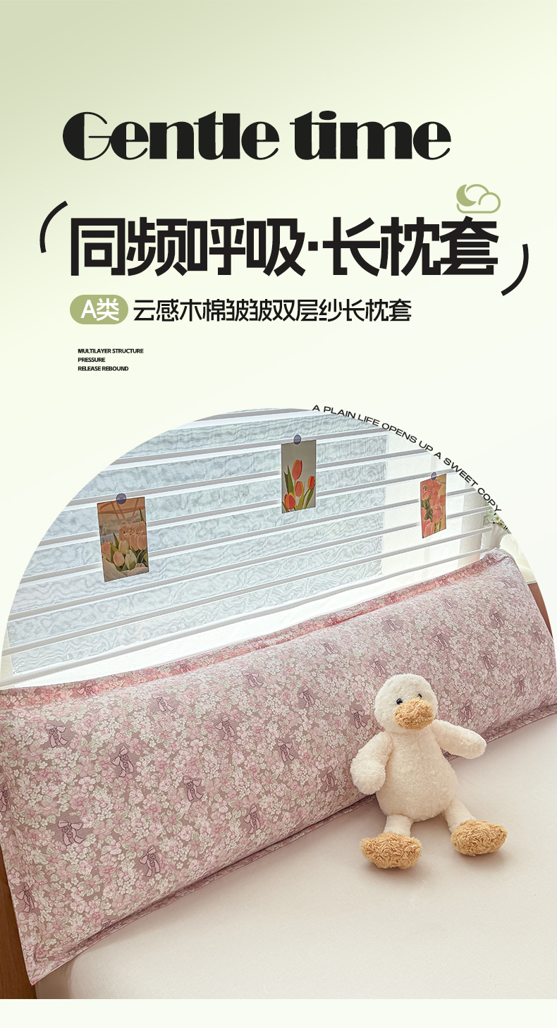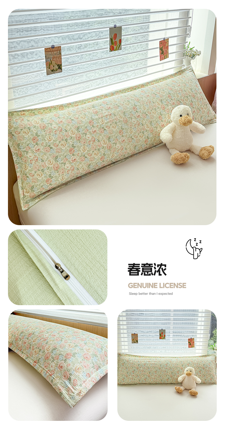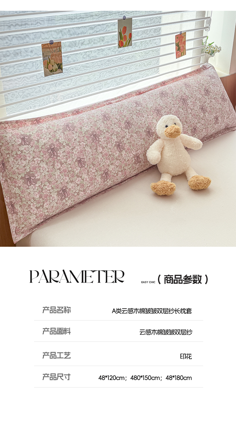 (总)麦田家纺 2025新款云感木棉皱皱双层纱长枕,春意浓,繁花,花颜,开心小熊,腊肠犬,浪漫花语,甜心格,小蓝町,樱桃格,紫韵,纯白