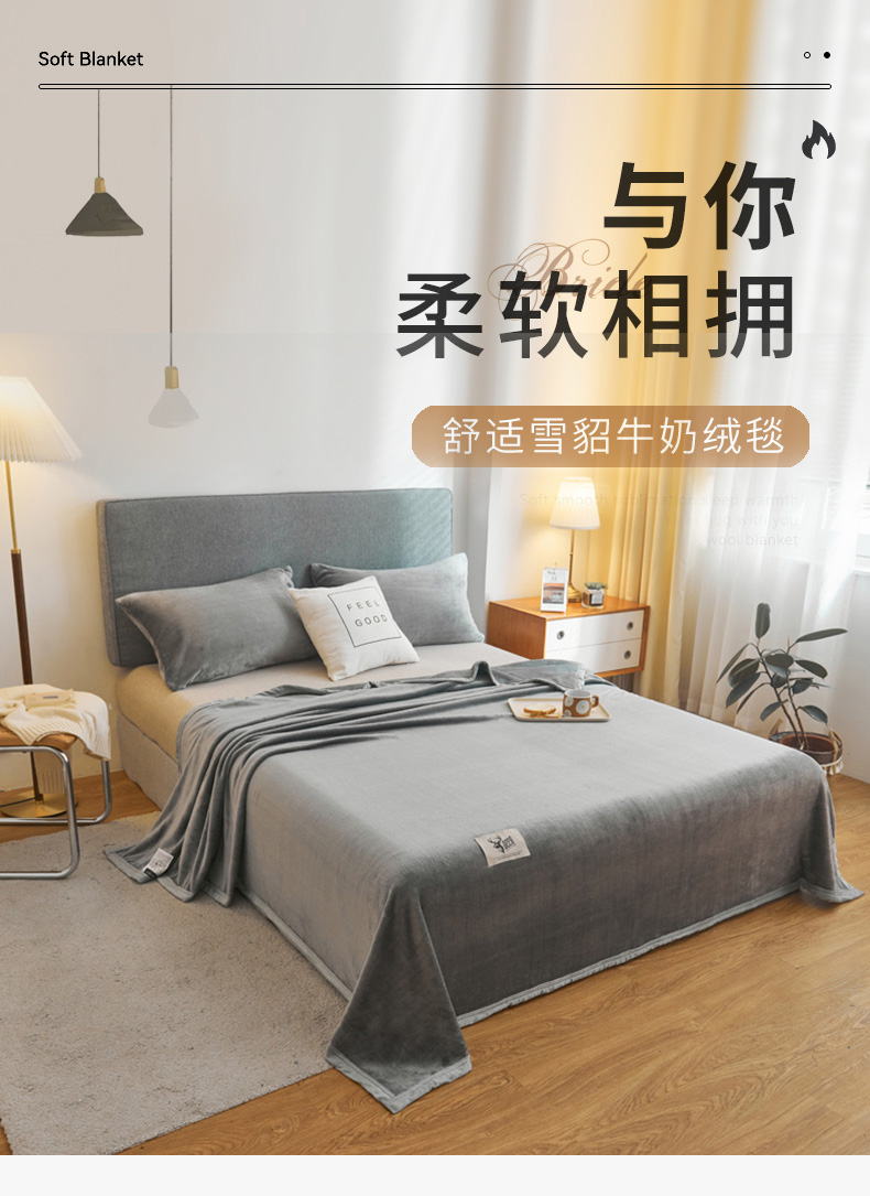 商品名称:宅部落 2025新款牛奶绒毛毯毯子300克云貂绒盖毯系列-纯色 深灰