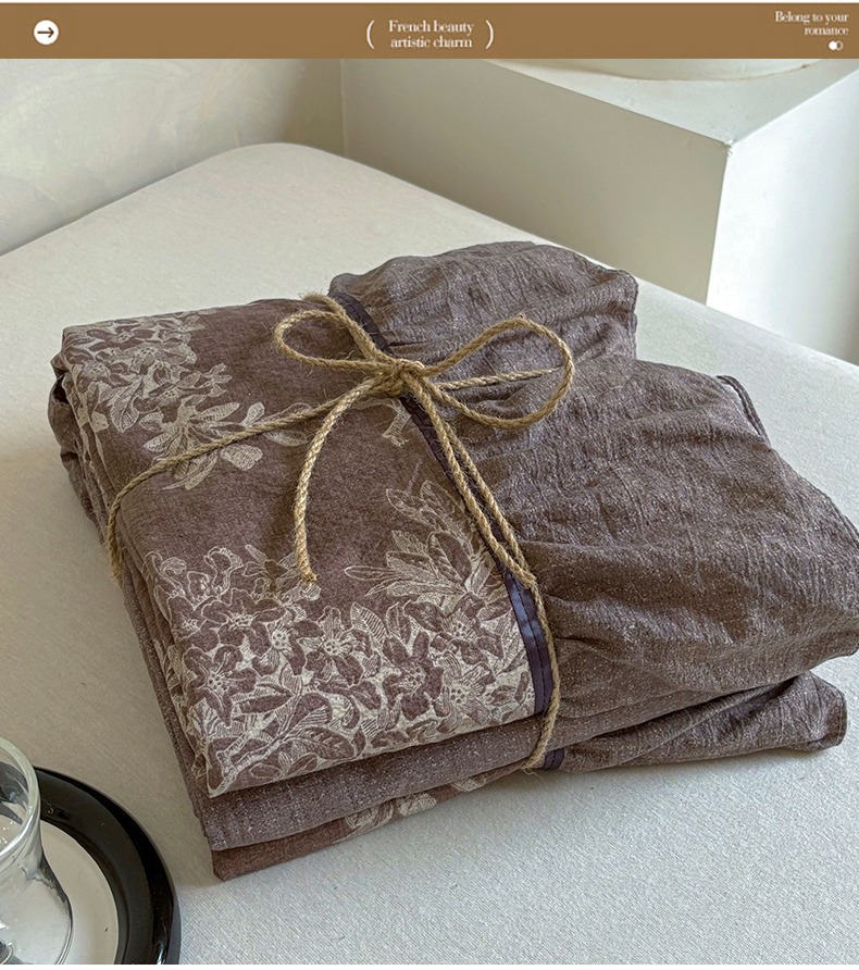 当前位置: 91家纺网 > 商品网购 > 床品套件 > 四件套 > 其它四件套 > 春光里 2025新款高克重亚麻皱皱纱四件套 暮色