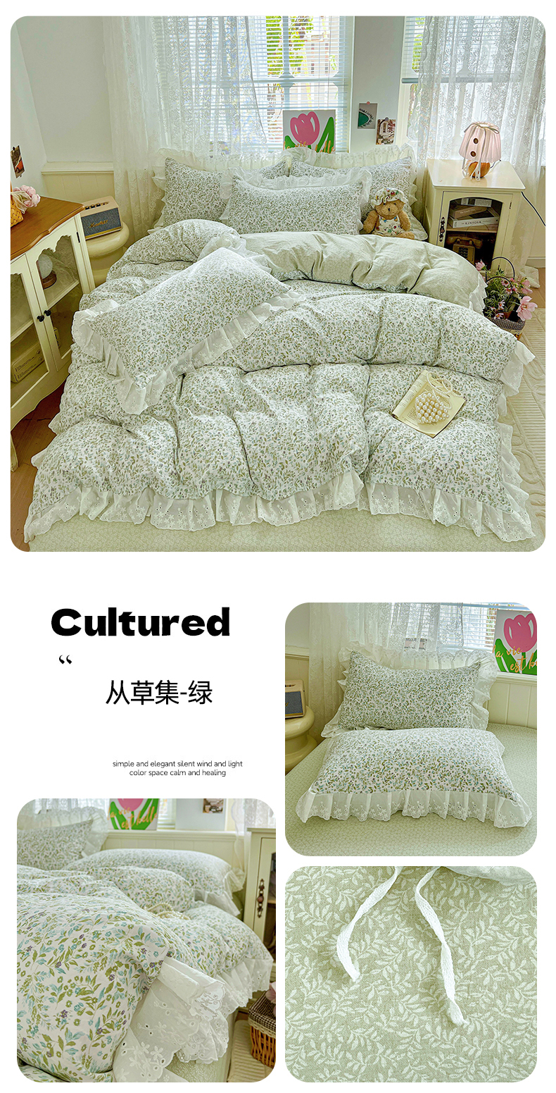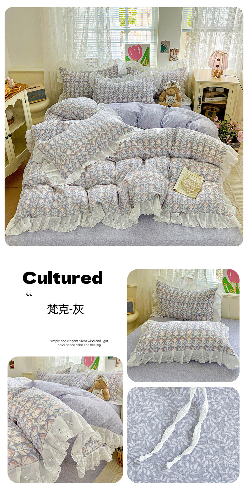 商品名称:赛丽雅 2025新款花边韩版水洗珍珠棉四件套 若彩-紫