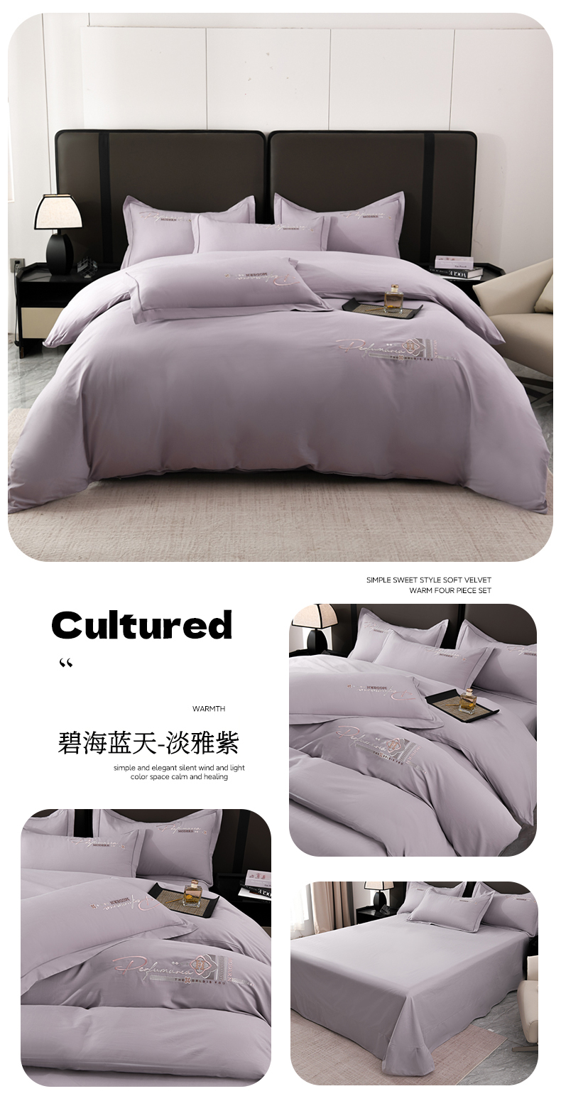 当前位置: 91家纺网 > 商品网购 > 床品套件 > 四件套 > 长绒棉四件套 > U品汇 2025新品40S长绒棉加厚全棉纯棉陶瓷磨毛刺绣花四件套100%棉碳素磨毛 碧海蓝天-淡雅紫