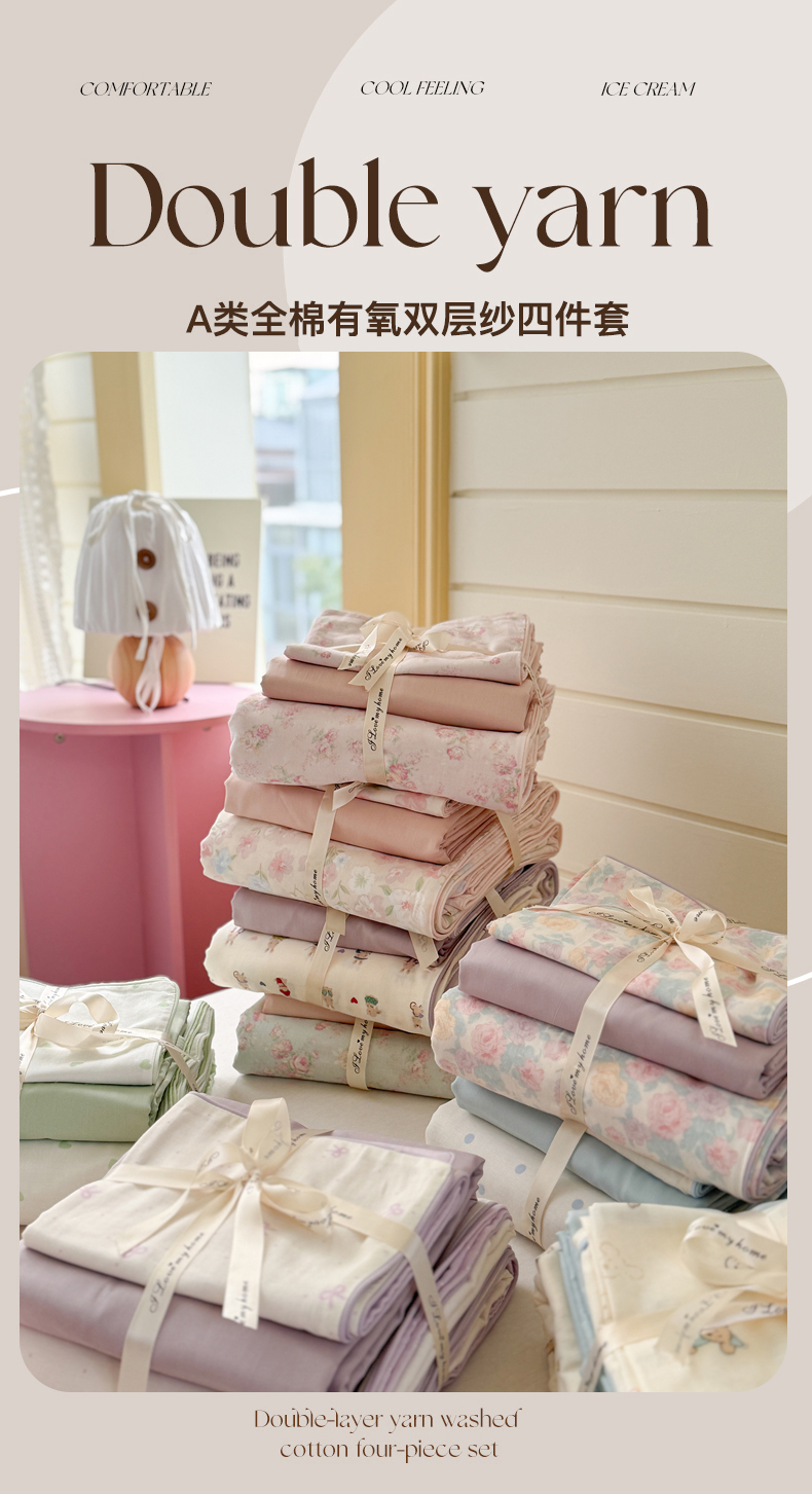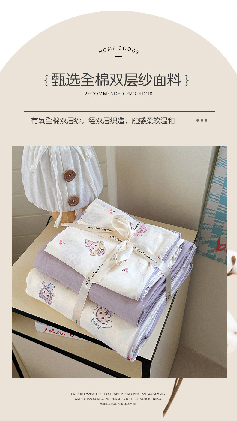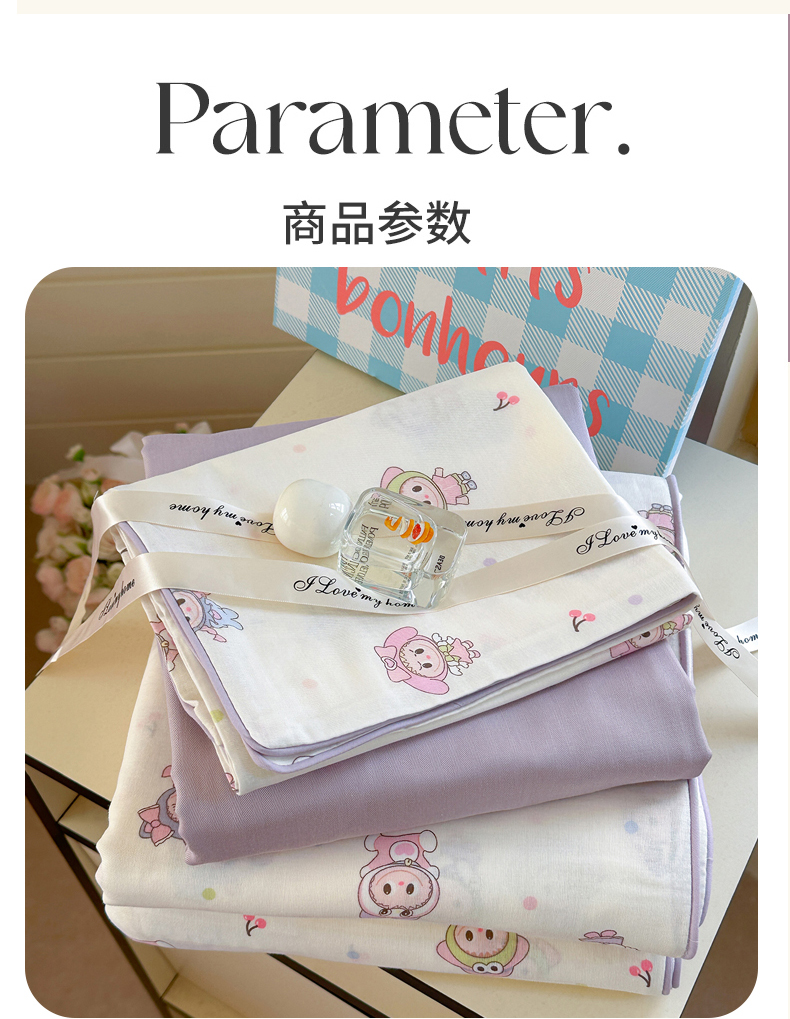 当前位置: 91家纺网 > 商品网购 > 床品套件 > 四件套 > 全棉普通四件套 > 麦伦家居 2025新品嵌绳款全棉双层纱四件套 嵌绳款-咘咘紫