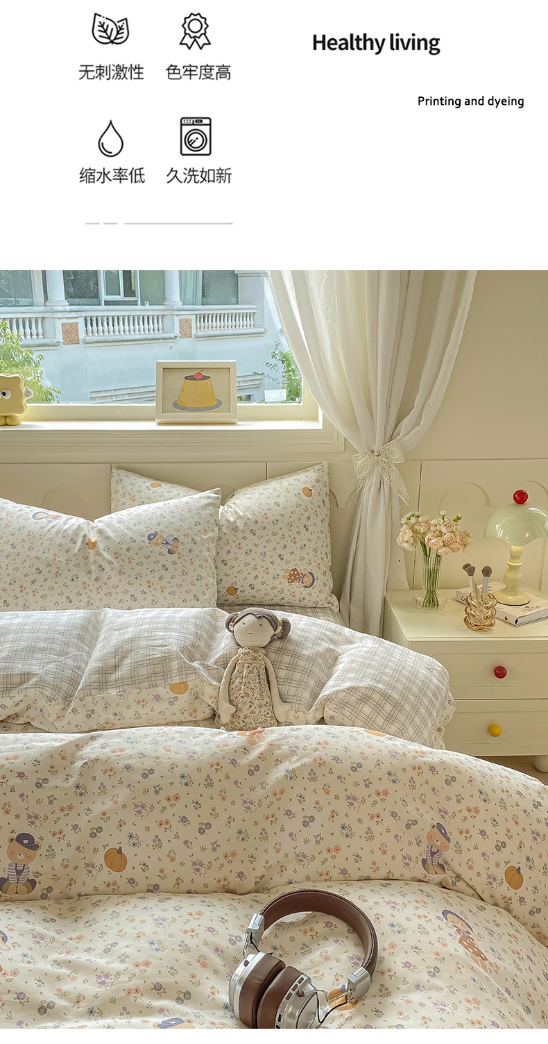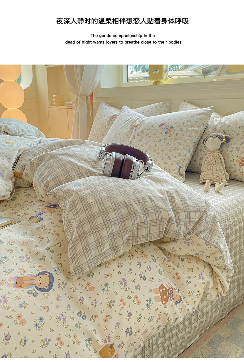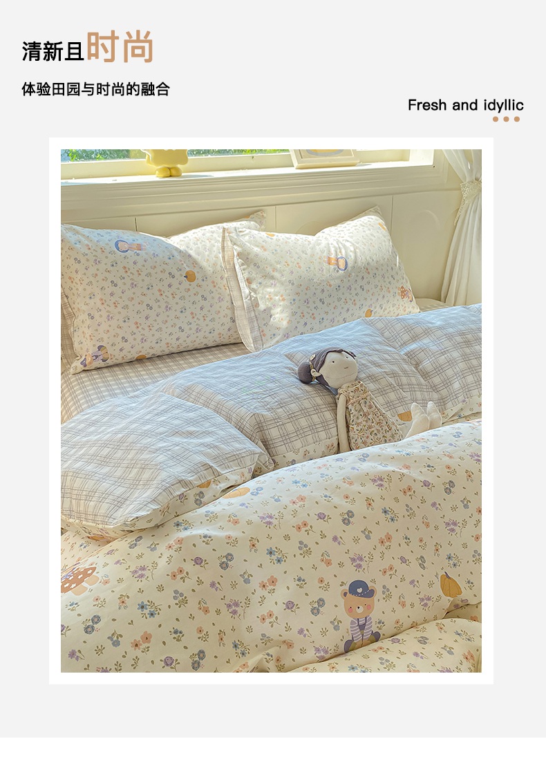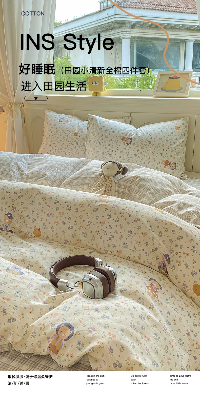 商品名称:黑马家居 2025新款13070全棉田园小清新四件套系列 晚安小熊